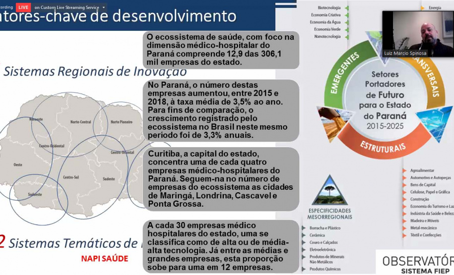 “O Napi da Saúde vem como uma resposta de desenvolvimento das regiões do Estado trabalhando nas demandas da sociedade. Oficialmente o Programa de Saúde Única vem na sequência de outras chamadas em andamento como as de combate à pandemia da Covid 19 e a do PPSUS, em parceria com a Sesa que deve ser lançada ainda este ano”, explicou o diretor de Ciência, Tecnologia e Inovação, Luiz Márcio Spinosa