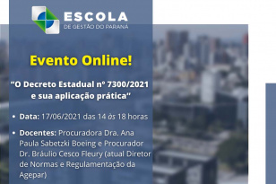 A Escola de Gestão do Paraná (EGP) disponibiliza seu novo catálogo de cursos para capacitação de servidores. São 36 cursos que englobam as áreas de Processos/Planejamento, Indicadores, Contratações Públicas, Inovação, Liderança, Sistemas, Comportamento e Educação.