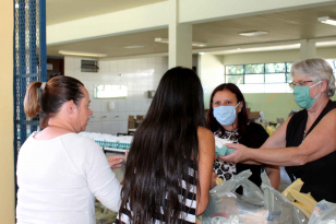 16:10 Escola entrega máscaras de proteção junto com o kit de merenda Famílias que foram retirar o kit de merenda na Escola Estadual Professora Marli Queiroz Azevedo, no bairro Cidade Industrial de Curitiba, tiveram uma surpresa. Junto com os alimentos elas levaram para casa máscaras de pano reutilizáveis para se protegerem contra o novo coronavírus.