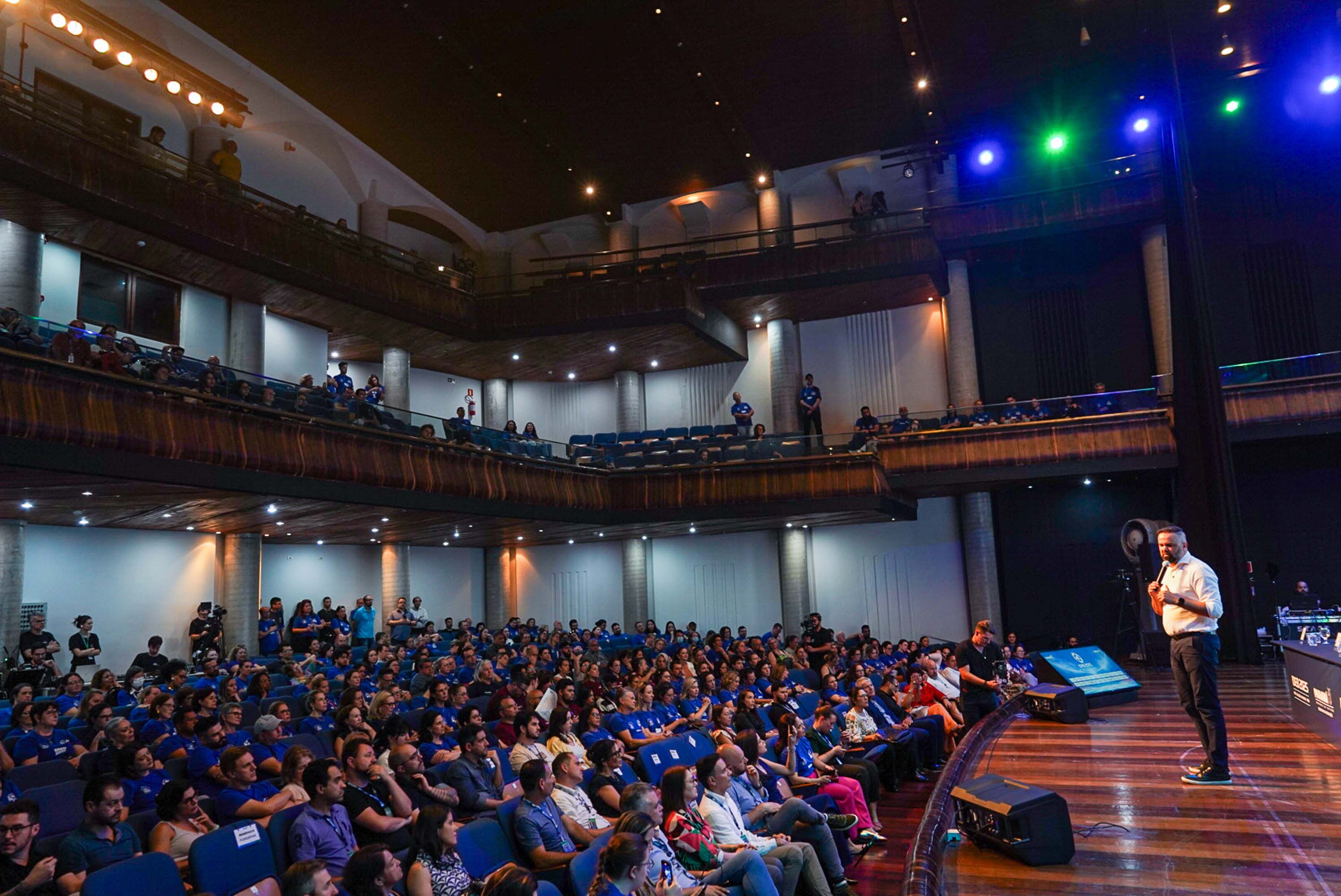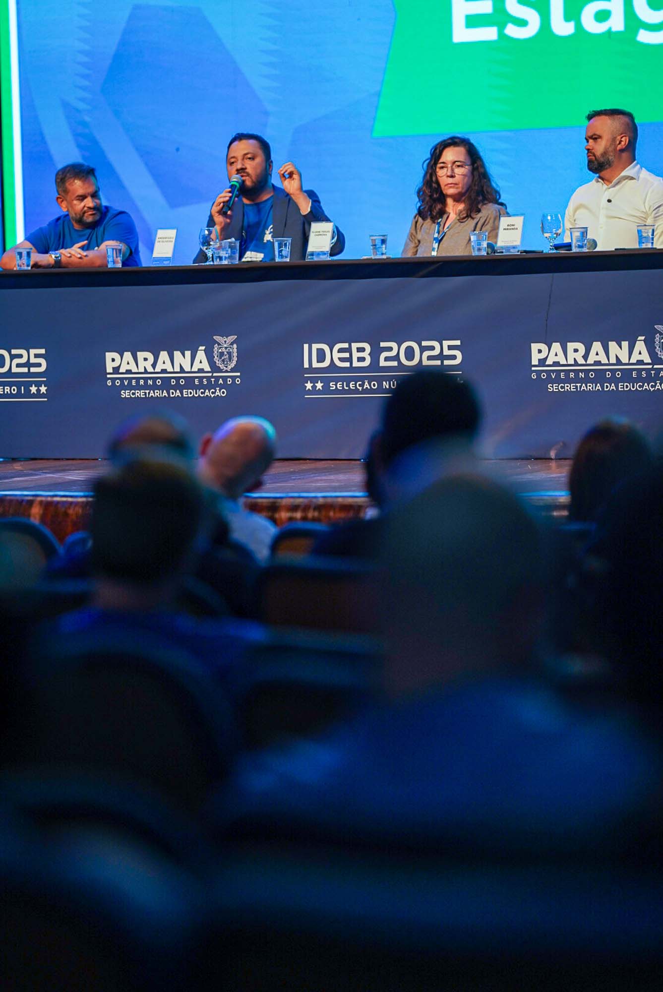 Durante o encontro, que reuniu cerca de 2 mil pessoas incluindo chefes de NREs, lideranças da Secretaria, do Instituto Paranaense de Desenvolvimento Educacional e da Paraná Educação (Preduc), o secretário Roni Miranda destacou as principais iniciativas do Governo do Estado, viabilizadas por meio da Seed-PR na educação, nos seis últimos meses.