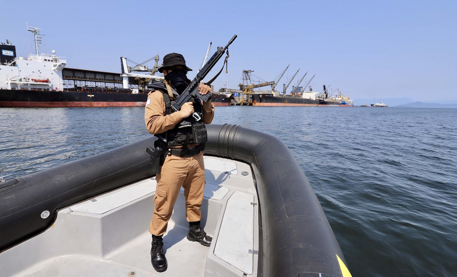 A partir desta terça-feira (13), as polícias Federal e Militar iniciam o patrulhamento conjunto da área dos portos do Paraná. A parceria, no mar, é inédita e se soma à atuação da Unidade Administrativa de Segurança Portuária (UASP) e da Guarda Portuária, principalmente no combate ao tráfico de drogas.