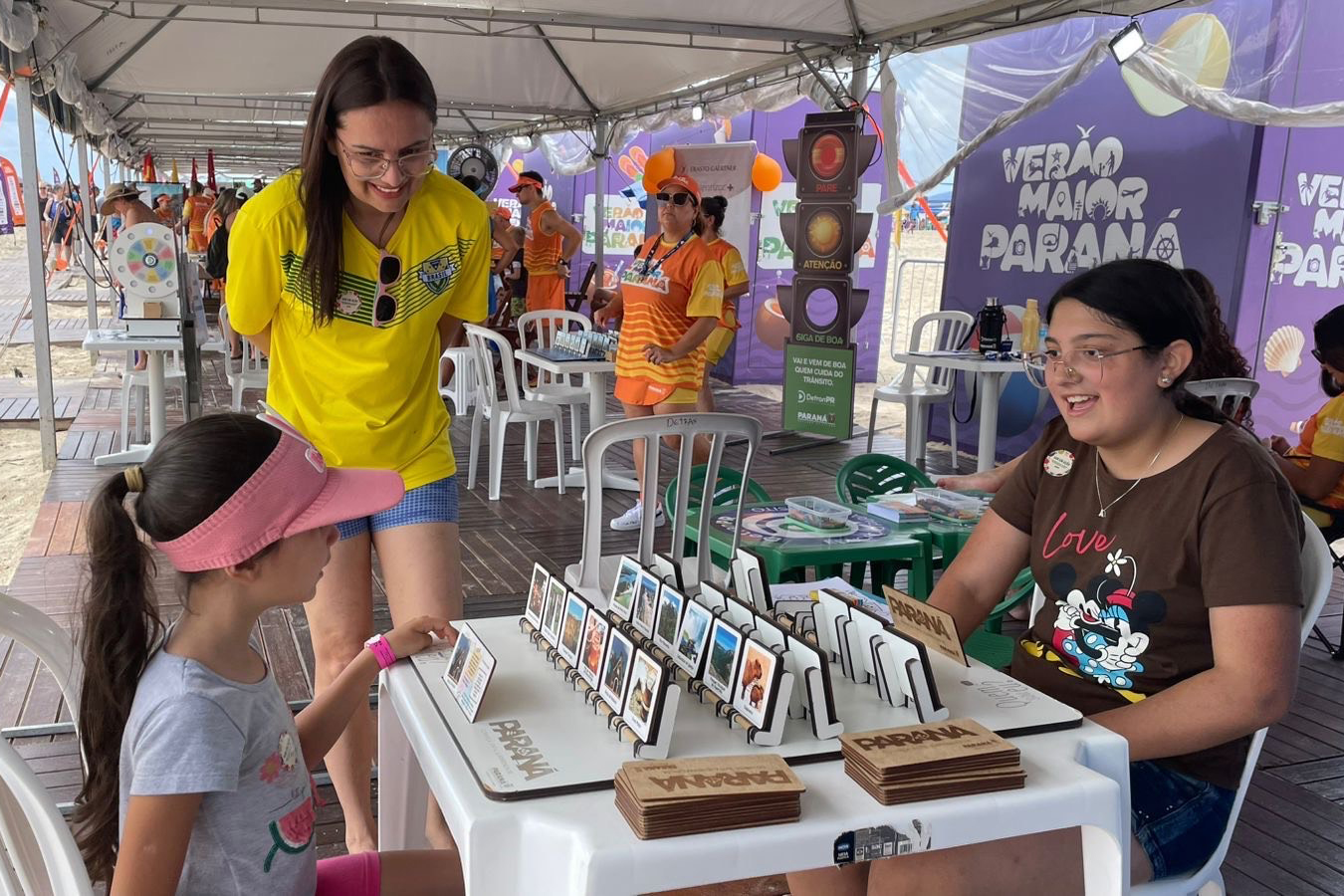 O trabalho da Secretaria de Estado do Turismo do Paraná (Setu) reforça o acolhimento e a orientação, qualificando a experiência dos visitantes durante o Verão Maior Paraná. Ao longo da temporada, o Estado mantém quatro pontos fixos de atendimento ao visitante no Litoral, além de uma equipe itinerante que percorre diferentes balneários, ampliando o acesso às informações e aos serviços ofertados.