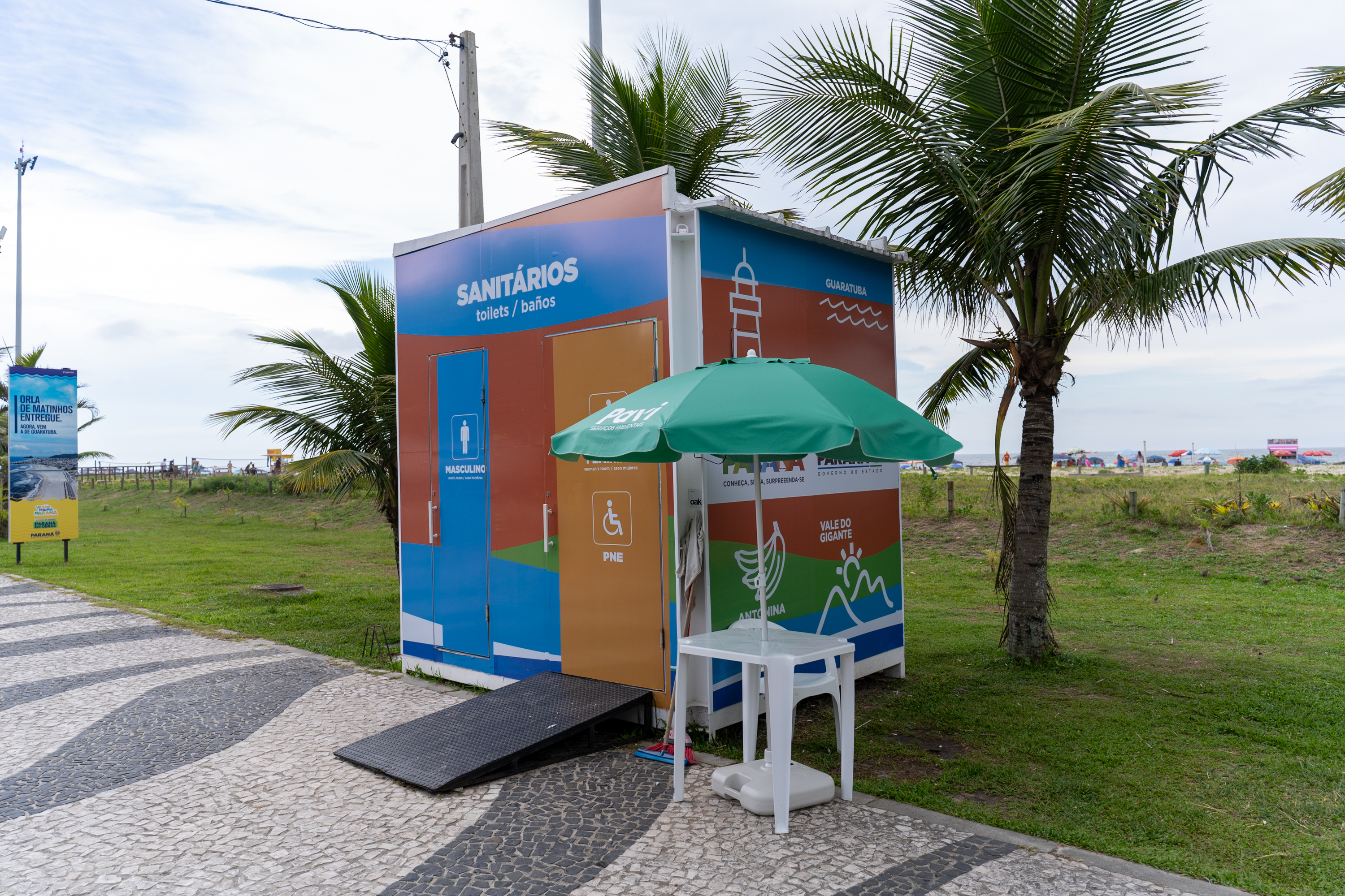 A Secretaria do Esporte instalou 27 banheiros distribuídos pelo Litoral, em locais como Guaratuba, Caiobá, Praia de Leste, Ipanema, Shangri-lá e Riviera, além de pontos no Noroeste do Estado. Esses espaços atendem o público masculino, feminino e pessoas com deficiência, com uso gratuito ao longo do dia.