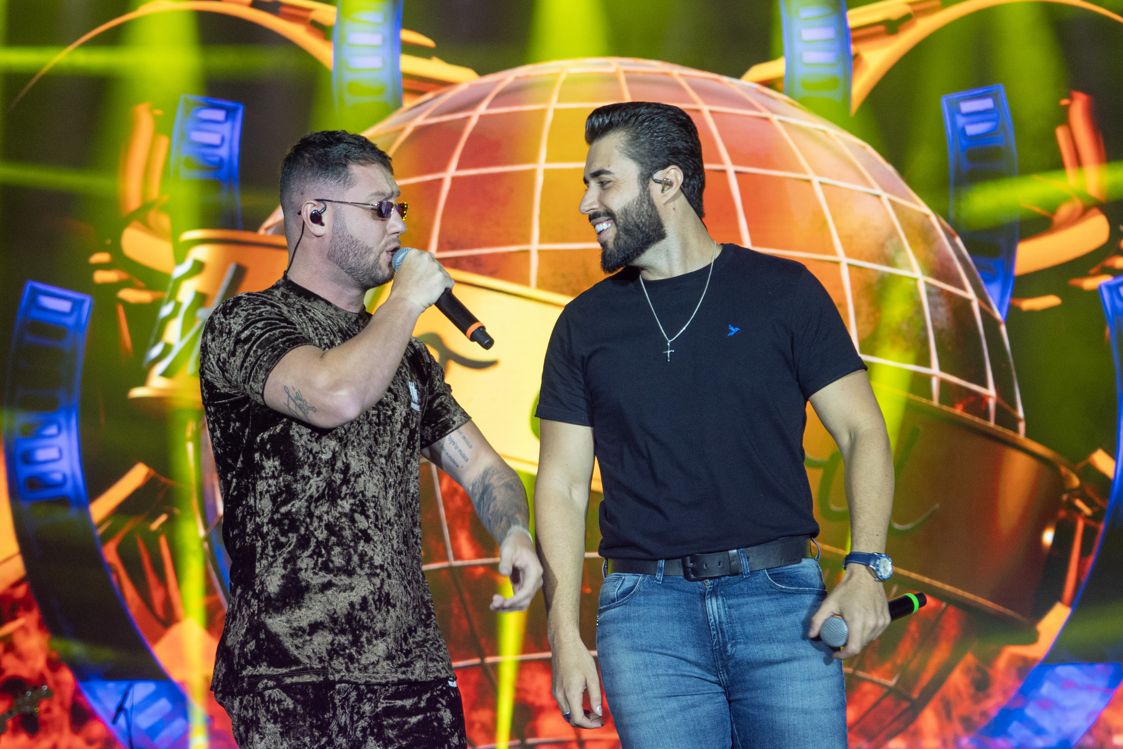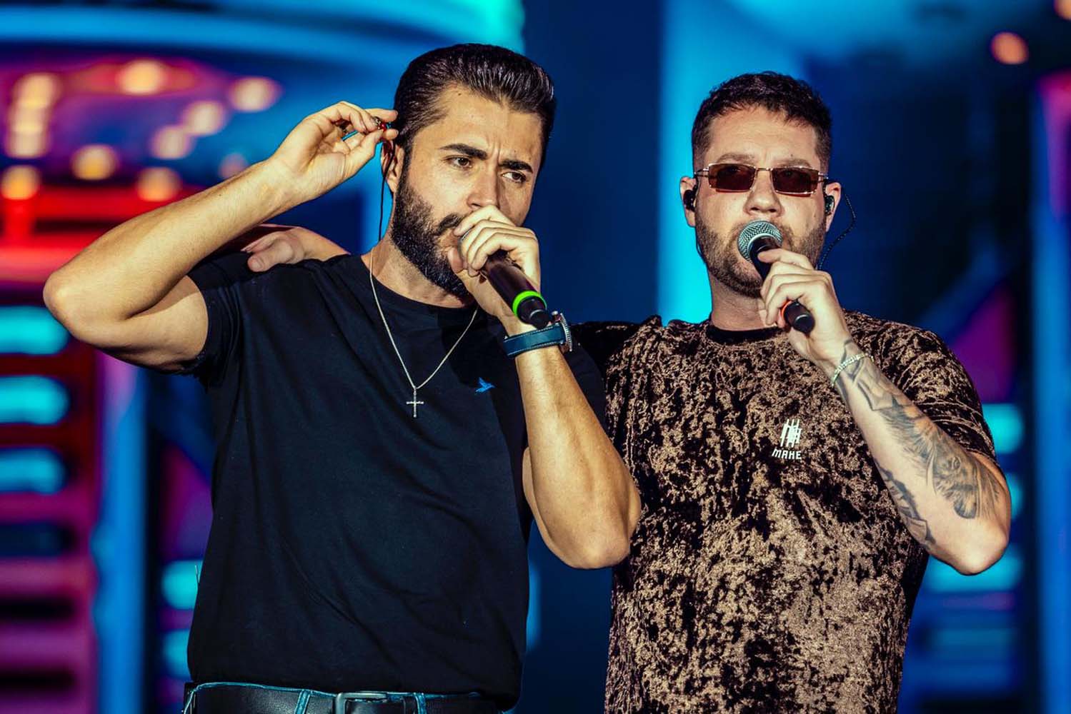 No palco, os artistas apresentaram um repertório que transitou entre o sertanejo universitário e o modão, com canções autorais como “Estado Civil”, colaboração com Gusttavo Lima — padrinho da dupla e tio de Bruno —, além de “O Jeito é Beber”.