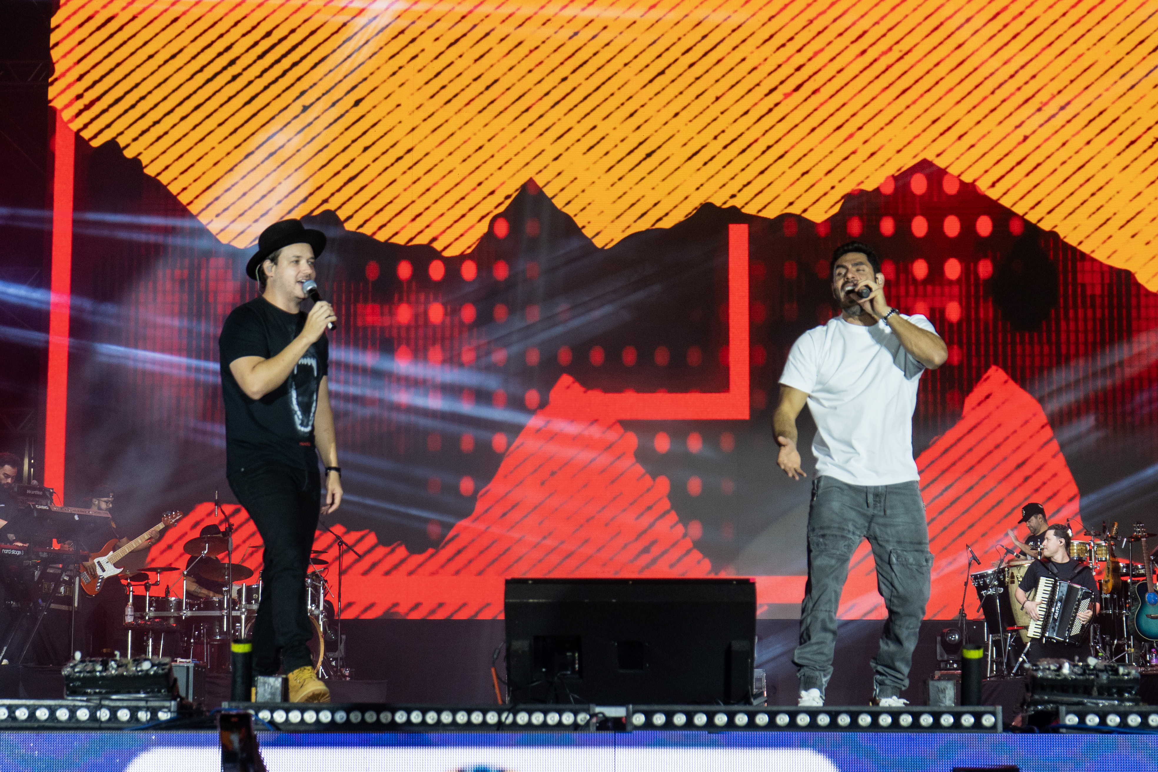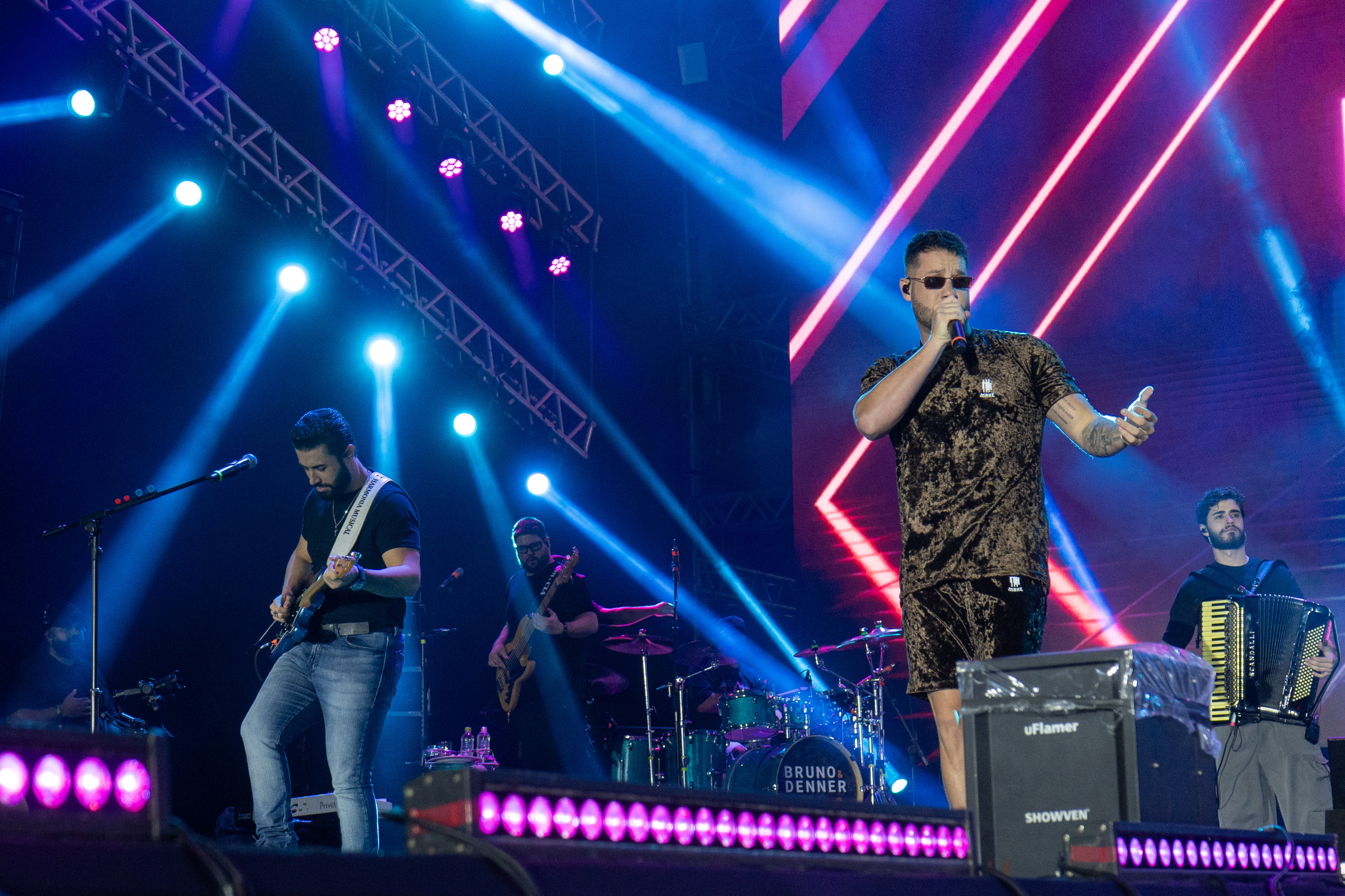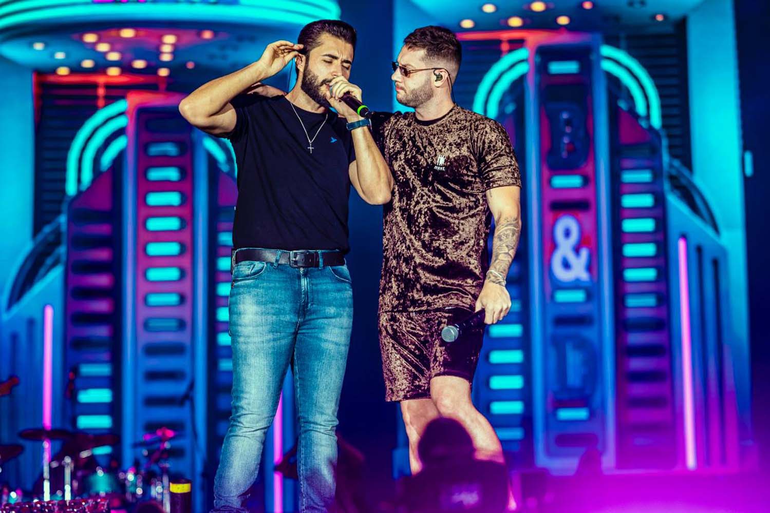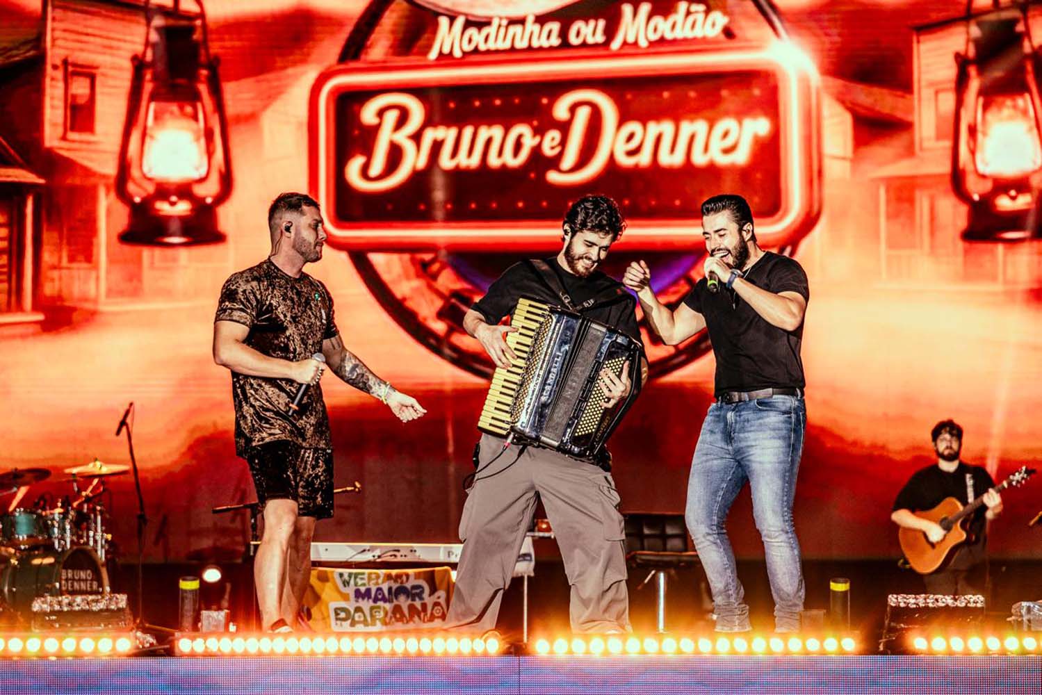 Conhecidos por unir a tradição sertaneja a elementos modernos, Bruno & Denner empolgaram públicos de todas as idades com releituras de músicas famosas, como “Gosta de Rua”, de Felipe & Rodrigo; “Barulho do Foguete”, de Zé Neto & Cristiano; e “Não Vitalício”, de Mari Fernandez e Matheus & Kauan.