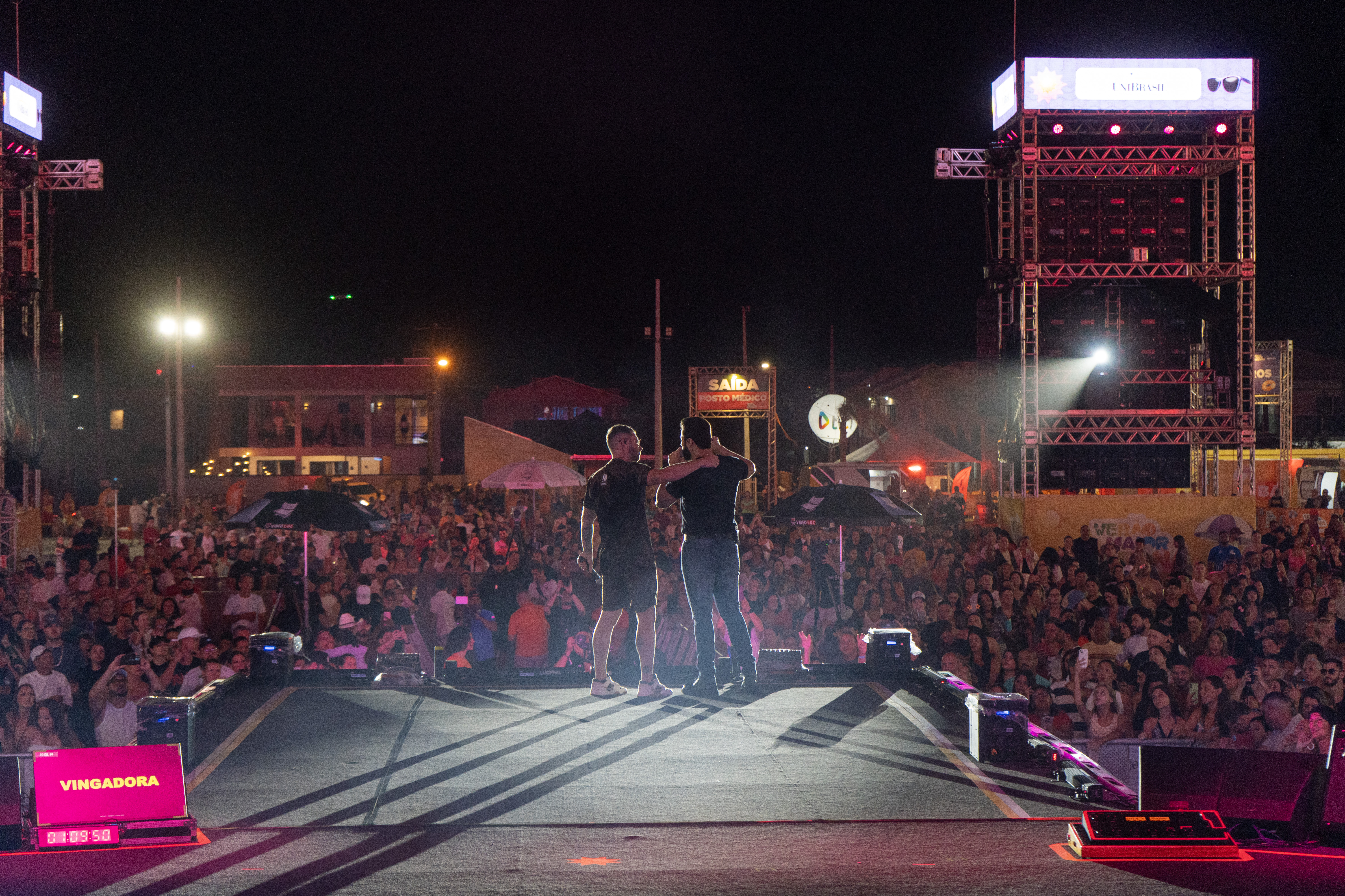 Com hits que acumulam milhões de reproduções nas plataformas digitais, como “Batom de Cereja”, “Seu Brilho Sumiu” e “Arruma um Bão”, a dupla levou o público ao delírio e fechou a noite em clima de festa, com muito foguete, no litoral paranaense.