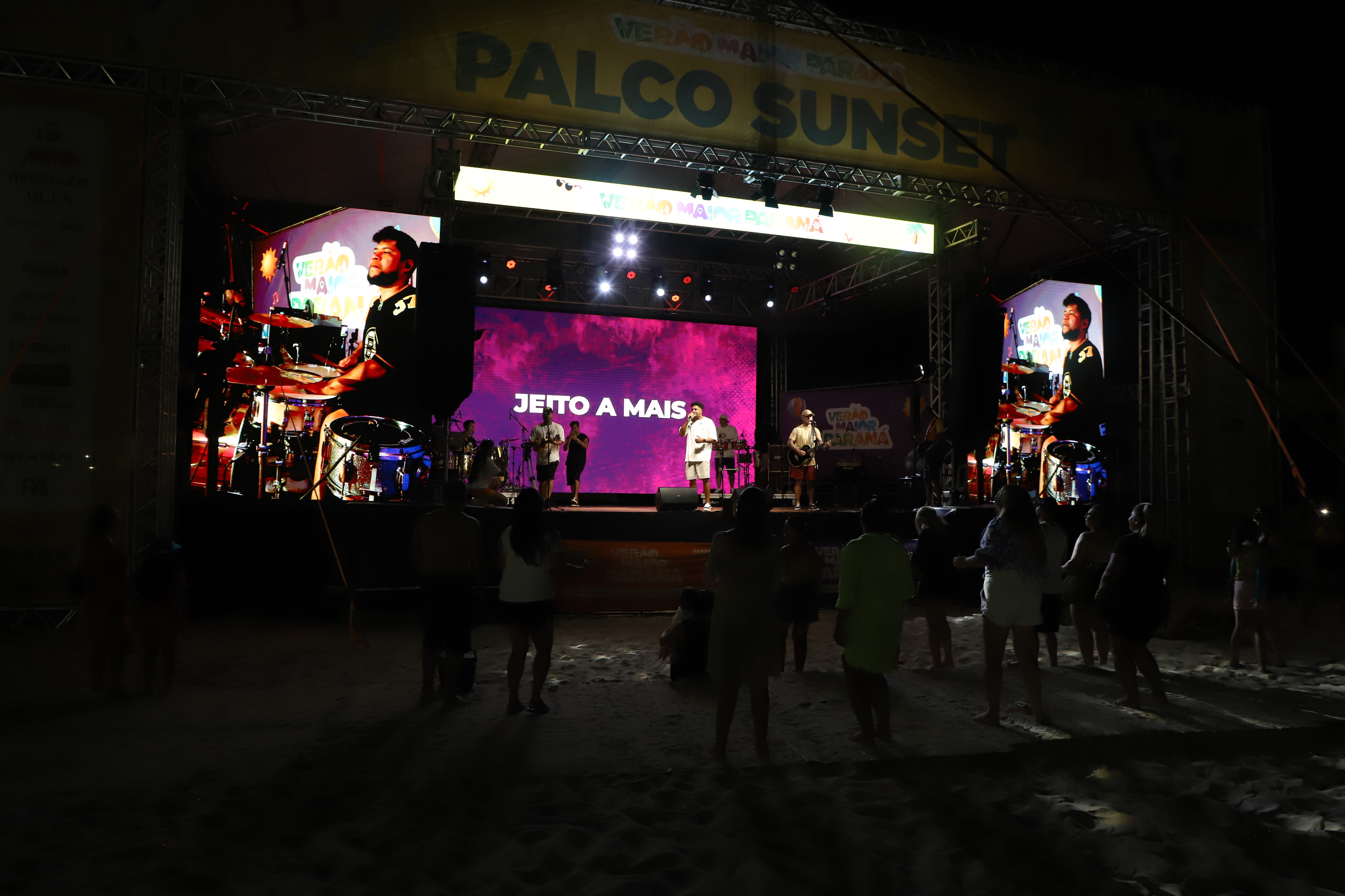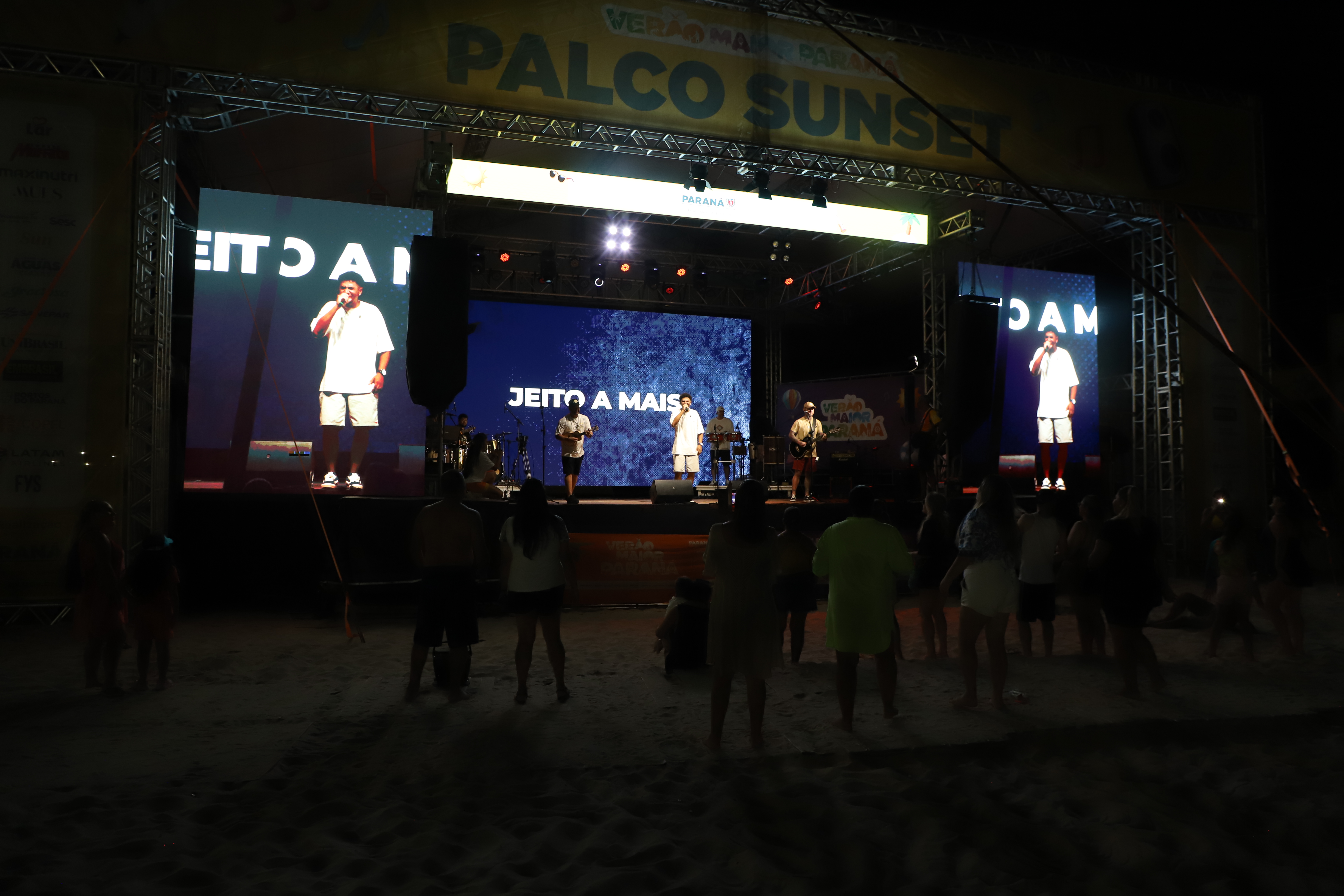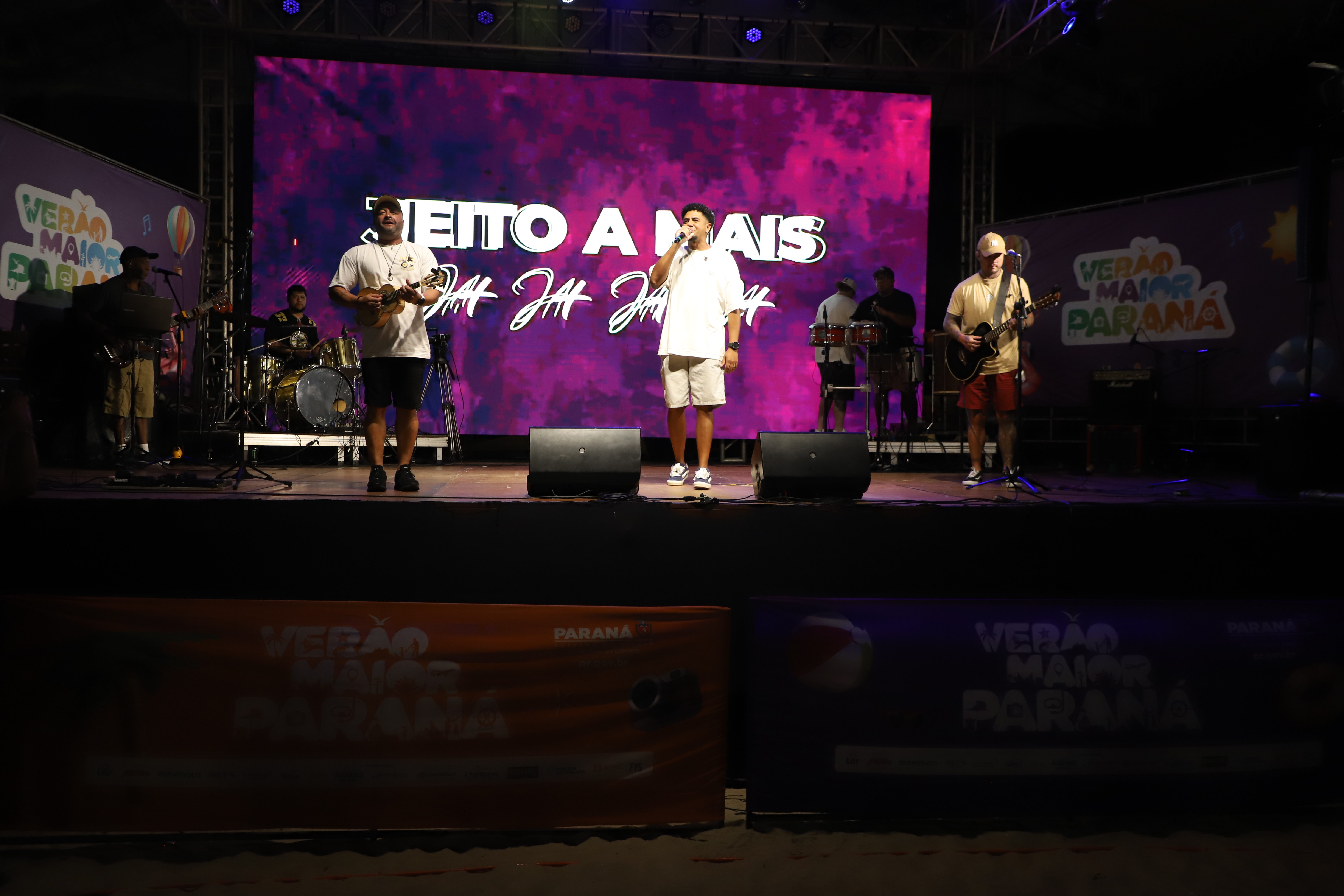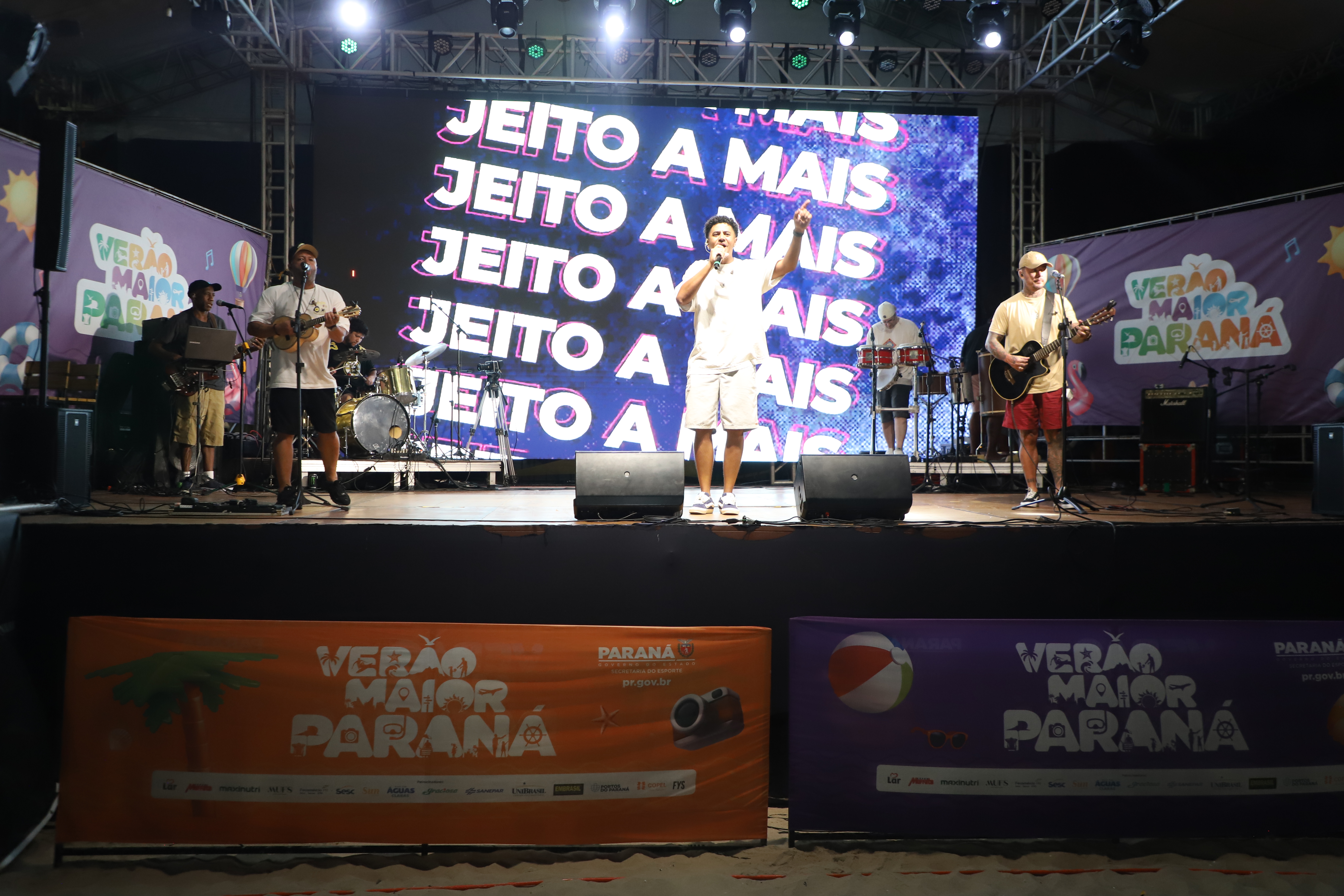 Na sequência, o palco recebeu a banda Jeito a Mais, que levou muito pagode para a areia. Com 28 anos de história, o grupo nasceu em Morretes, construiu sua trajetória em Curitiba e hoje se apresenta em todo o Estado.