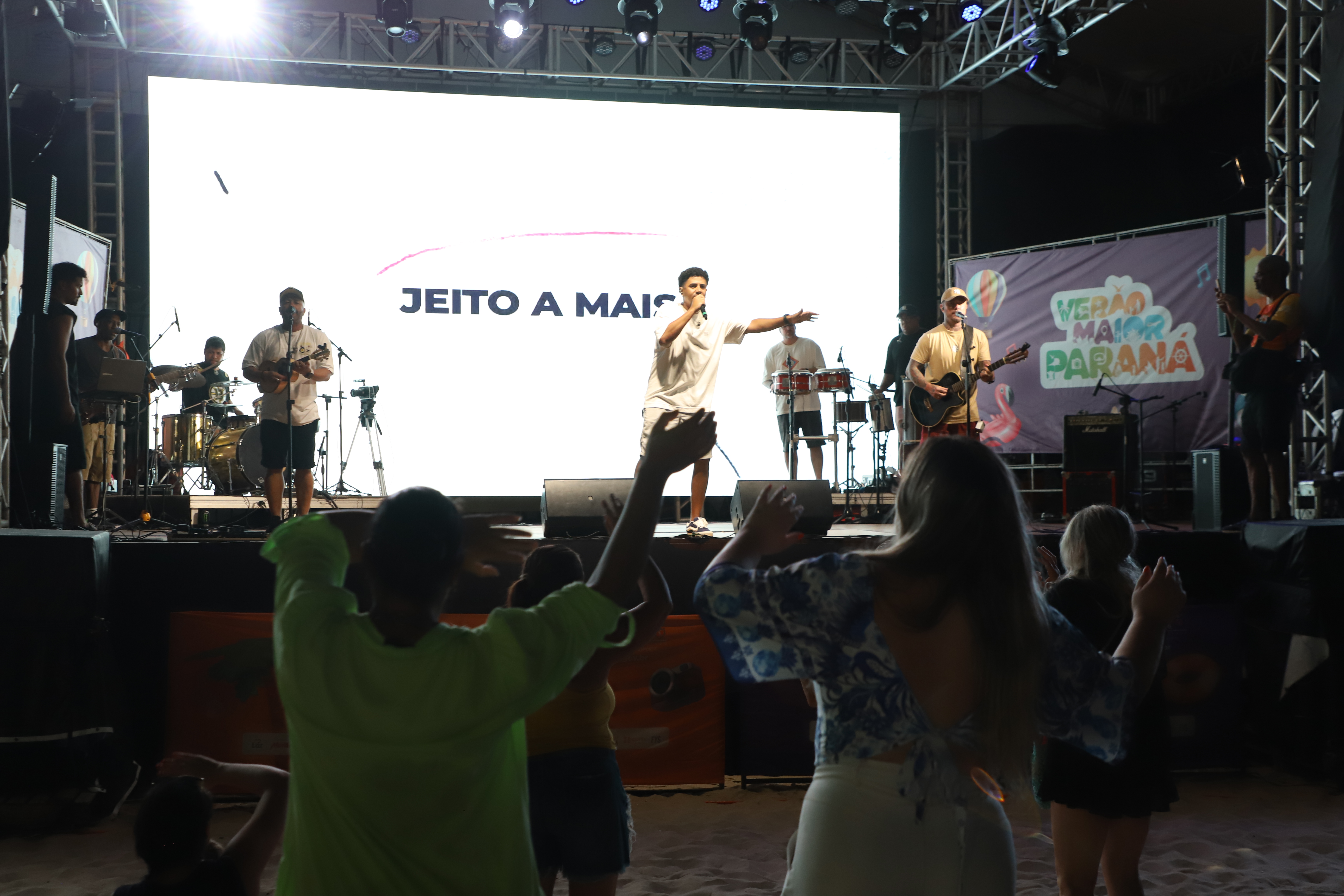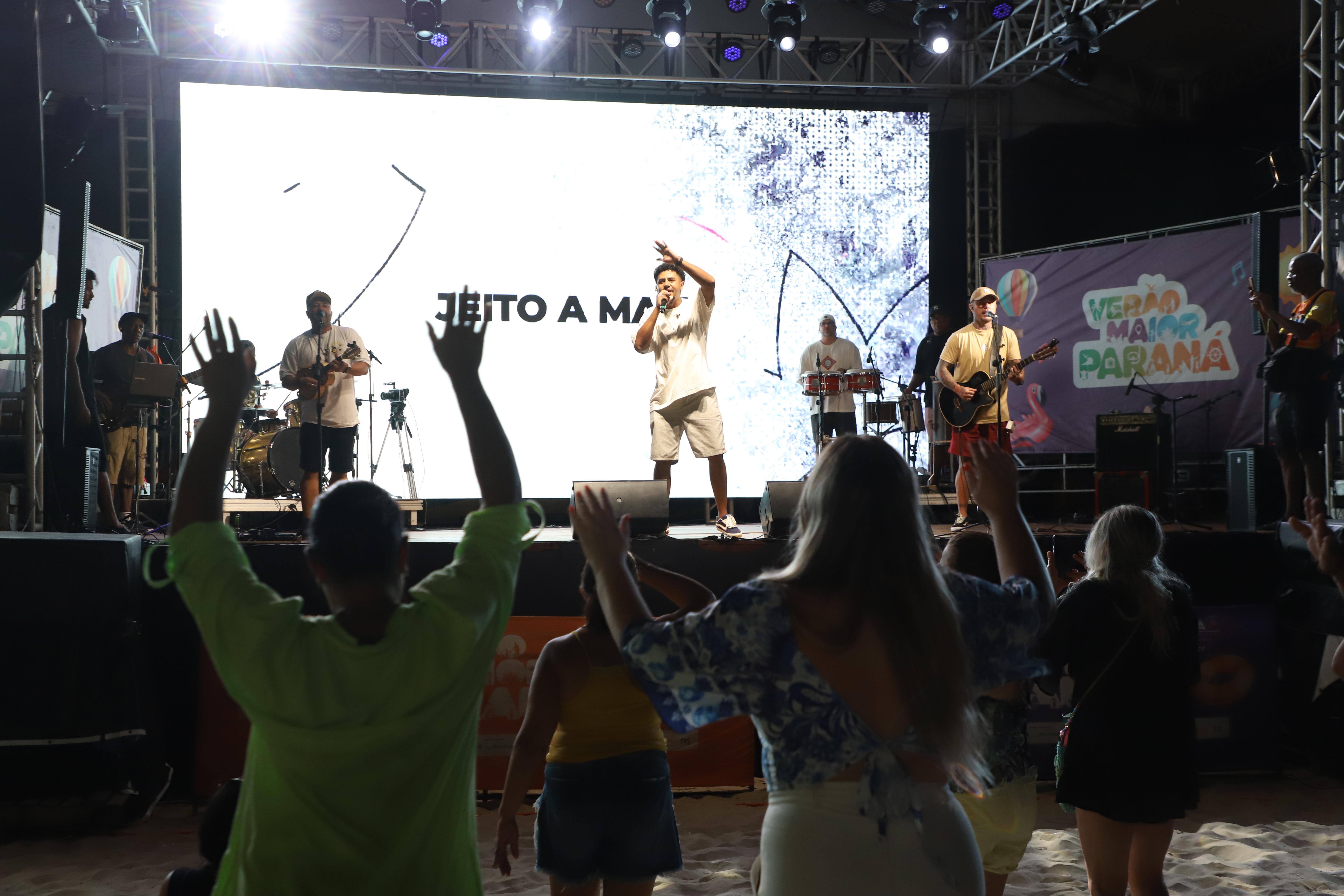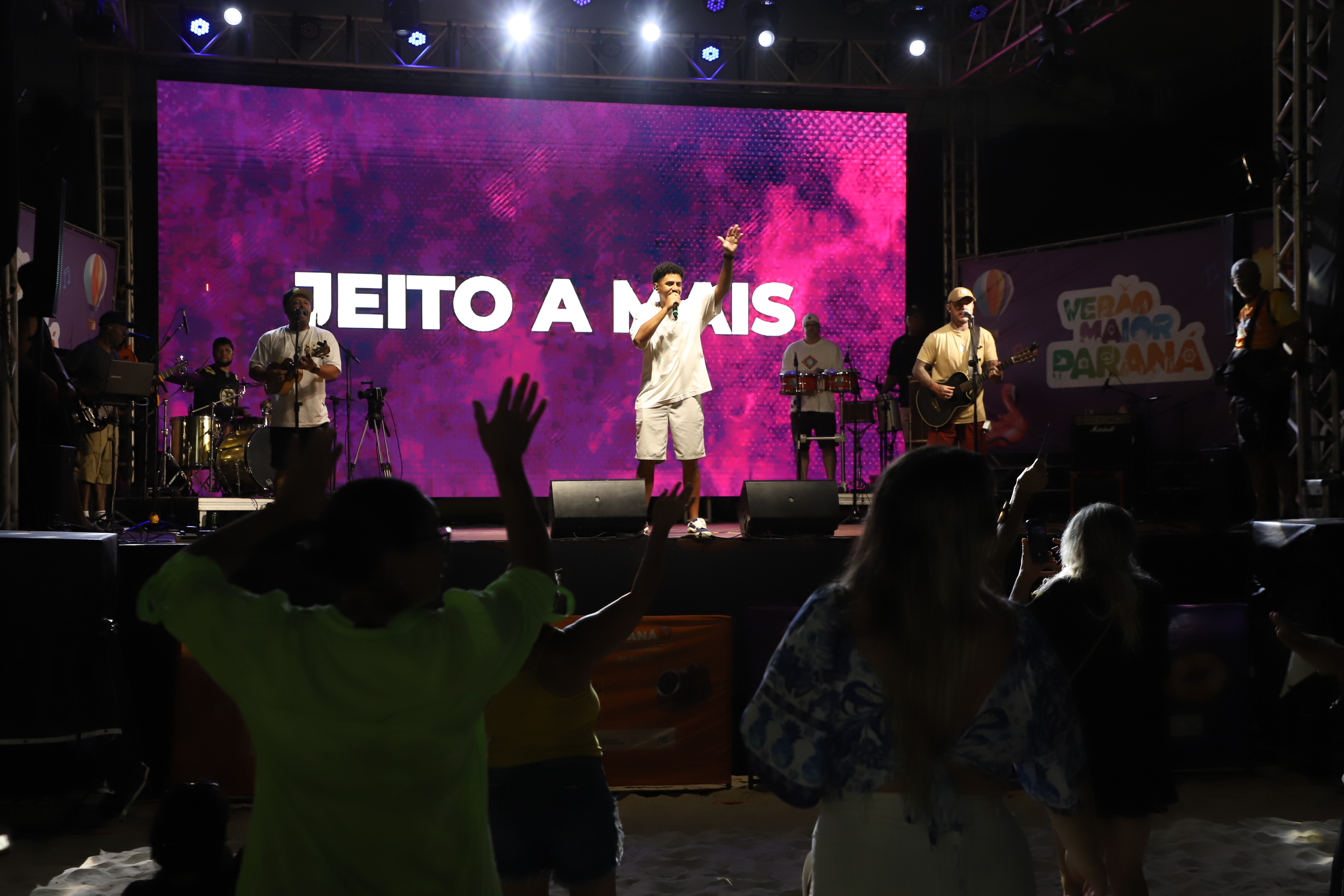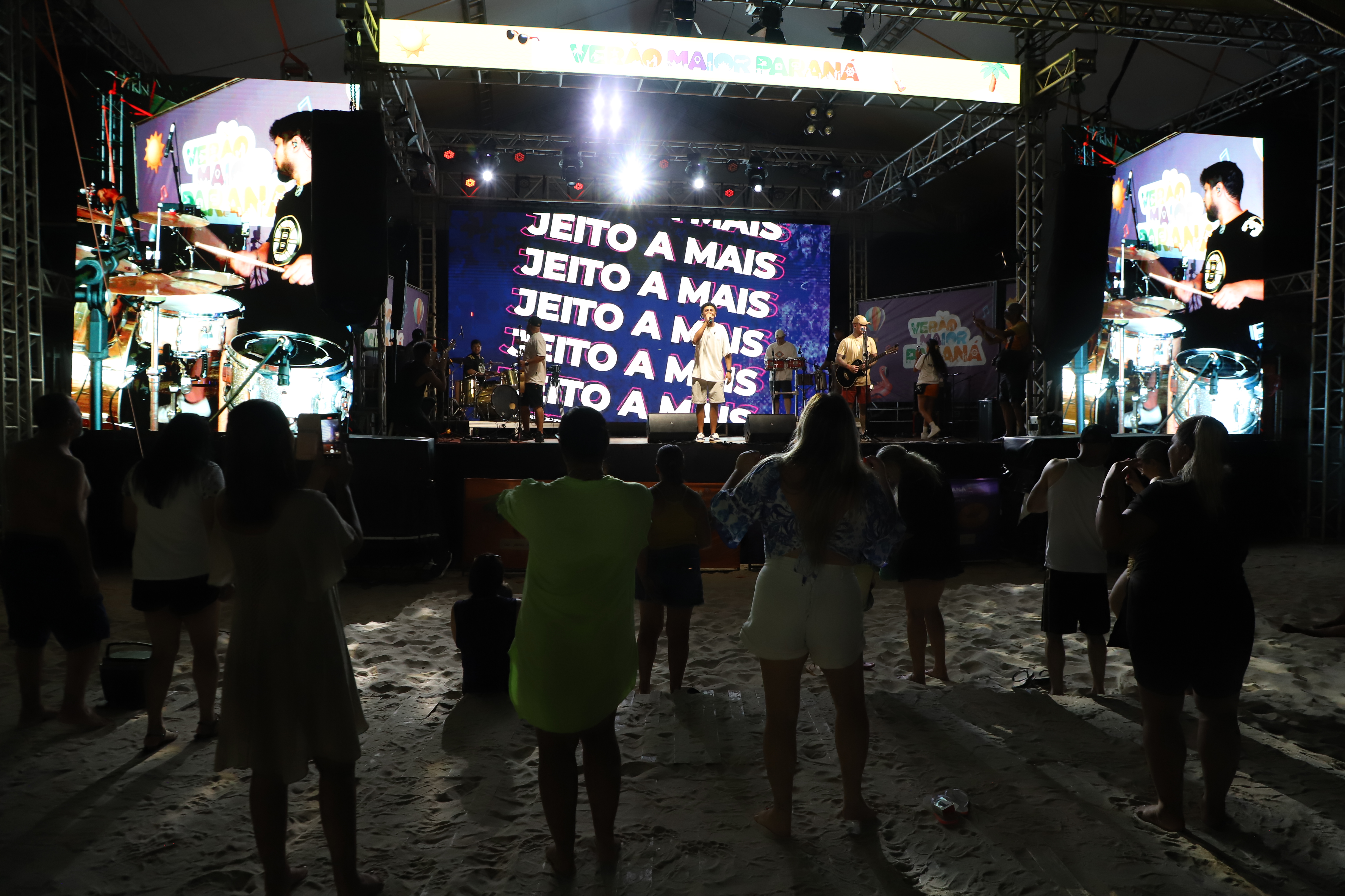 Na sequência, o palco recebeu a banda Jeito a Mais, que levou muito pagode para a areia. Com 28 anos de história, o grupo nasceu em Morretes, construiu sua trajetória em Curitiba e hoje se apresenta em todo o Estado.