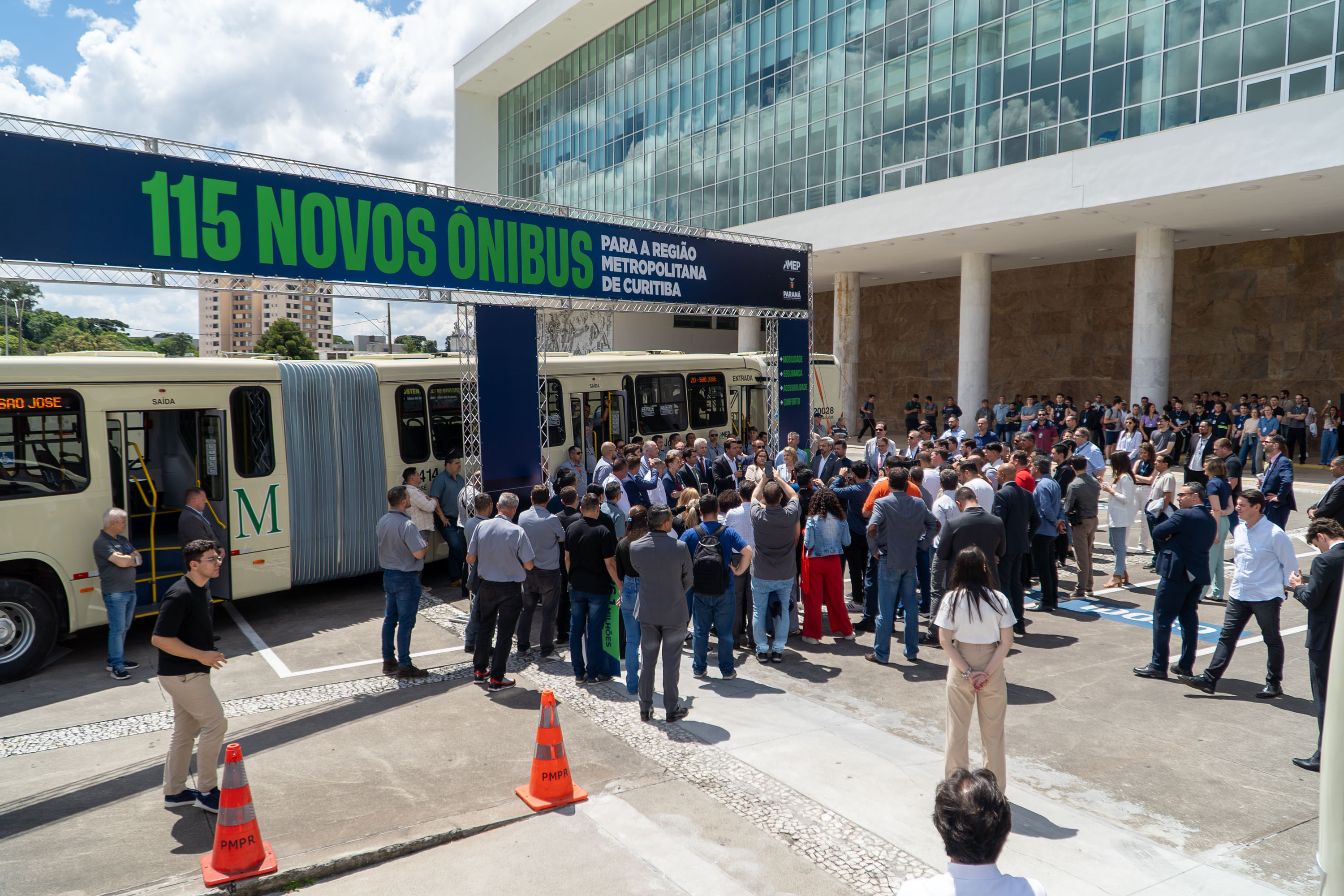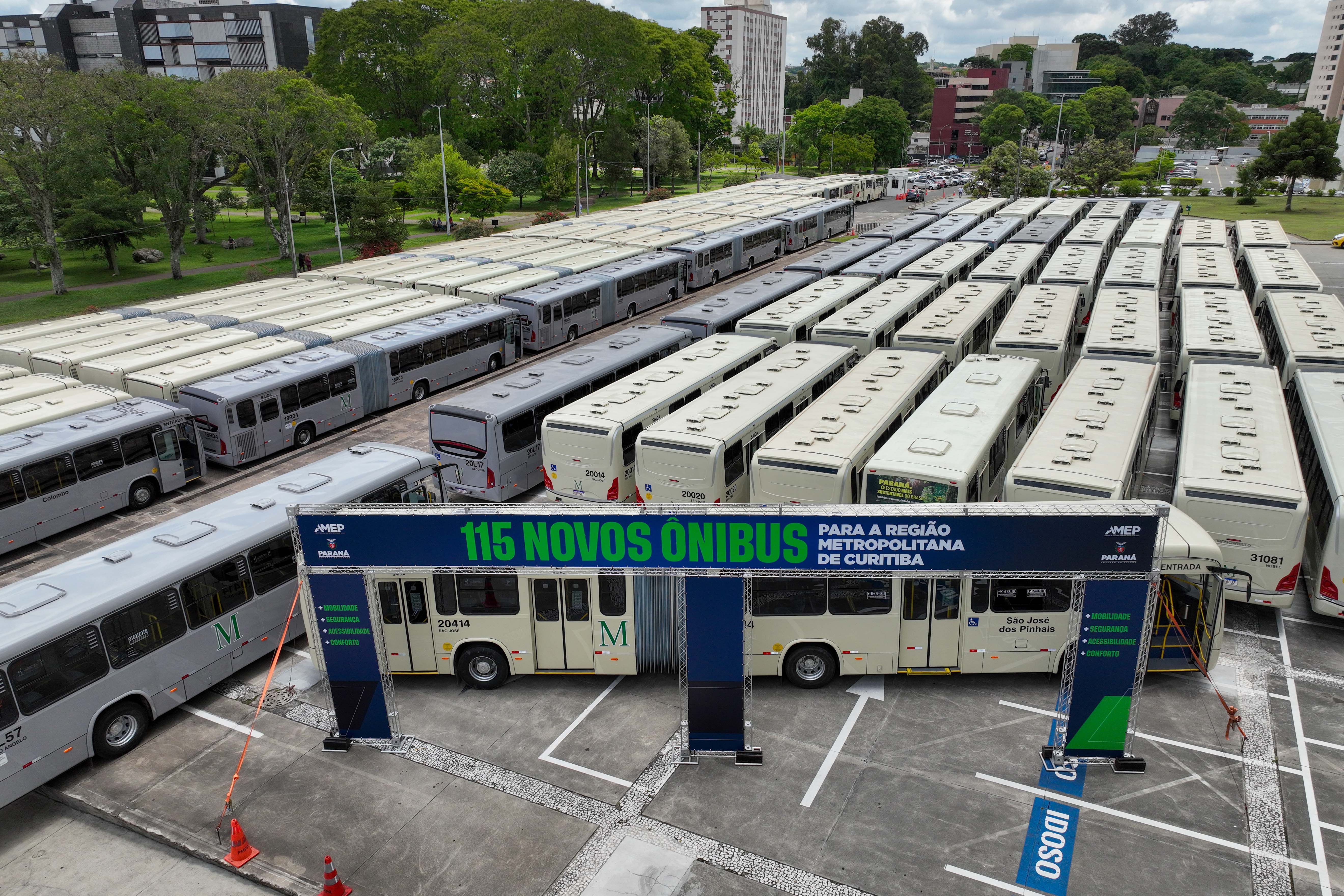 O transporte metropolitano da Grande Curitiba ganhou reforço nesta terça-feira (25) com a entrega de 115 ônibus zero quilômetro. A nova frota vai beneficiar seis municípios: Almirante Tamandaré, Pinhais, Fazenda Rio Grande, São José dos Pinhais, Colombo e Bocaiúva do Sul.