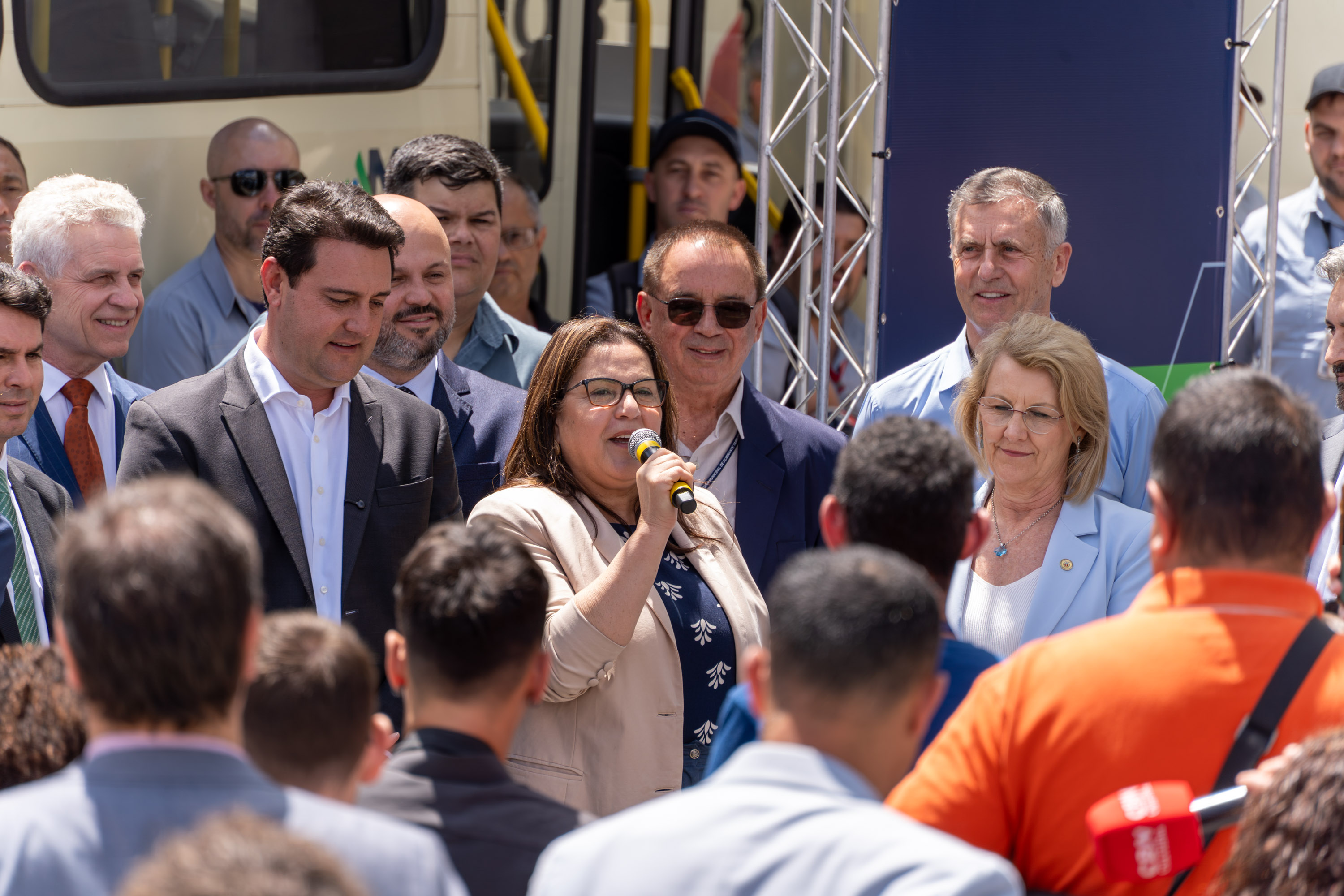 PRESENÇAS – Estiveram presentes o secretário de Estado da Administração e da Previdência, Luizão Goulart; a prefeita de São José dos Pinhais, Nina Singer; o prefeito em exercício de Fazenda Rio Grande, Serjão; o prefeito de Almirante Tamandaré, Daniel Lovato; o presidente da Metrocard, Lessandro Zem; o presidente da Assembleia Legislativa, Alexandre Curi; os deputados estaduais Thiago Bührer, Márcia Huçulak, Fabio Oliveira e Luiz Claudio Romanelli; o desembargador do Tribunal de Justiça do Estado do Paraná, Hamilton Marins; e o promotor de Justiça Marcelo Salomão.