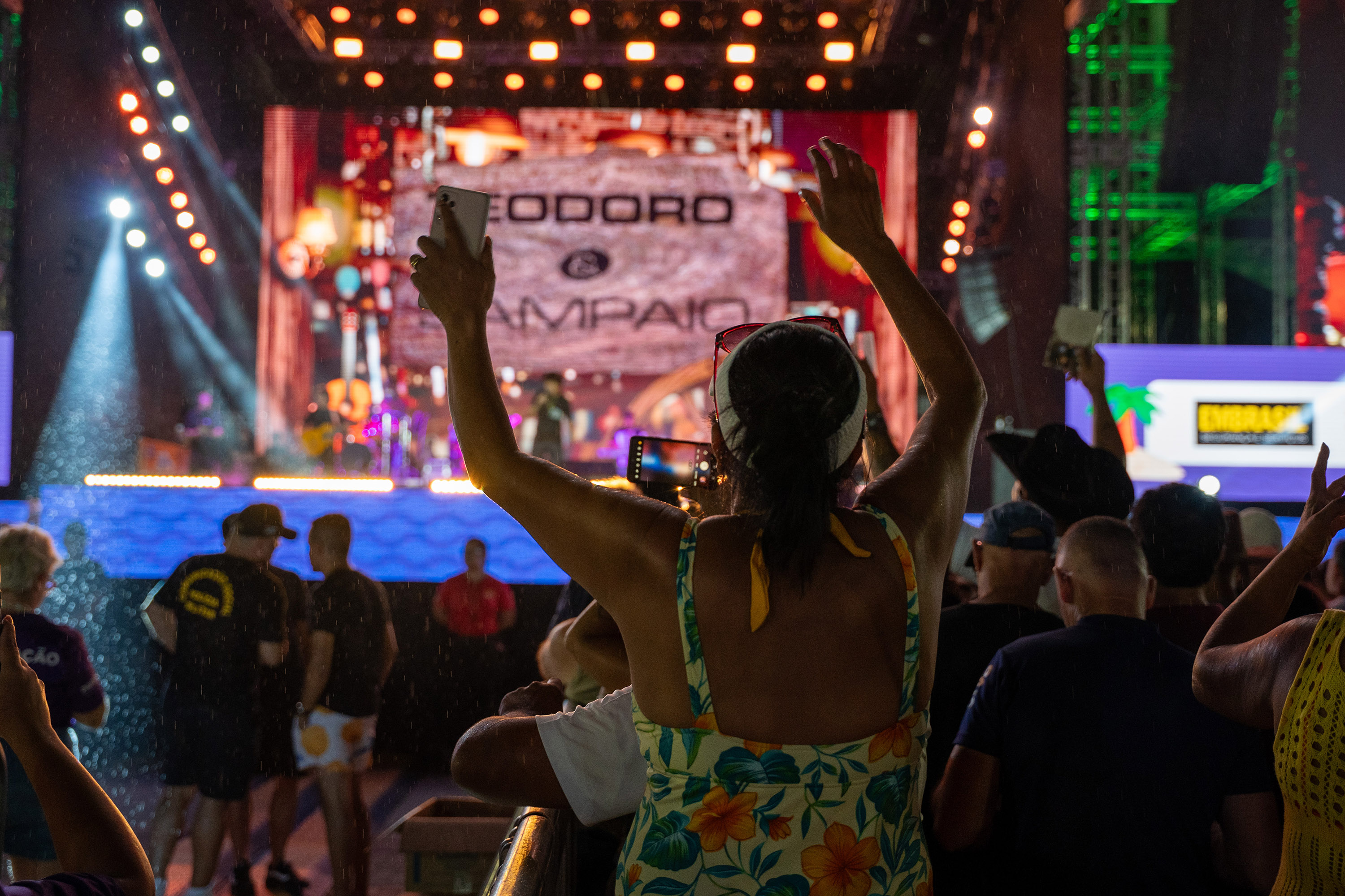 “A gente está empolgado em tocar aqui pela primeira vez, reunindo um público grande e um povo que gosta muito da gente e é caloroso, é muito gostoso. Nosso show é alegre, dançante e só tem sucesso que o povo gosta”, disse Teodoro.