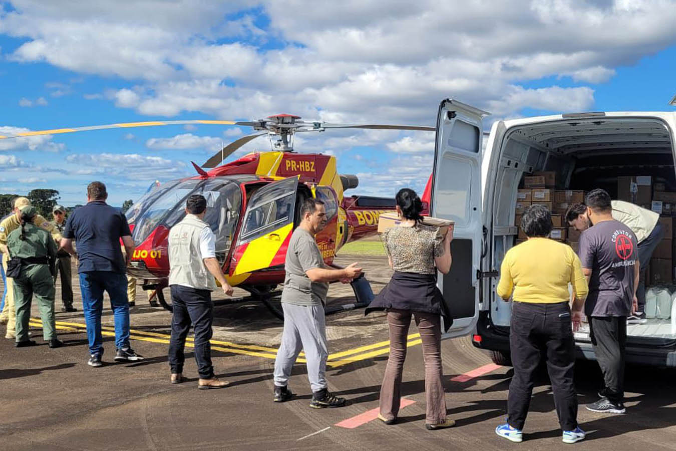 O envio foi feito por duas aeronaves do Governo do Estado até o aeroporto de Guarapuava, de onde o material foi transportado em quatro helicópteros até Laranjeiras do Sul, município que concentra a maior parte dos atendimentos às vítimas. A operação de logística foi realizada de forma emergencial para garantir que os hospitais e unidades de Pronto Atendimento tivessem reposição imediata de insumos essenciais.