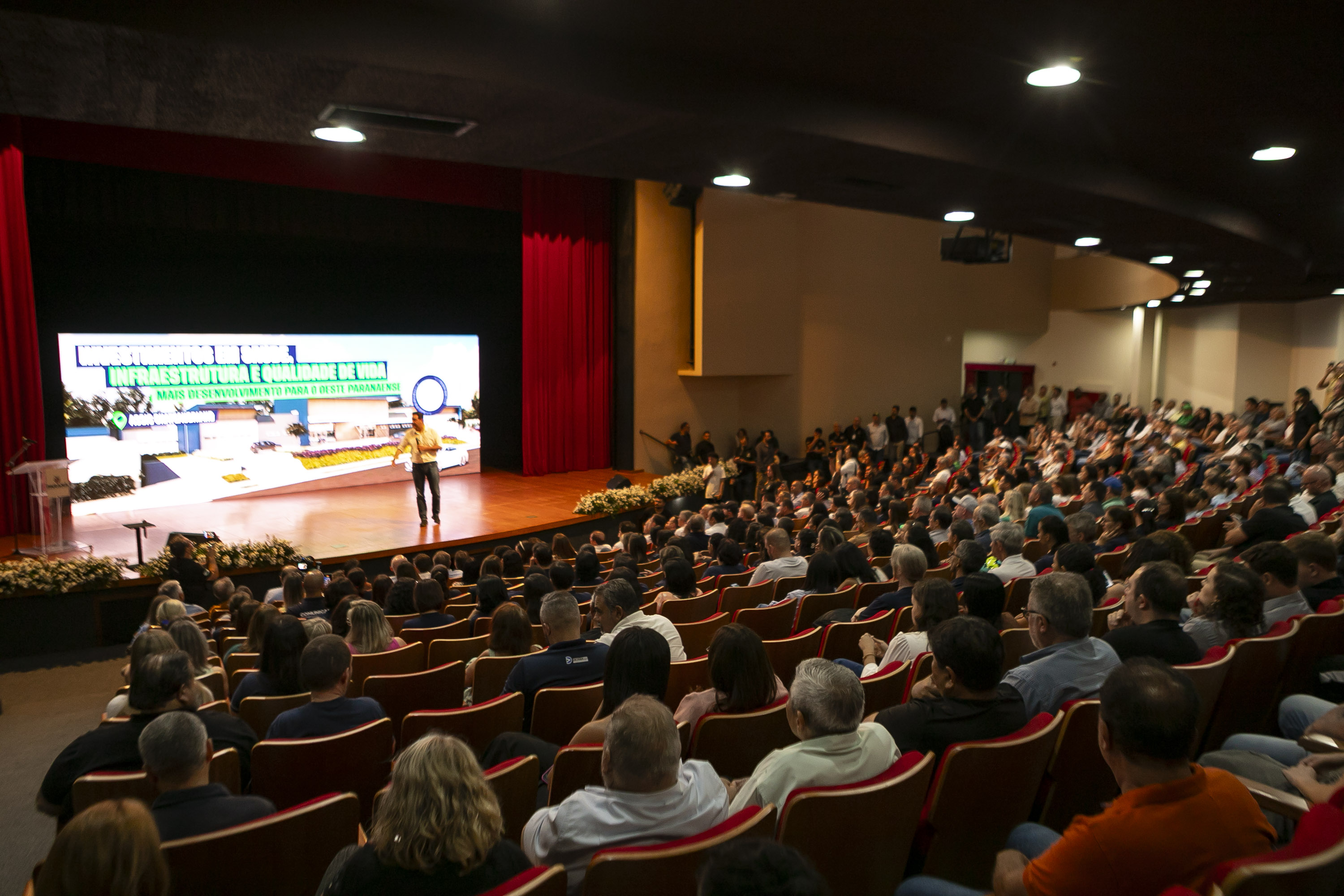 Destaque para as obras de restauração e ampliação em concreto de 40 quilômetros das rodovias PR-239 e PR-317, no trecho que liga o município a Toledo. O investimento previsto é de R$ 219,4 milhões e faz parte da estratégia do Estado de modernizar a malha rodoviária com soluções mais duráveis e seguras, fortalecendo a logística regional e o escoamento da produção.