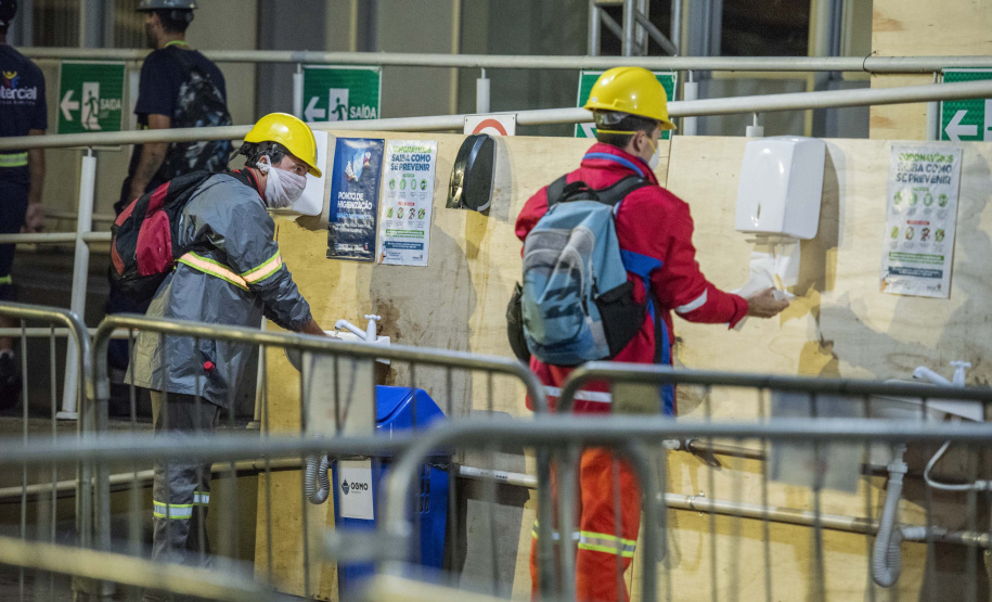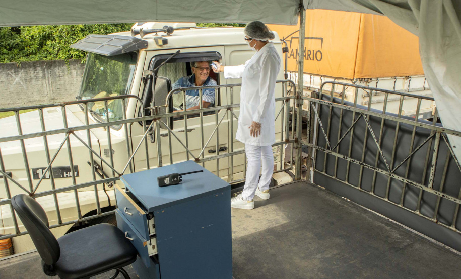 NA PRÁTICA - Além da aferição de temperatura, nesse processo foram comprados, através de processo simplificado, 2.340 litros de álcool em gel; 144 litros de sabonete de clorexidina 2% (usados em ambientes hospitalares); 2,5 mil pares de luvas de latex; 24 estruturas metálicas (tendas, cabines, pisos e biombos de isolamento); 200 metros lineares de grades de isolamento; manutenção de 32 chuveiros para os caminhoneiros; instalação de 34 lavatórios provisórios; 18 dispenseres de sabonete líquido; 200 fardos de papel toalha; 1.000 sacos de lixo; locação de 40 espaços de higienização.