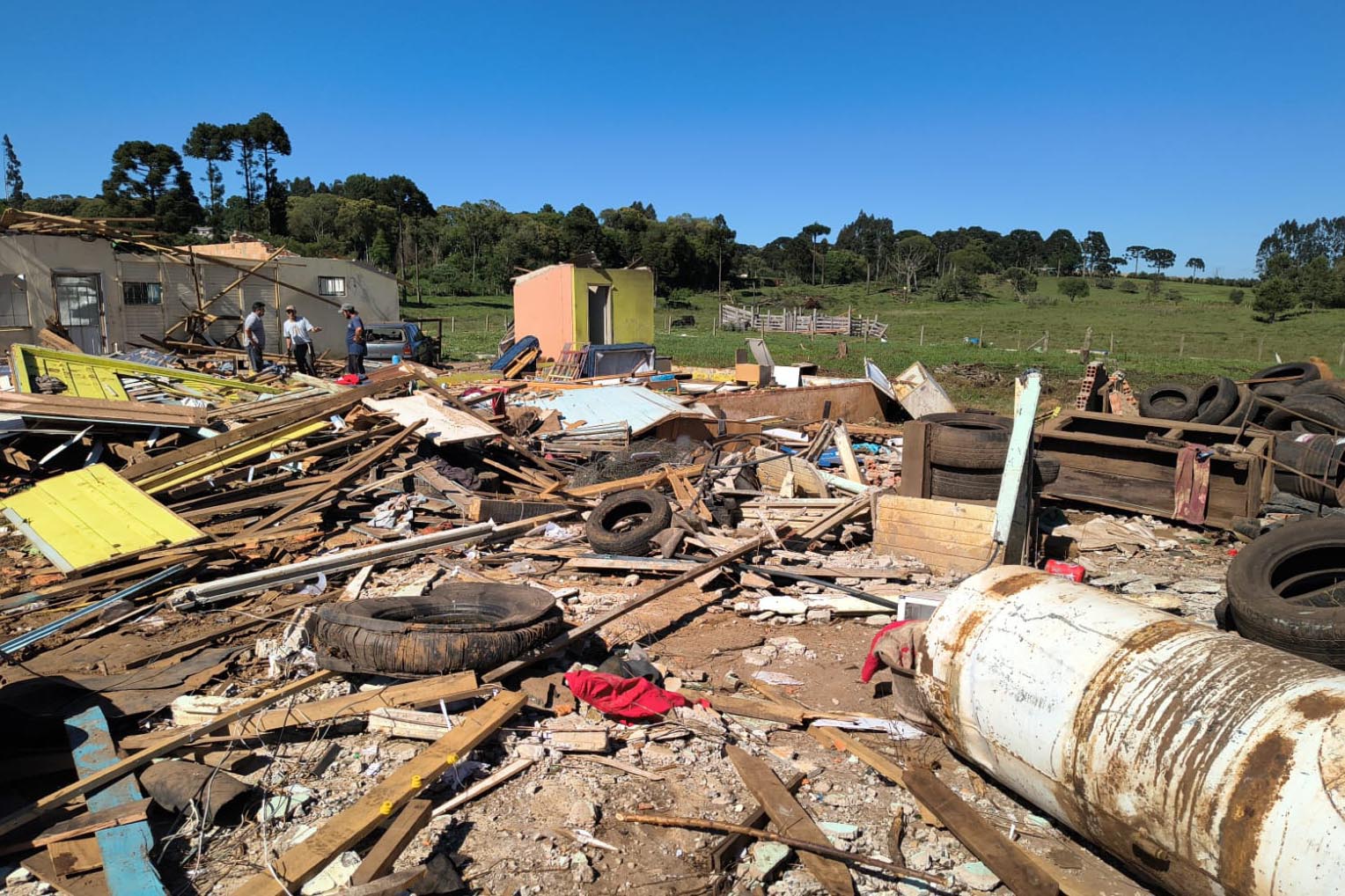 Desde o último sábado (8), Governo do Estado, forças de segurança e agentes municipais atuam para reparar danos e reconstruir imóveis afetados pelo tornado que atingiu a região Centro-Sul do Paraná na noite de sexta-feira (7). O evento climático que devastou quase 90% da cidade de Rio Bonito do Iguaçu também causou estragos em outros municípios, que registraram destelhamento e danos estruturais em imóveis na área rural, bem como pessoas feridas e desalojadas.