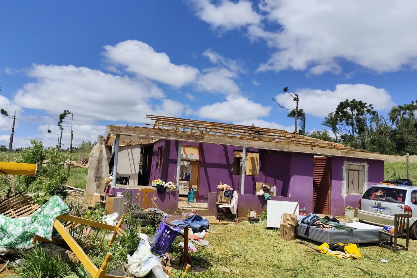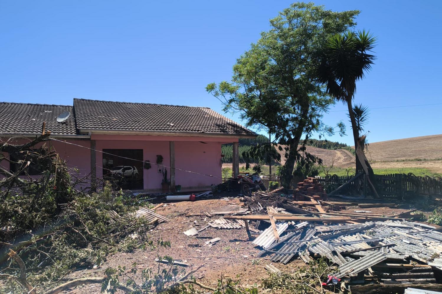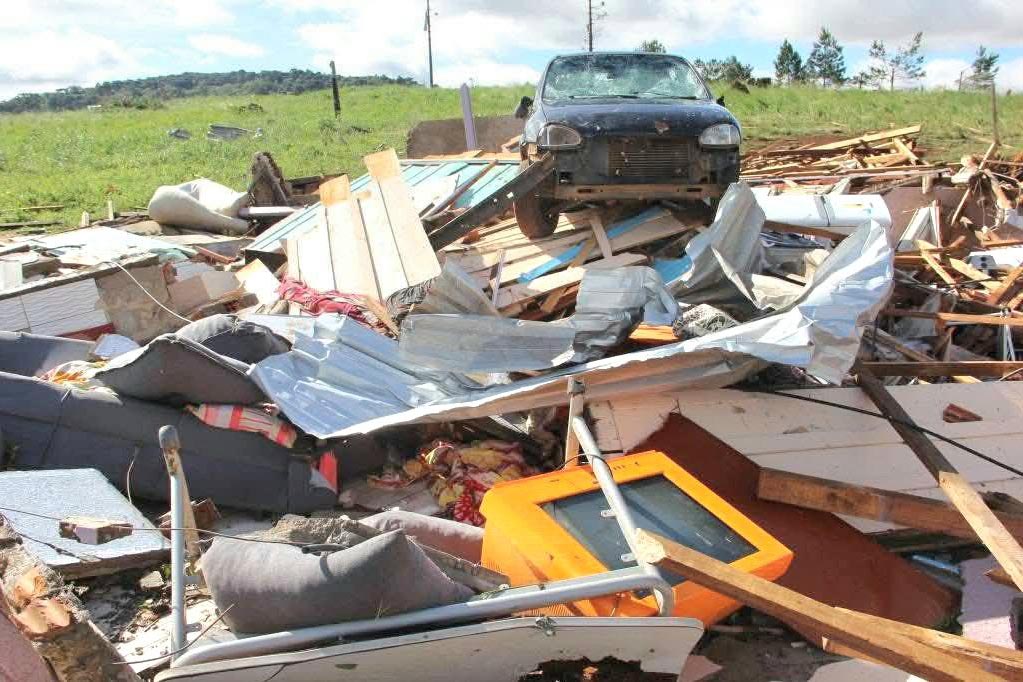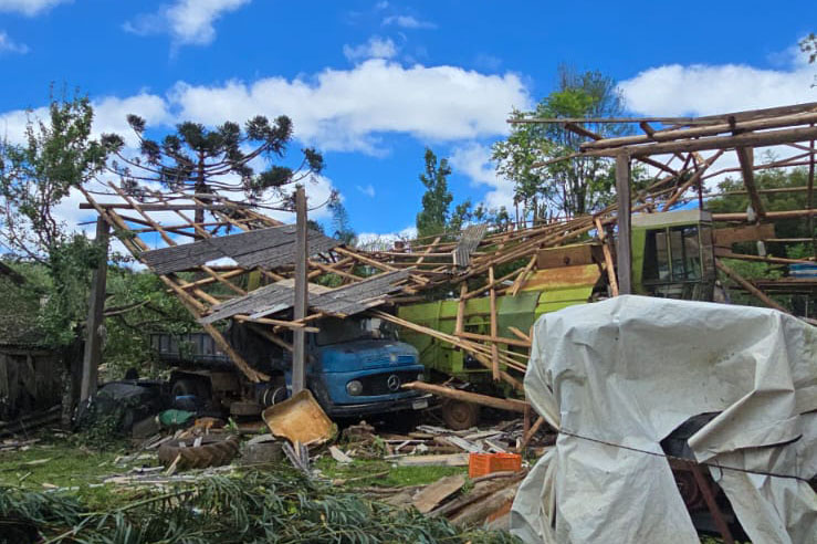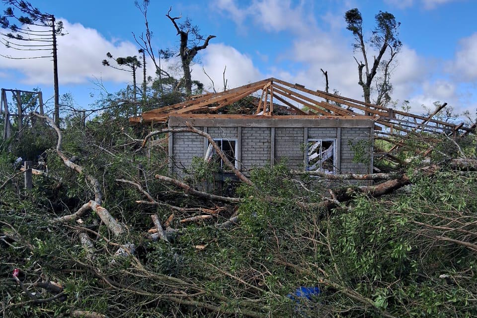 COMUNIDADE RURAL - Em Turvo, por exemplo, um tornado com ventos de até 200 km/h deixou 21 casas danificadas ou destruídas, a maior parte na comunidade rural de Cachoeira dos Turcos. Ao todo, 58 pessoas foram diretamente afetadas, entre feridos, desabrigados e desalojados. A partir de sábado (8), as Compedec e coordenadorias estadual e regional da Defesa Civil atuaram em conjunto para o atendimento às vítimas e a entrega de telhas na região. Parte dos telhados foi reparada, e o município já não tem registro de pessoas desabrigadas.