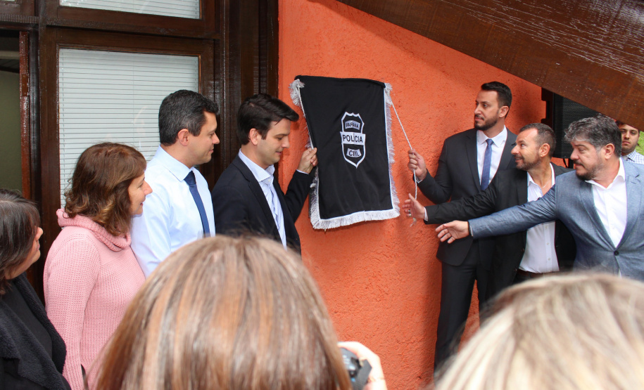 PRESENÇAS - Estiveram presentes na inauguração o delegado-geral adjunto Riad Braga Farhat; o assessor civil da Secretaria de Segurança Pública, Vinícius Augustos de Carvalho; o delegado-chefe da Delegacia de Proteção ao Meio Ambiente, Matheus Araújo Laiola; o delegado-chefe da Divisão de Polícia Especializada, Alexandre Macorin; o delegado-chefe da Divisão de Polícia Metropolitana, Fábio Amaro; o delegado-chefe da Divisão Policial do Interior, Lanevilton Moreira; o vice-prefeito de Curitiba, Eduardo Pimentel; o secretário municipal de defesa social e de trânsito, Guilherme Rangel.