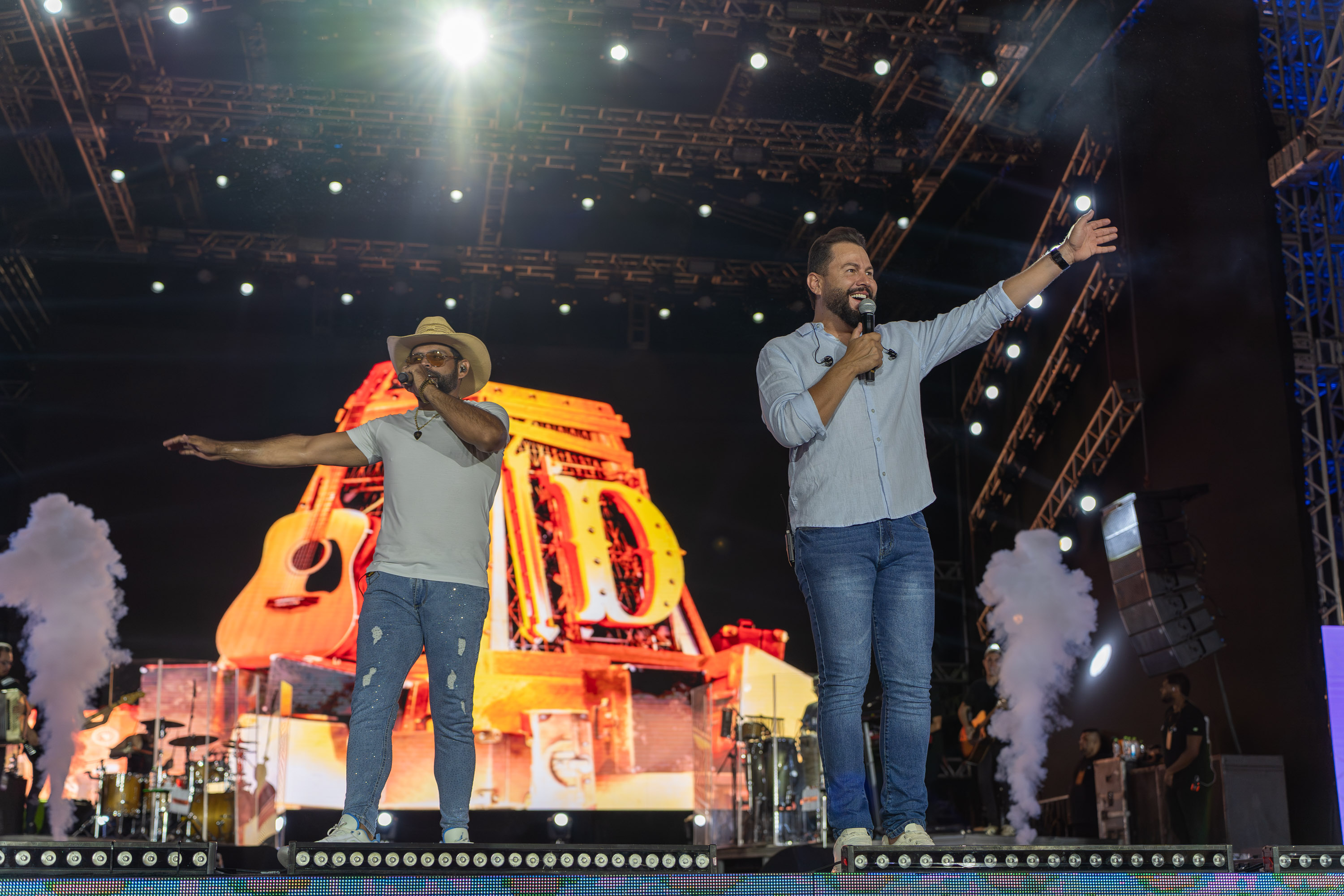 Com um repertório que mescla romantismo, sofrência e músicas animadas, Diego & Arnaldo apresentaram sucessos que consolidaram a carreira nacional da dupla, como “Não Me Recomendo”, “Relógio Parado” e “Resumindo”, cantadas em coro pelo público. A escolha das músicas reforçou a identidade sertaneja que projetou os artistas nacionalmente e garantiu forte interação com a plateia desde os primeiros minutos do show.