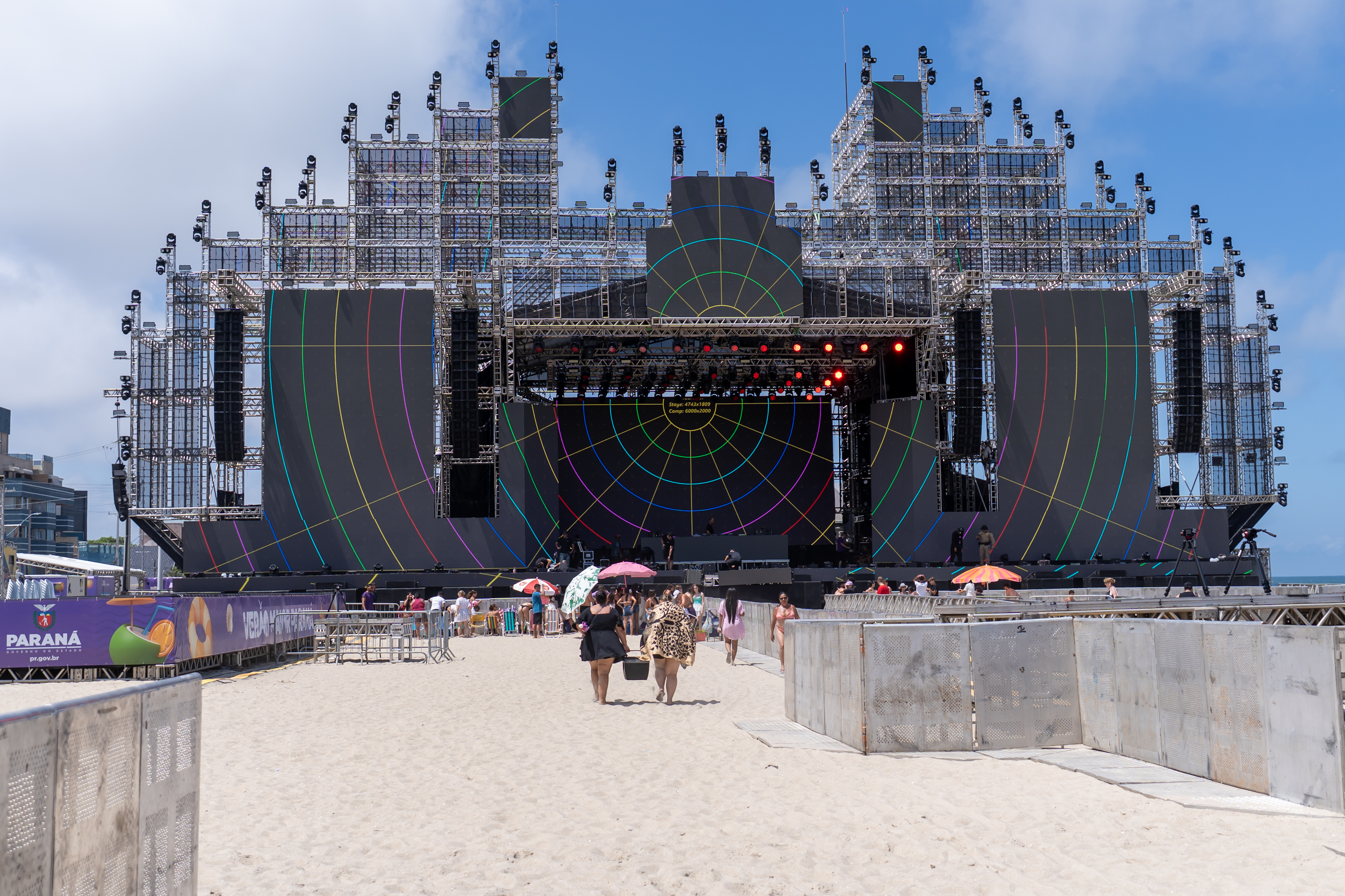 Perto das 14h, o divisor de fluxo que separava o palco da praia foi aberto e um grupo de fãs correu para garantir a grade para o show do DJ Alok, que começa às 22h e abre, nesta sexta-feira (9), a programação de shows do Verão Maior Paraná em Matinhos, no Litoral. Teve gente que estava aguardando desde a madrugada para poder ficar bem perto do ídolo, que é um dos maiores DJs da atualidade.