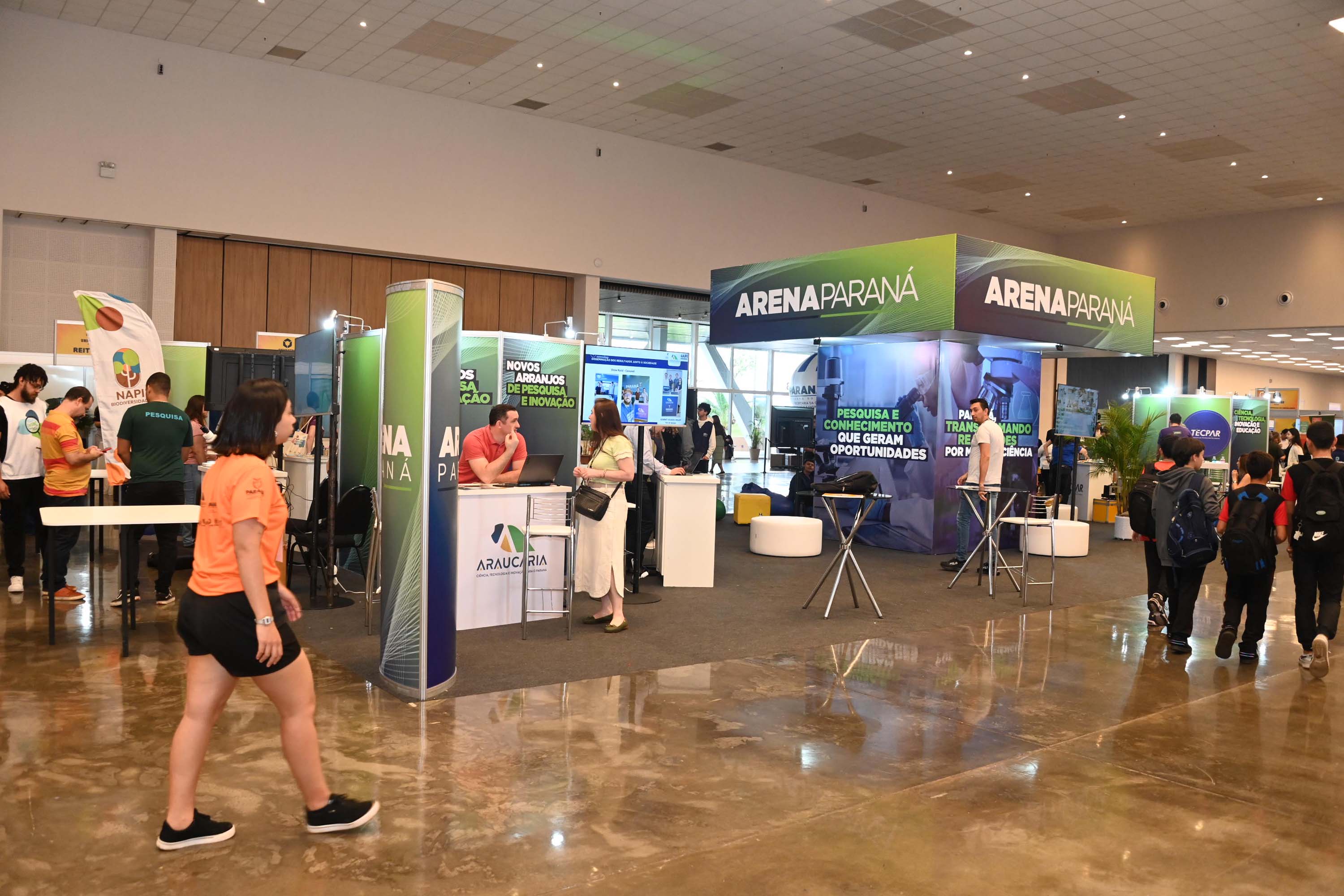 A Fundação Araucária marca presença com Novos Arranjos de Pesquisa e Inovação (NAPIs), que traduzem o potencial científico do Paraná em diferentes áreas. Os visitantes encontram projetos sobre energia limpa, clima, biodiversidade, reflorestamento, segurança alimentar, hidrogênio verde, eletrônica orgânica, erva-mate e até abelhas, entre outros.