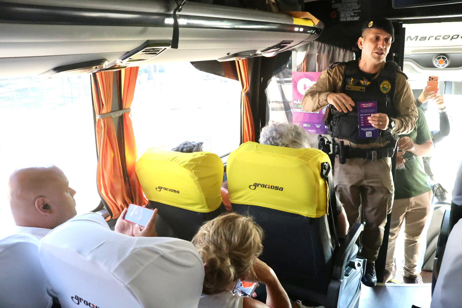 Com a proximidade do Carnaval, o Programa Mulher Segura, iniciativa da Secretaria da Segurança Pública do Paraná (Sesp), iniciou nesta quarta-feira (11) uma ação especial de conscientização na Rodoferroviária de Curitiba, em parceria com a Viação Graciosa, empresa responsável pelo transporte rodoviário entre Curitiba e o litoral do Paraná. A mobilização segue até a próxima quarta-feira (18), contemplando passageiros na ida e na volta do litoral.