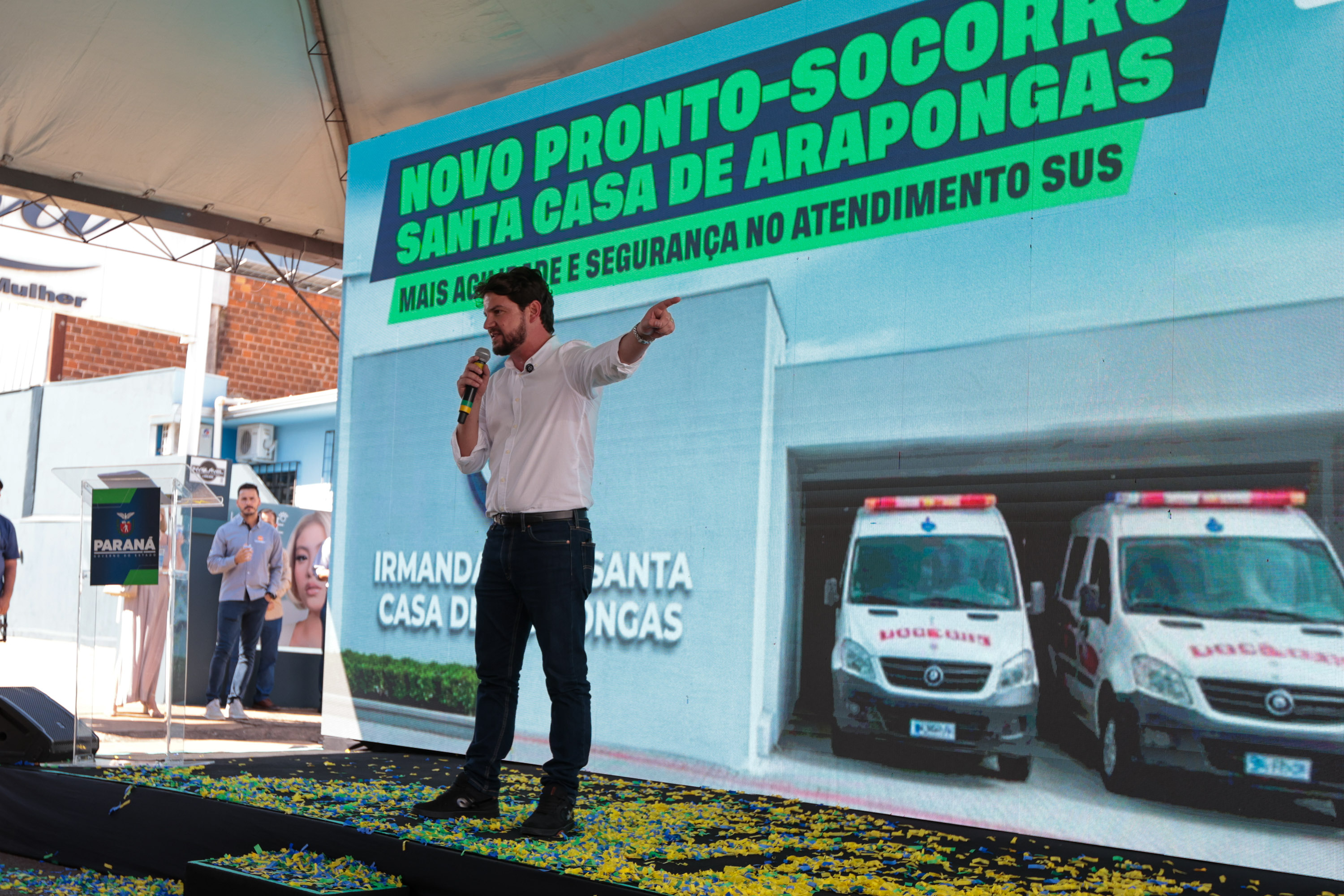 MAIS INVESTIMENTO – Durante o evento, foi anunciado pelo um investimento de R$ 15 milhões para a ampliação da Santa Casa de Arapongas, com a construção de uma nova maternidade. O projeto foi aprovado pela Sesa e deve ser encaminhado, nos próximos meses, para a assinatura do convênio. “Vamos escrever uma nova história para esse hospital, com o apoio do município, que faz repasses anuais para o funcionamento do serviço. Para mim, pessoalmente, é muito emocionante entregar investimentos para esse hospital, porque passei quase seis anos no plantão de sábado à noite”, contou Beto Preto.