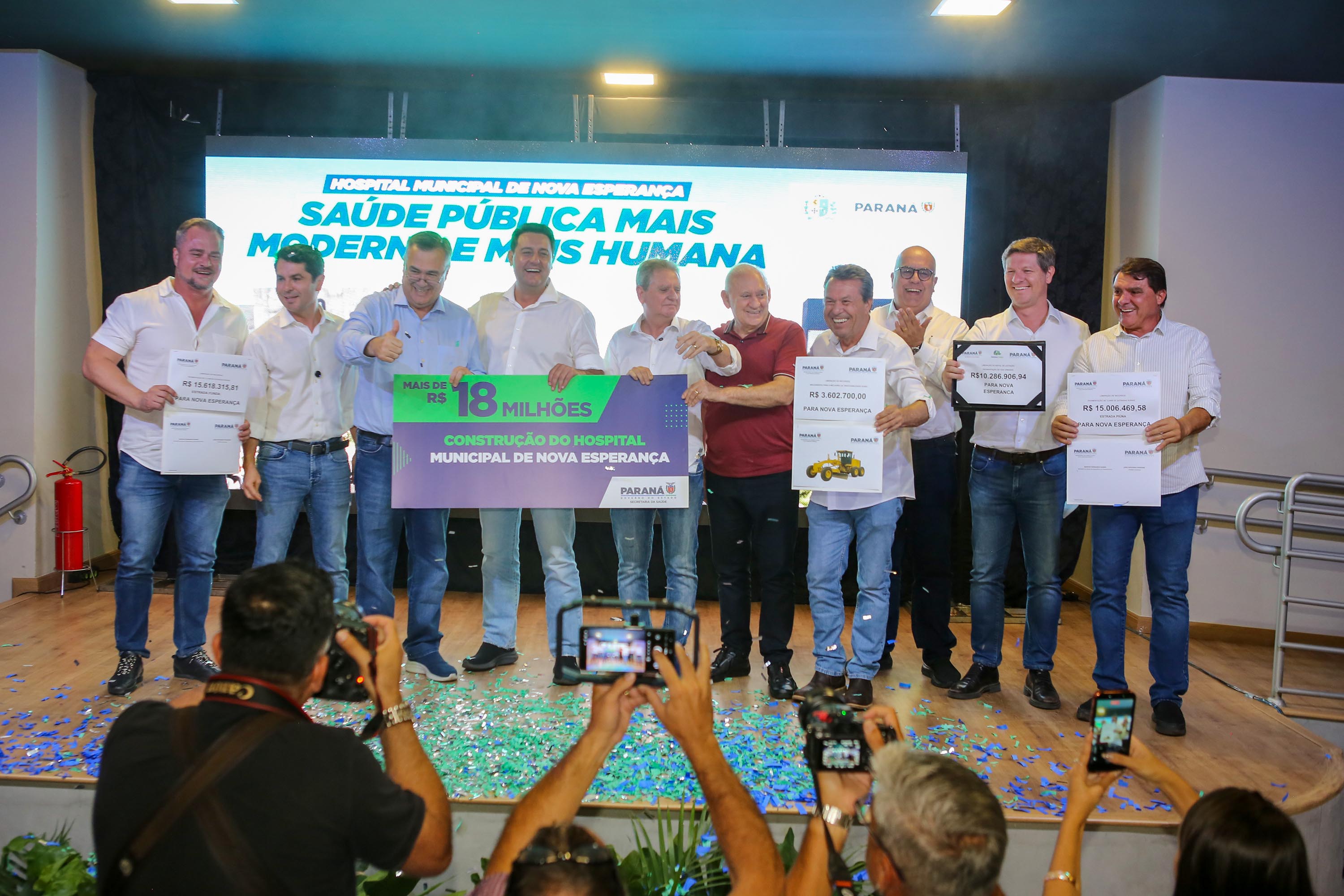 O Governo do Paraná vai investir R$ 30,6 milhões para pavimentação de duas estradas rurais de Nova Esperança, no Noroeste do Estado. O governador Carlos Massa Ratinho Junior autorizou nesta quarta-feira (04) que a prefeitura inicie o processo de licitação para que 12,6 quilômetros da Estrada Piúna e 12,1 quilômetros da Estrada Funda sejam pavimentados em concreto. No mesmo evento, também foi anunciada a construção do novo hospital municipal.