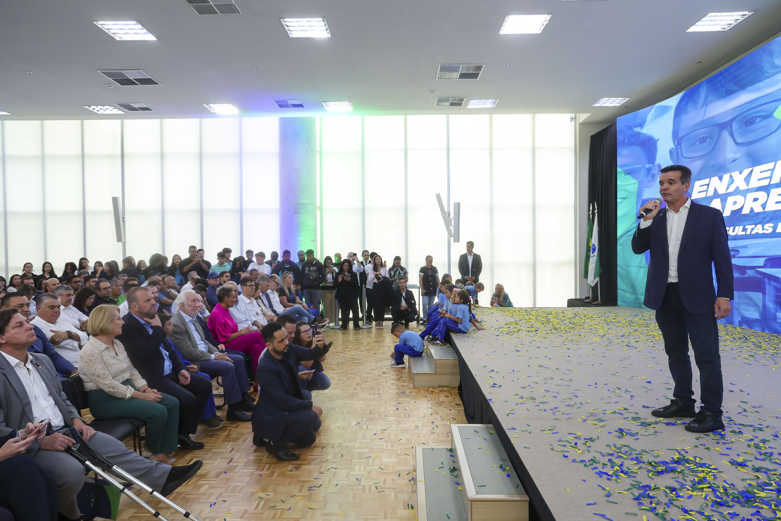 PRESENÇAS – Participaram do evento os secretários estaduais Alex Canziani (Inovação e Inteligência Artificial) e Luizão Goulart (Administração e Previdência); o secretário do Codesul pelo Paraná, Orlando Pessuti; o presidente da Assembleia Legislativa, deputado estadual Alexandre Curi; os deputados estaduais Cloara Pinheiro, Anibelli Neto, Adão Litro, Luiz Cláudio Romanelli, Maria Victoria, Márcia Huçulak e Luís Corti; o fundador da ONG Renovatio, Ralf Toenjes; a presidente da Associação Paranaense de Oftalmologia, Heloisa Helena Abil Russ Giacometti; prefeitos e demais autoridades.