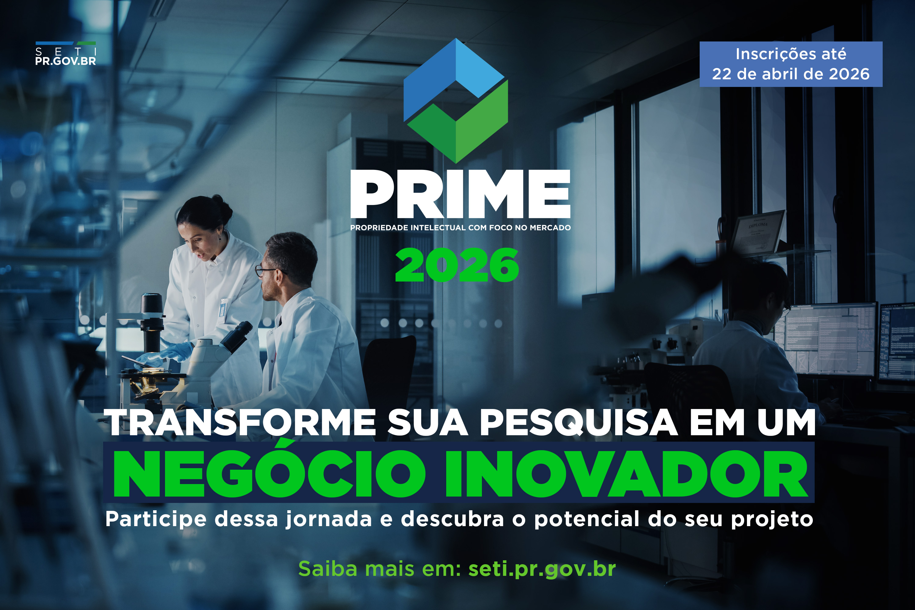 Coordenado pela Secretaria da Ciência, Tecnologia e Ensino Superior (Seti), o Prime é voltado para professores e estudantes de pós-graduação de instituições públicas e privadas que desenvolvem pesquisas com potencial de mercado, incluindo produtos, serviços e a melhoria de processos. O programa conta com a parceria da Fundação Araucária e do Serviço de Apoio às Micro e Pequenas Empresas do Paraná (Sebrae/PR).