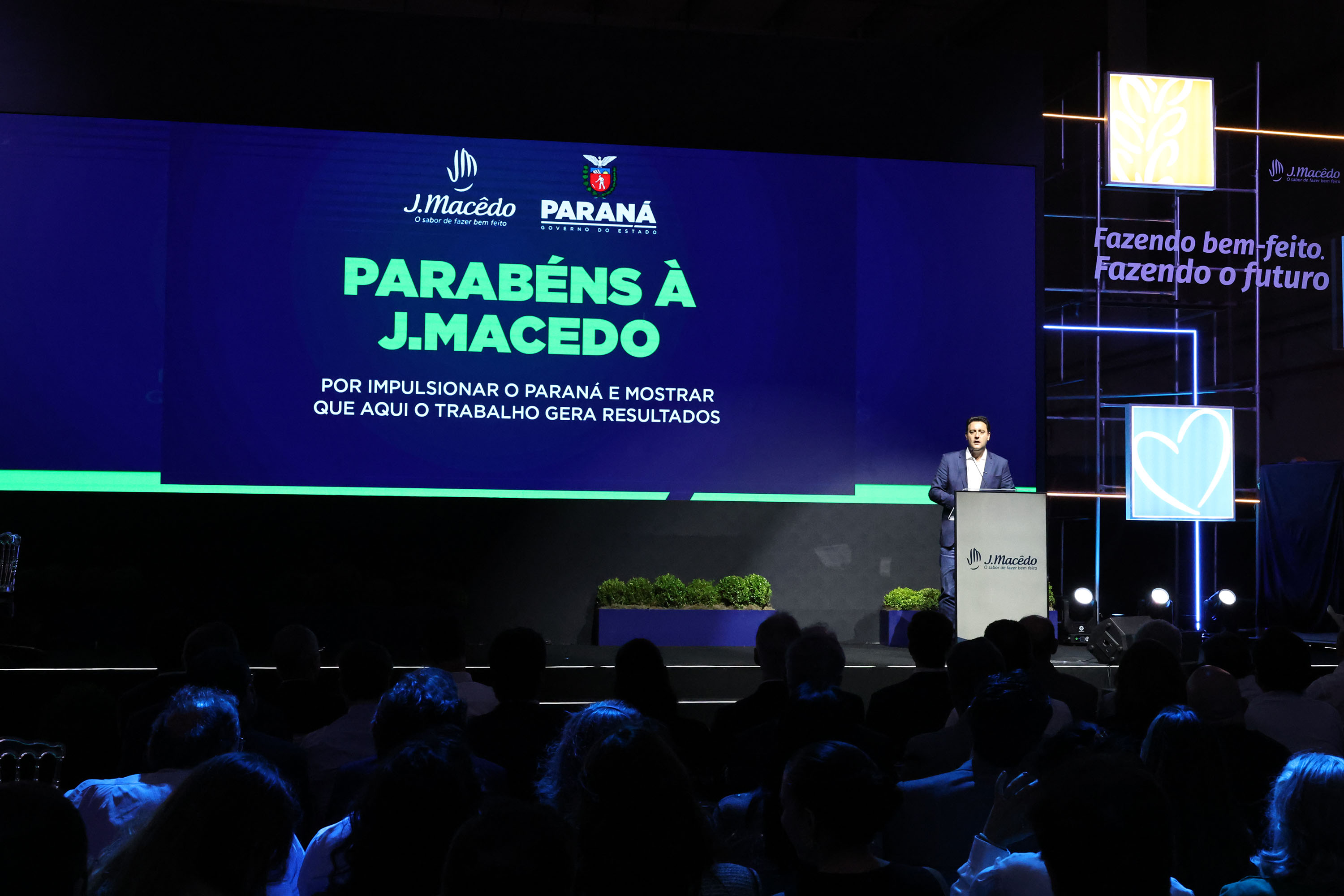 Ratinho Junior destacou o bom momento da economia paranaense com grandes empreendimentos se instalando no Paraná. “Isso é motivo de muita alegria porque nós fizemos três inaugurações de novas indústrias só hoje. A primeira foi em Pato Branco, uma esmagadora de soja. Depois, em São Jorge do Oeste, com uma fábrica de queijo e derivados de leite, e agora a J. Macêdo, inaugurando essa planta e consolidando cada vez mais Londrina com o seu parque industrial, gerando muito emprego para a cidade e também para quem mora na região”, afirmou.