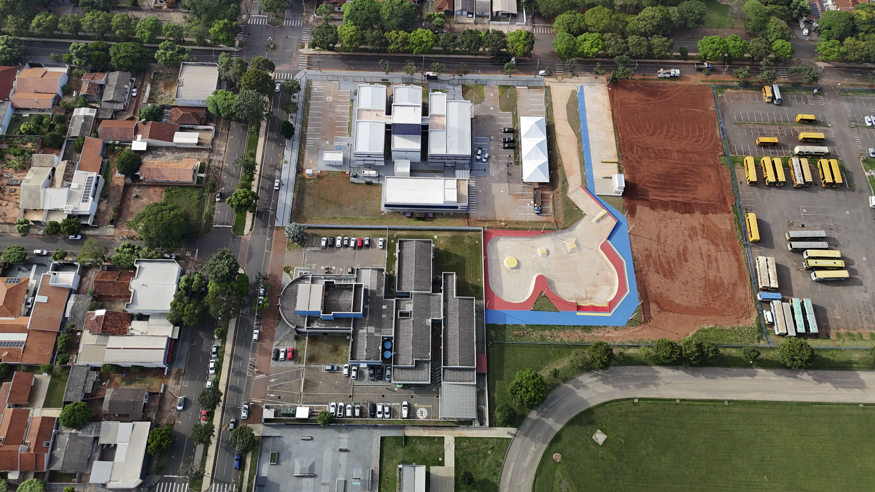 O projeto segue padrões modernos de arquitetura escolar, incluindo laboratórios, biblioteca, quadra poliesportiva coberta e espaços de convivência, garantindo ambientes ideais para o ensino-aprendizagem.