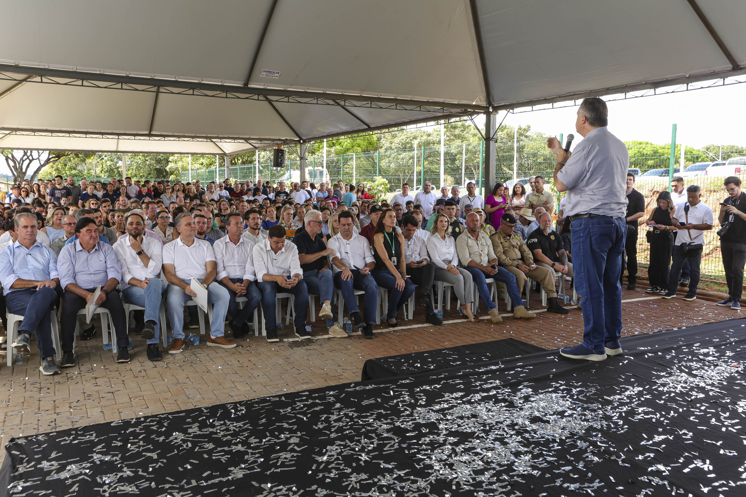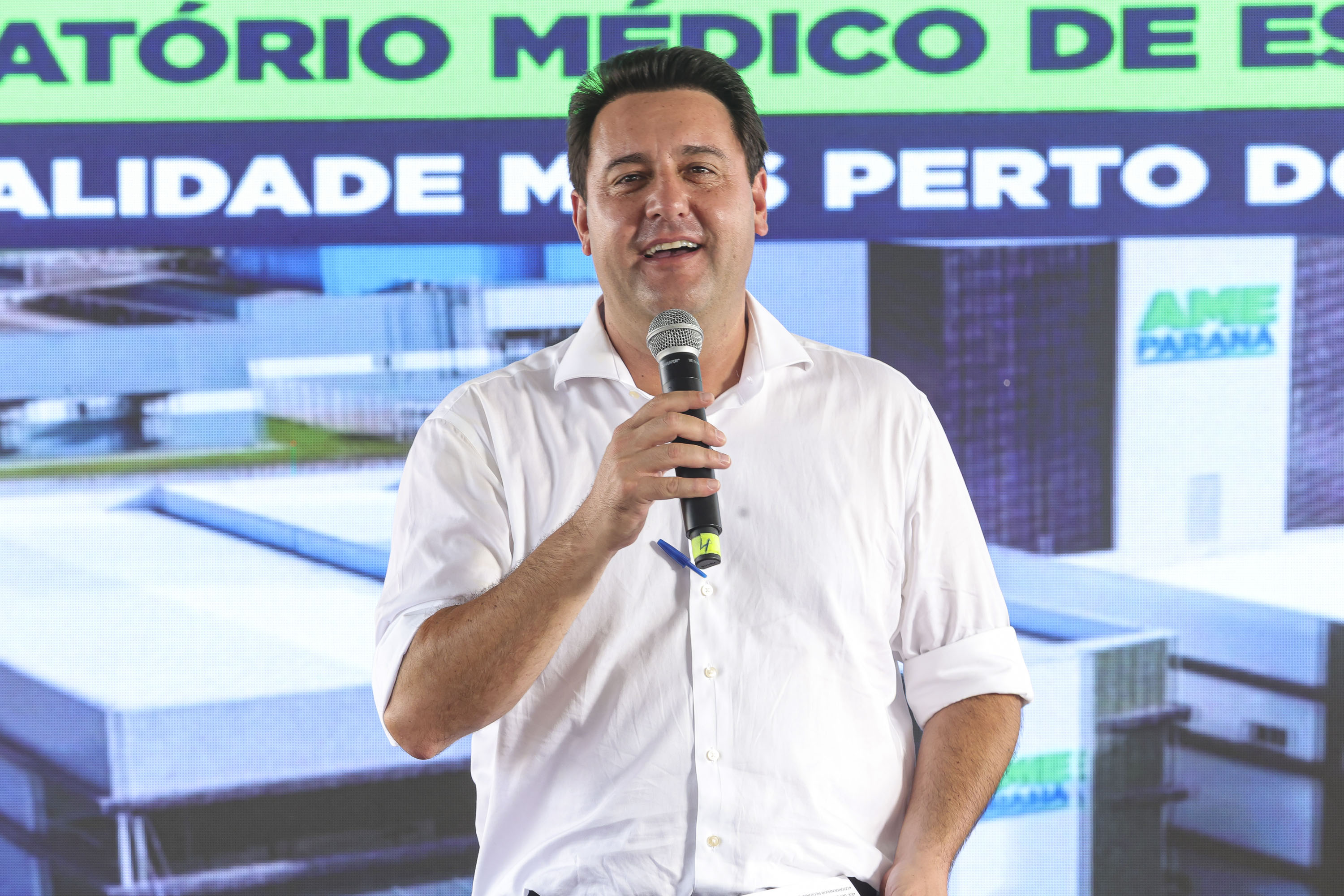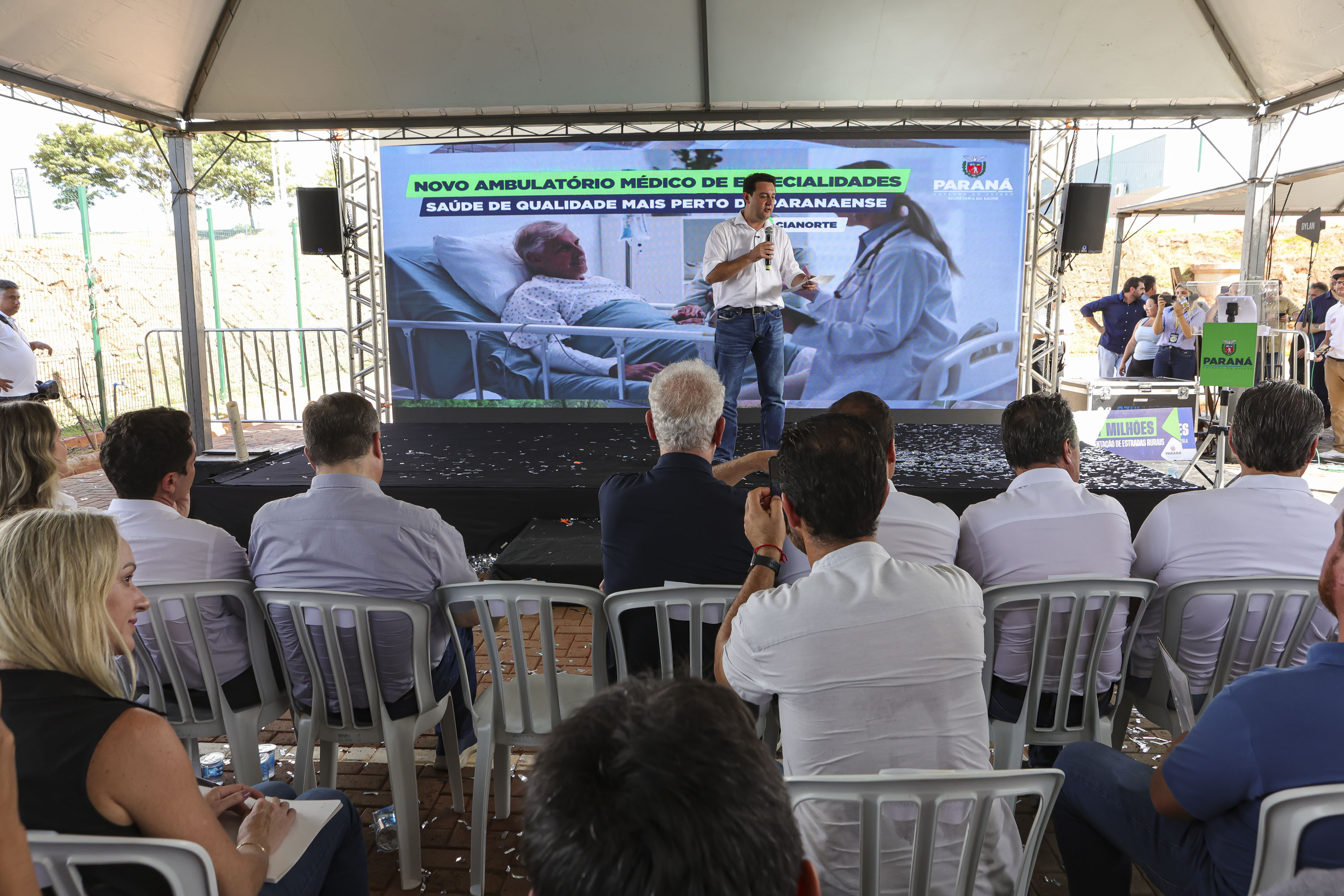 PRESENÇAS — Acompanharam a entrega do AME também o secretário da Agricultura e do Abastecimento, Márcio Nunes; o secretário da Infraestrutura e Logística, Sandro Alex; o secretário da Segurança Pública, Coronel Hudson; o secretário do Planejamento, Ulisses Maia; o secretário do Trabalho, Qualificação e Renda Do Carmo; o presidente da Alep, deputado Alexandre Curi; o deputado estadual Soldado Adriano José; o prefeito de Cianorte, Marco Franzato; além de prefeitos da região e outras autoridades.
