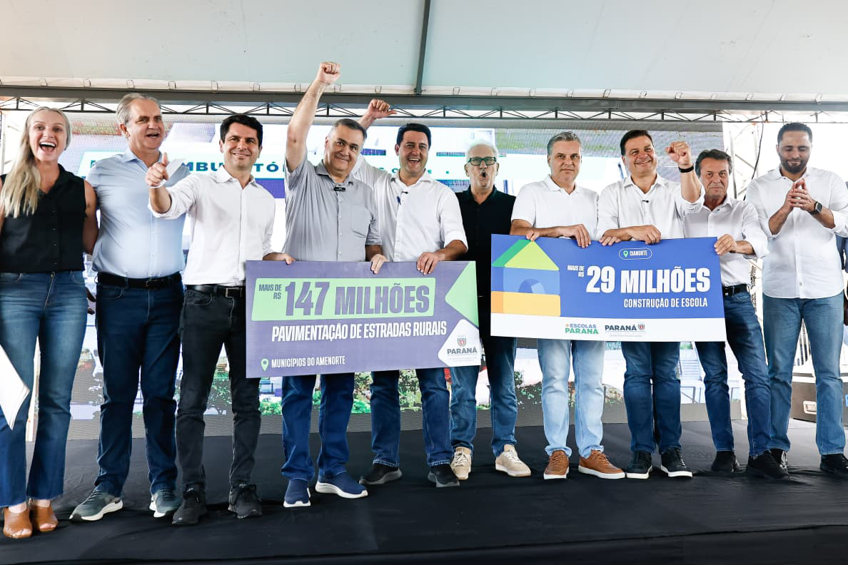 ESTRADA — O evento teve ainda o anúncio do investimento de R$ 17 milhões na pavimentação asfáltica da estrada velha Maringá, em Jussara, por meio da Secretaria de Infraestrutura e Logística (Seil). Além de mais R$ 147 milhões para estradas rurais para os municípios da Amenorte (Associação dos Municípios do Médio Noroeste do Paraná), cuja sede é em Cianorte, com recursos da Secretaria da Agricultura e do Abastecimento.