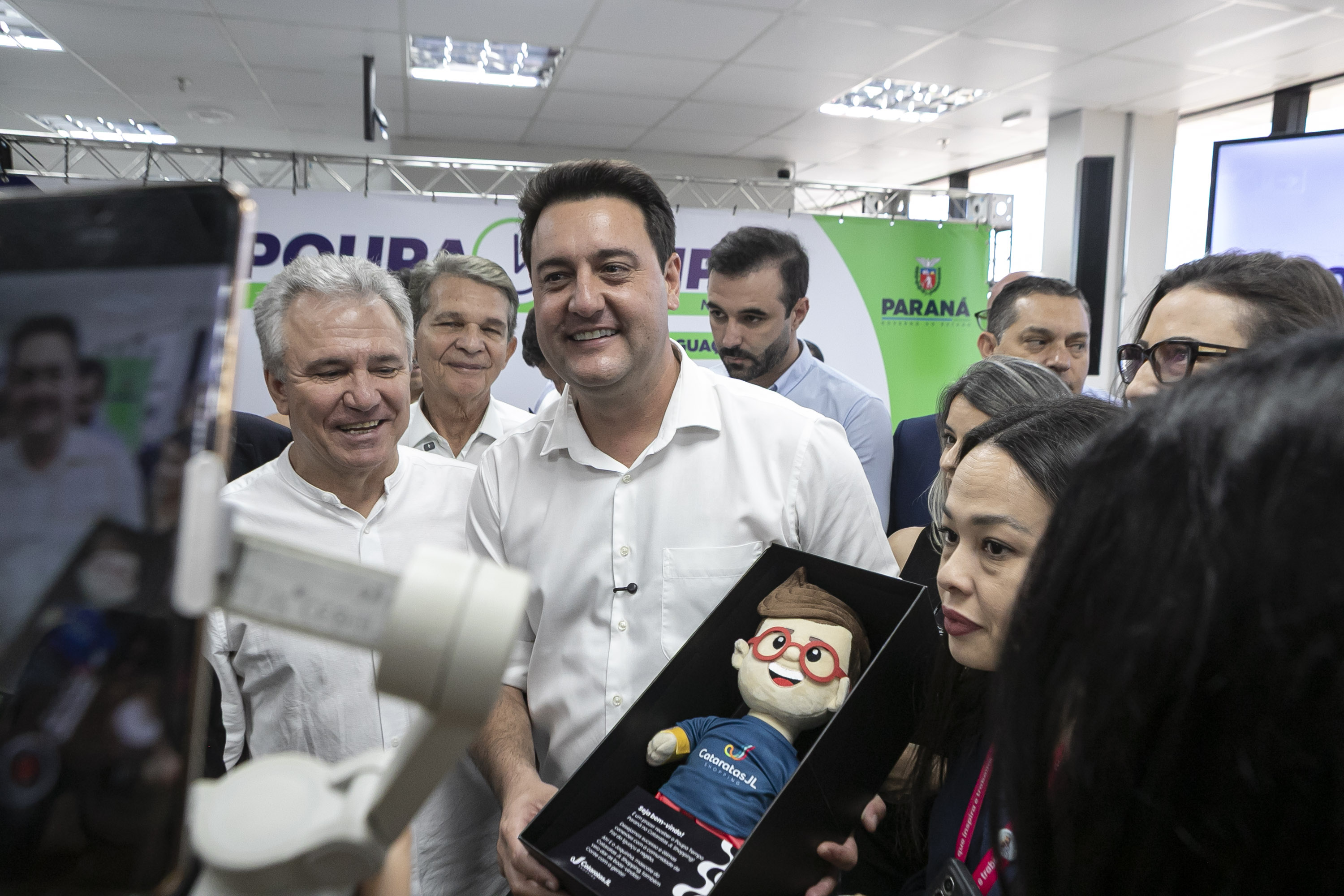 PRESENÇAS – Também participaram o secretário de Infraestrutura, Sandro Alex; o secretário do Turismo, Leonaldo Paranhos; o diretor-presidente do DER/PR, Fernando Furiatti; o chefe de gabinete da Superintendência de Governança de Serviços e Dados, Rogério Mendes; o vice-prefeito de Foz do Iguaçu, Ricardinho; o presidente da Câmara de Foz do Iguaçu, Paulo Debrito; o diretor comercial da CIX, Alê Coutinho; a gerente da unidade, Iara Karolini Campos; o representante do Cataratas JL Shopping, Renata Félix; e os prefeitos Renato Silva (Cascavel) e Mario César Costenaro (Toledo).