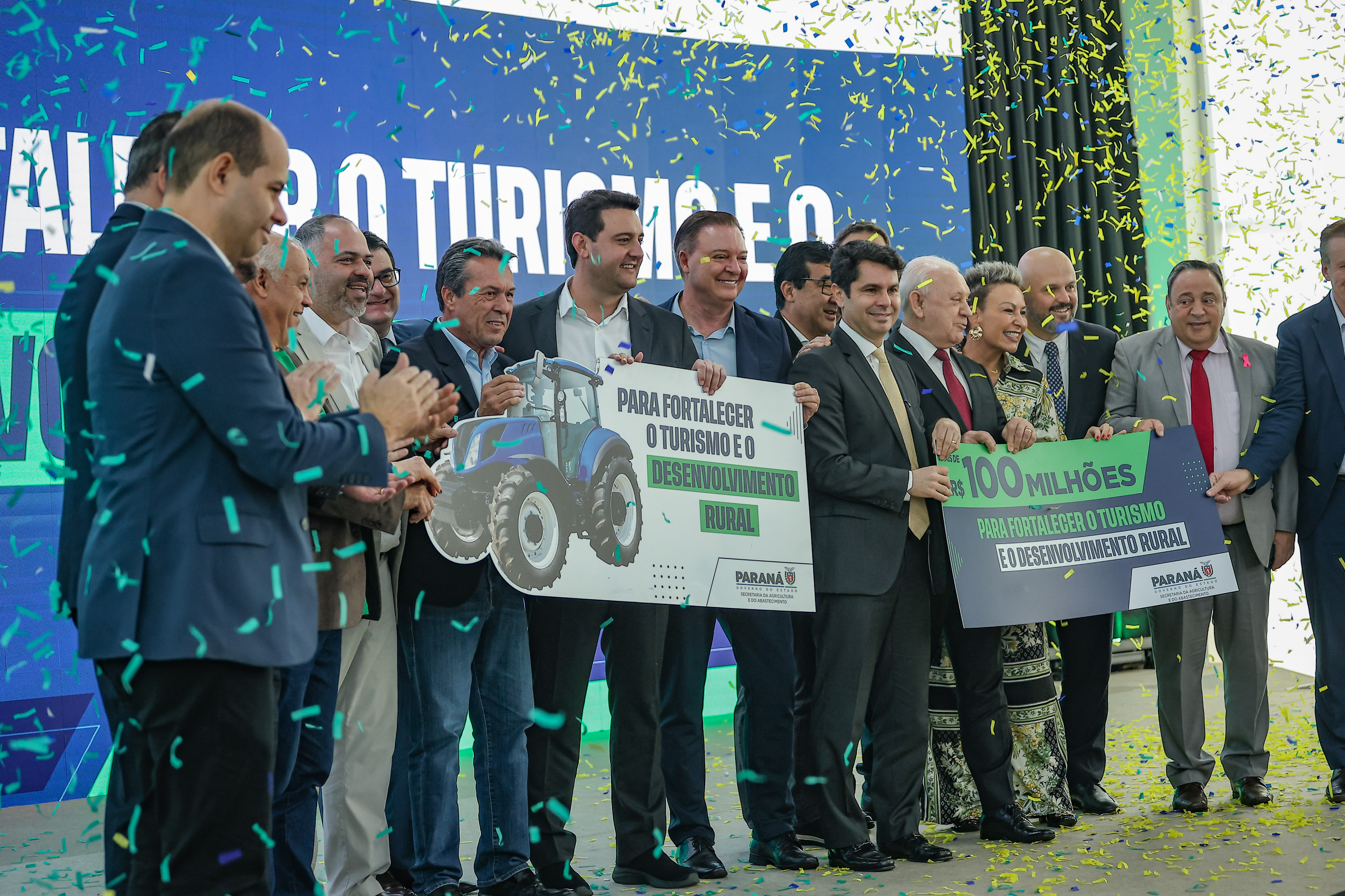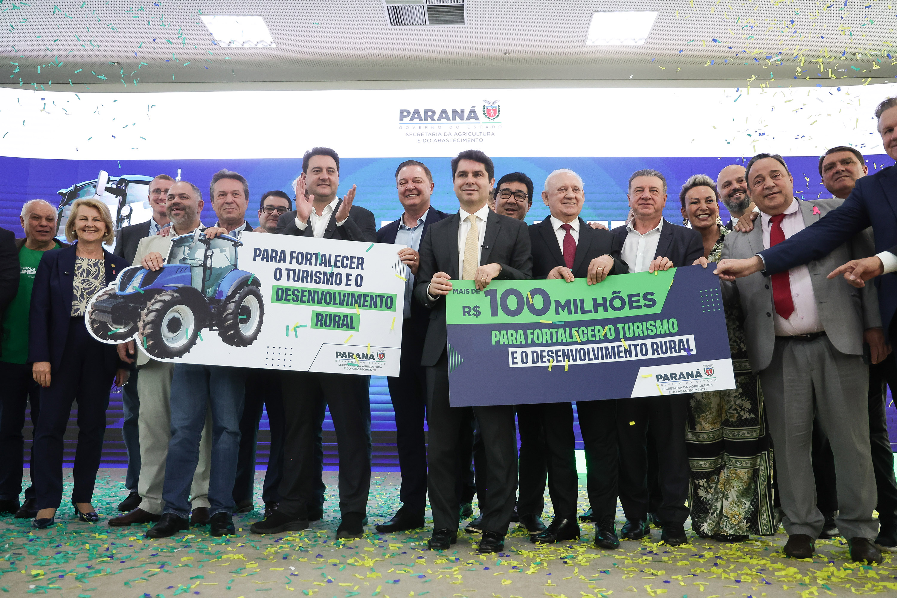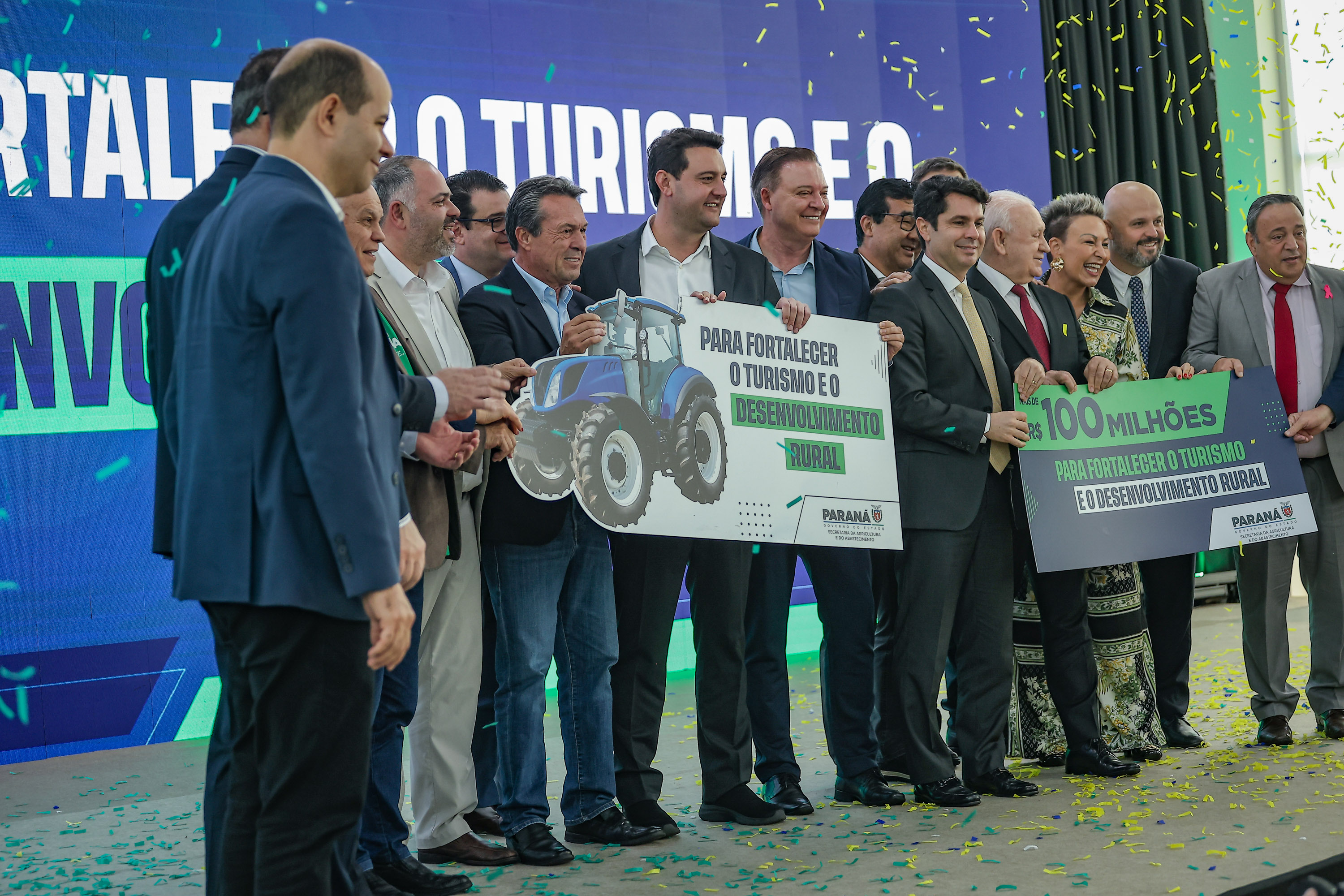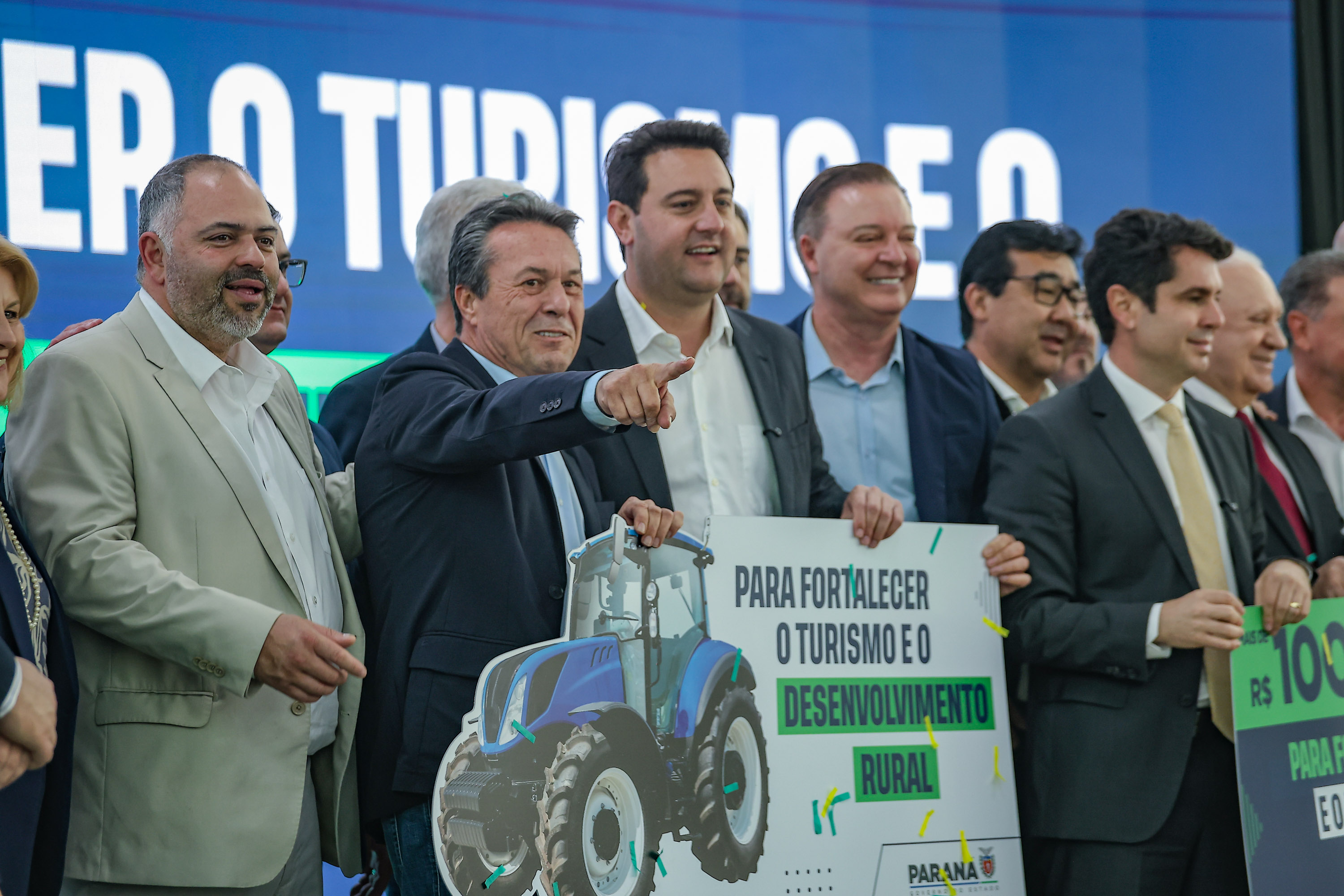 PRESENÇAS –Participaram do evento os secretários estaduais João Carlos Ortega (Casa Civil), Norberto Ortigara (Fazenda), Roni Miranda (Educação), Luizão Goulart (Administração e Previdência) e César Neves (Saúde - em exercício); o subchefe da Casa Civil, Lúcio Mauro Tasso; os diretores-presidentes do Detran-PR, Santin Roveda; do IDR-Paraná, Natalino Avance de Souza; e da Adapar, Otamir Cesar Martins; o presidente da Assembleia Legislativa, Alexandre Curi; o líder do Governo na Assembleia, Hussein Bakri; os deputados estaduais Ademar Traiano, Adão Litro, Alexandre Amaro, Alisson Wandscheer, Artagão Junior, Cloara Pinheiro, Denian Couto, Dr. Leônidas, Evandro Araújo, Fábio Oliveira, Gilberto Ribeiro, Gilson de Souza, Jairo Tamura, Luís Corti, Márcia Huçulak, Moacyr Fadel e Thiago Buhrer; o ex-governador do Paraná e secretário do Paraná no Codesul, Orlando Pessuti; prefeitos e demais autoridades.
