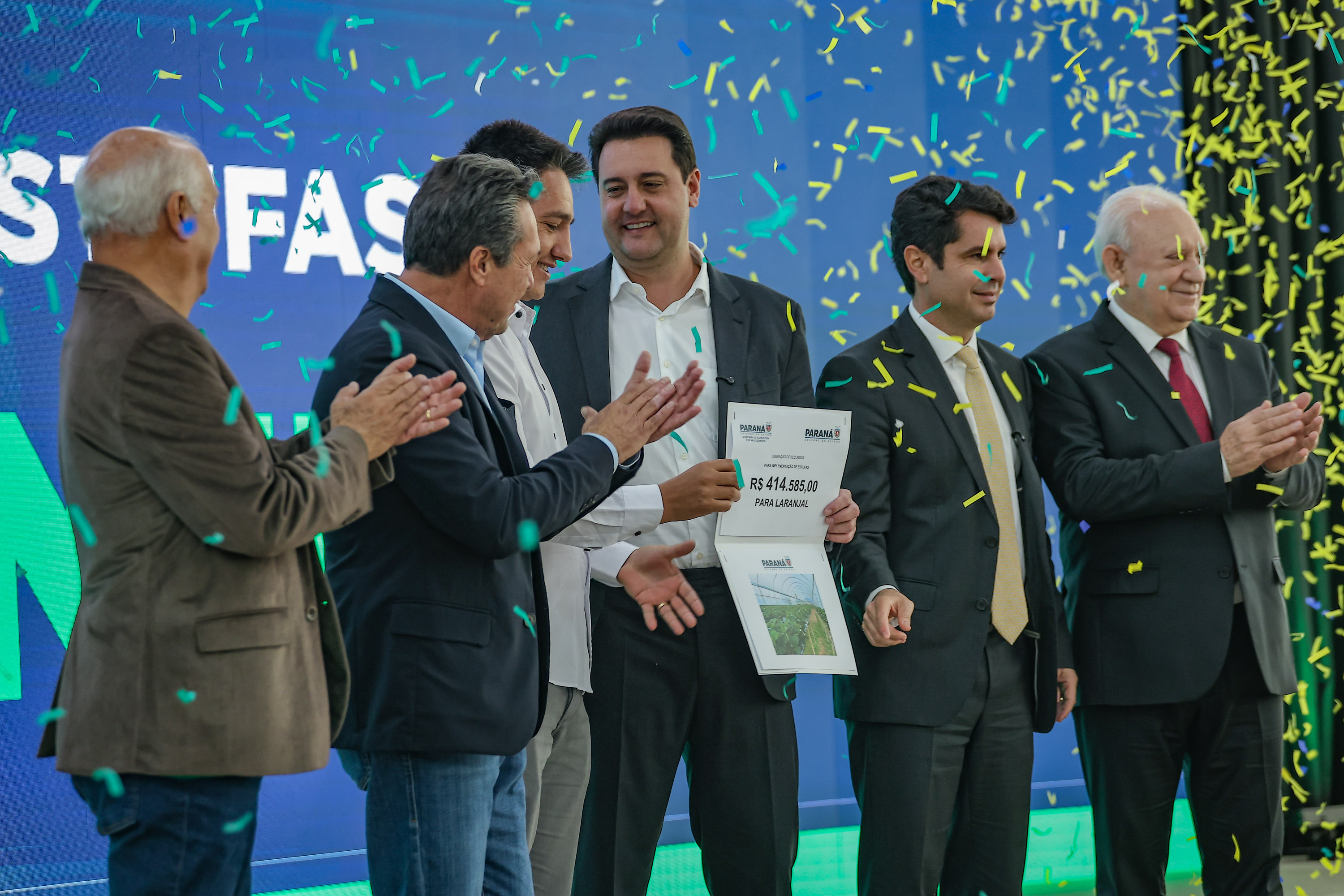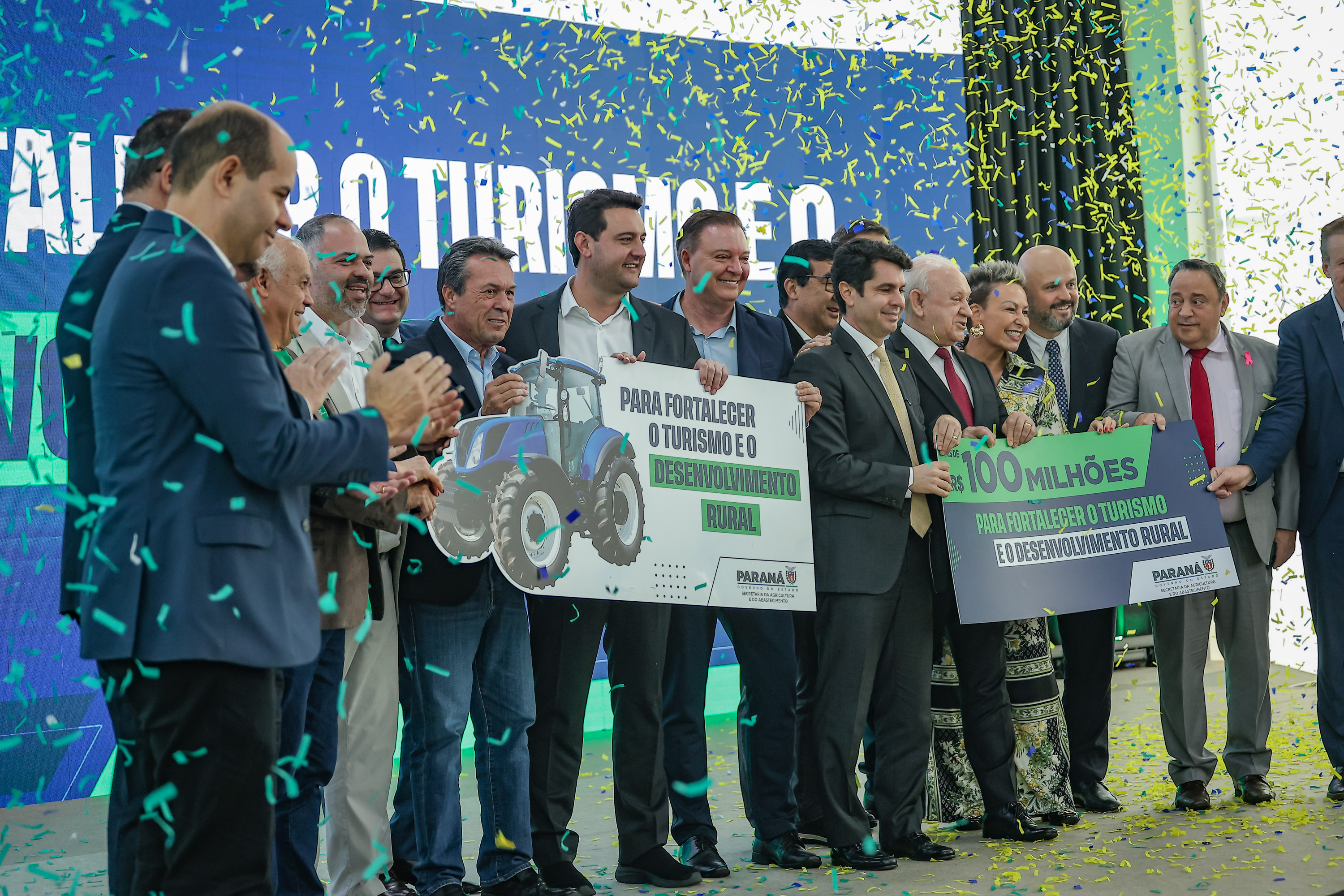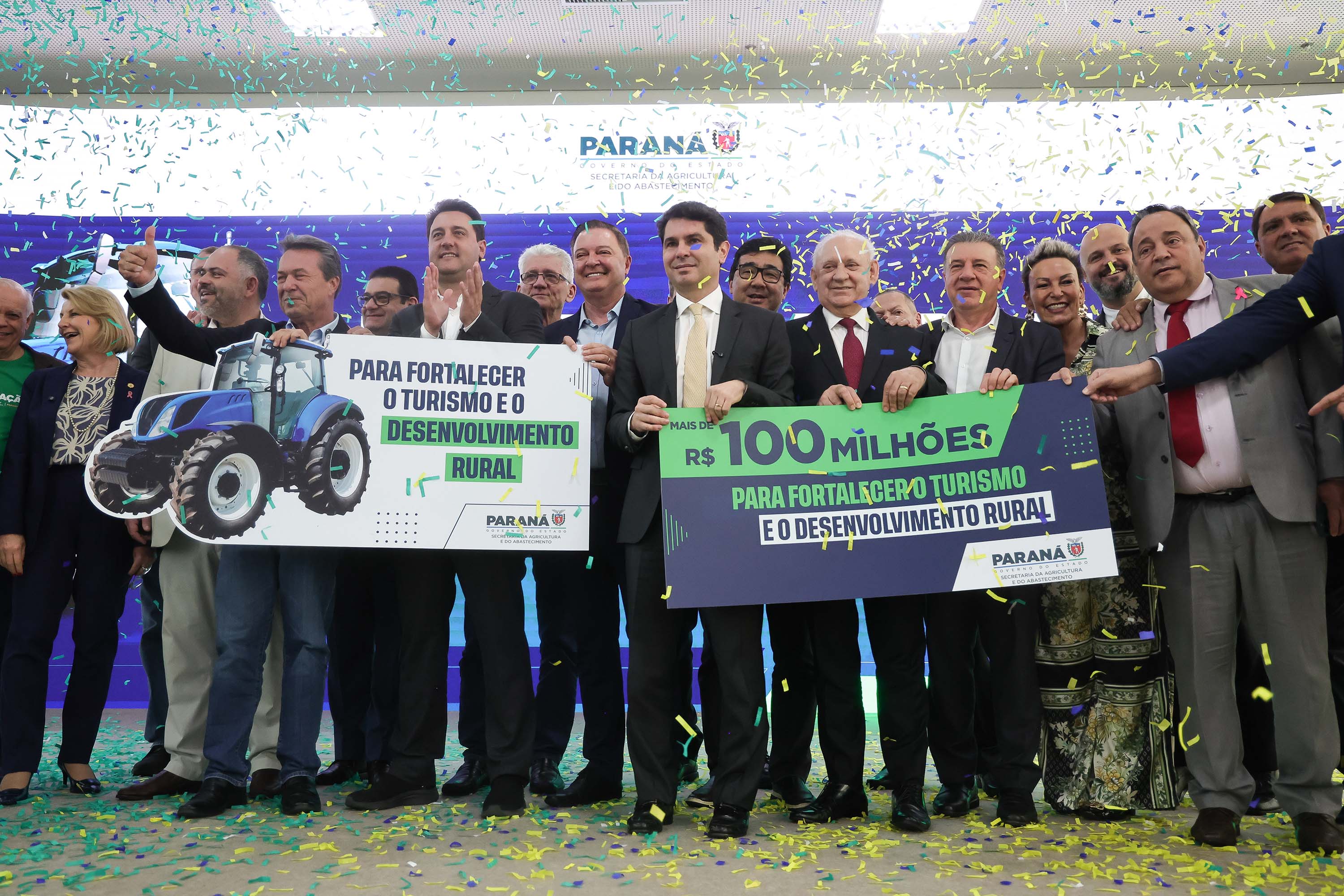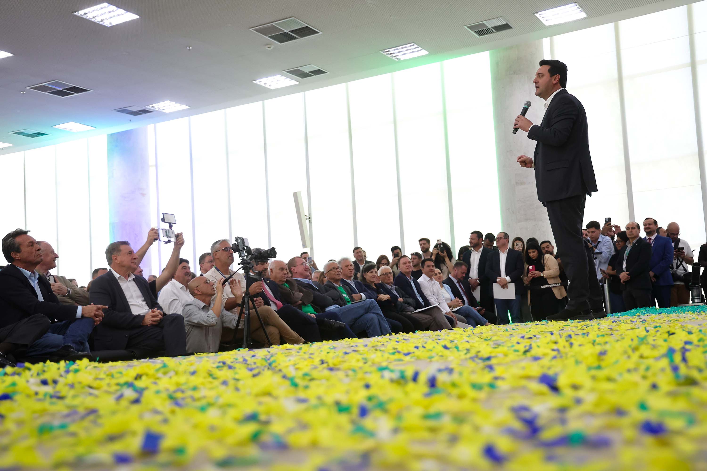 PRESENÇAS –Participaram do evento os secretários estaduais João Carlos Ortega (Casa Civil), Norberto Ortigara (Fazenda), Roni Miranda (Educação), Luizão Goulart (Administração e Previdência) e César Neves (Saúde - em exercício); o subchefe da Casa Civil, Lúcio Mauro Tasso; os diretores-presidentes do Detran-PR, Santin Roveda; do IDR-Paraná, Natalino Avance de Souza; e da Adapar, Otamir Cesar Martins; o presidente da Assembleia Legislativa, Alexandre Curi; o líder do Governo na Assembleia, Hussein Bakri; os deputados estaduais Ademar Traiano, Adão Litro, Alexandre Amaro, Alisson Wandscheer, Artagão Junior, Cloara Pinheiro, Denian Couto, Dr. Leônidas, Evandro Araújo, Fábio Oliveira, Gilberto Ribeiro, Gilson de Souza, Jairo Tamura, Luís Corti, Márcia Huçulak, Moacyr Fadel e Thiago Buhrer; o ex-governador do Paraná e secretário do Paraná no Codesul, Orlando Pessuti; prefeitos e demais autoridades.