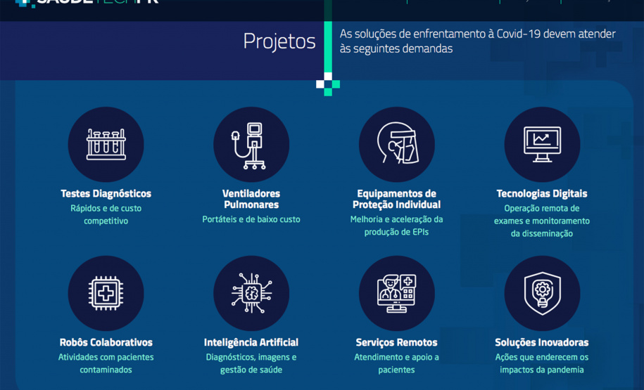INDÚSTRIAS E PROFISSIONAIS - O chamamento público recebeu propostas de empresas interessadas em acelerar ideias e soluções que já estão ambientadas em teste para ajudar a sociedade diante da pandemia. Pelo Governo do Estado, participam do processo a Superintendência de Inovação da Casa Civil, a Fundação Araucária e a Superintendência da Ciência, Tecnologia e Ensino Superior.