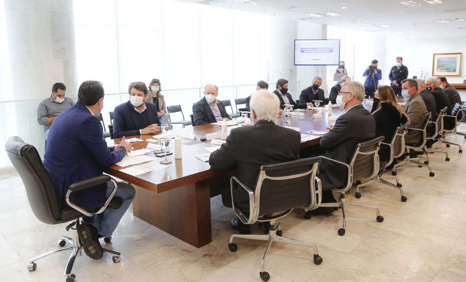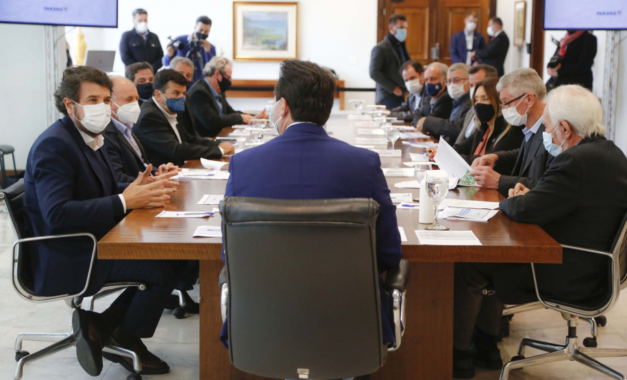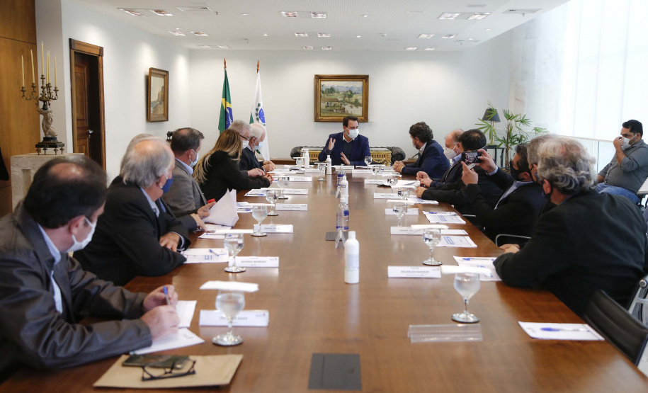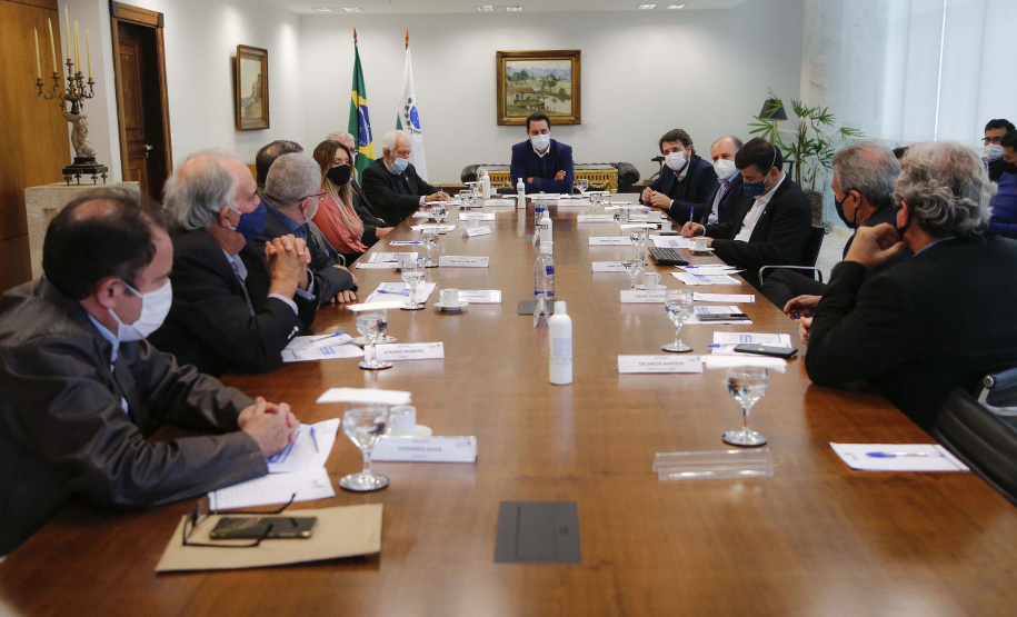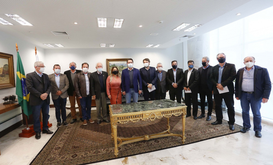 PRESENÇAS – Compareceram ao encontro o vice-governador Darci Piana; os secretários do Desenvolvimento Urbano e Obras Públicas, João Carlos Ortega, e de Agricultura e Abastecimento, Norberto Ortigara. Do setor produtivo de Londrina, estiveram presentes o presidente do Sinduscon, Sandro Nóbrega; Afrânio Brandão, diretor vice-presidente da Sociedade Rural do Paraná (SRP); Nivaldo Benvenho, diretor de comunicação da SRP; Fernando Moraes, presidente da Federação das Associações Comerciais e Empresariais do Estado do Paraná (Faciap); Fabrício Pires Bianchi, gerente da regional Norte do Sebrae/PR, Ovhanes Gava, presidente do Sindicato do Comércio Varejista de Londrina (Sincoval), Marcos Giménez, presidente do Sindicato das Indústrias Metalúrgicas, Mecânicas e de Materiais Elétricos do Norte do Paraná (Sindimetal), e Decarlos Manfrin, presidente do Clube de Engenharia e Arquitetura de Londrina (Ceal).
