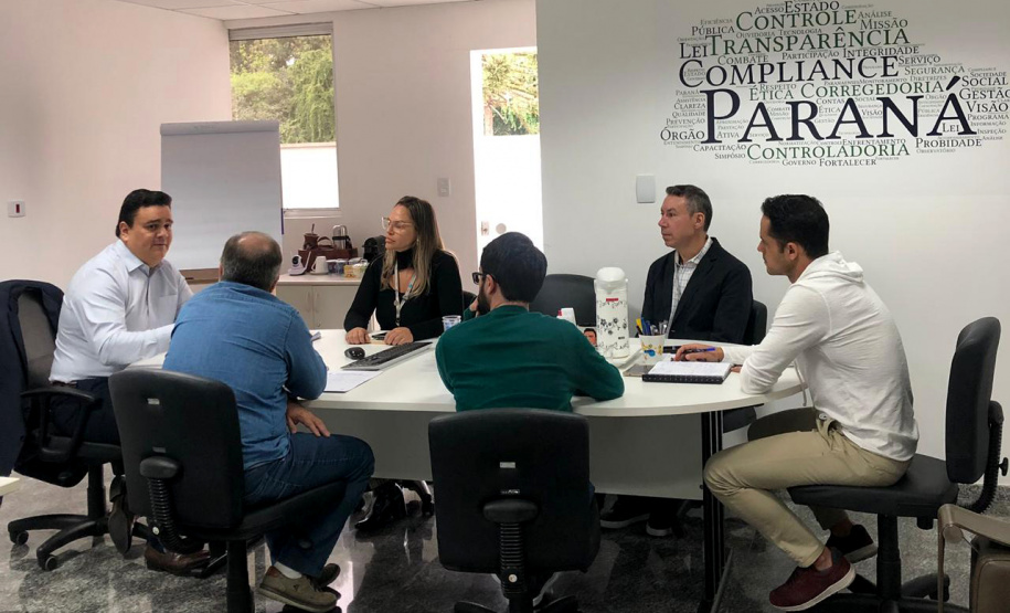 Participaram também do encontro, pela SEDU e Paranacidade, André Fusioka e Rogério Rodne Pereira; e pela Controladoria Geral do Estado, o diretor de Gestão e Inovação, Jamil Abdanur Junior, e o gerente de Projetos, Tiago Ferraz.