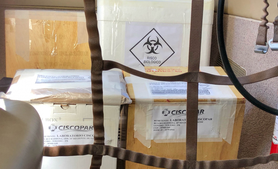 O Governo do Paraná disponibilizou nesta terça-feira (24) suas aeronaves para a Secretaria de Estado da Saúde utilizar e agilizar a confirmação dos resultados de exame para coronavírus. O primeiro voo recolheu sete caixas de amostras em duas cidades do Interior: União da Vitória, na Região Sul, e em Cascavel, no Oeste. O material será analisado pelo Laboratório Central do Estado (Lacen), em Curitiba.