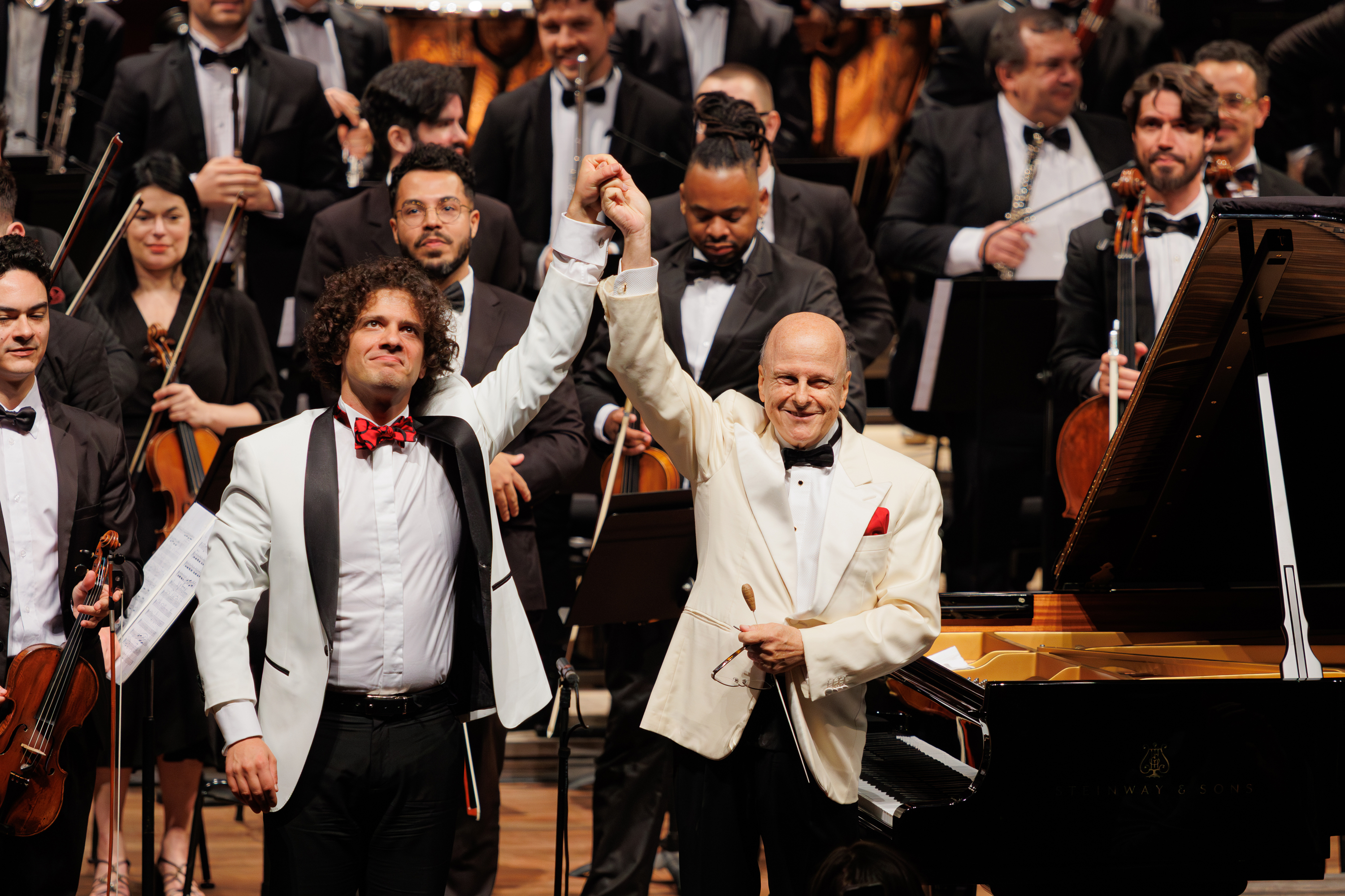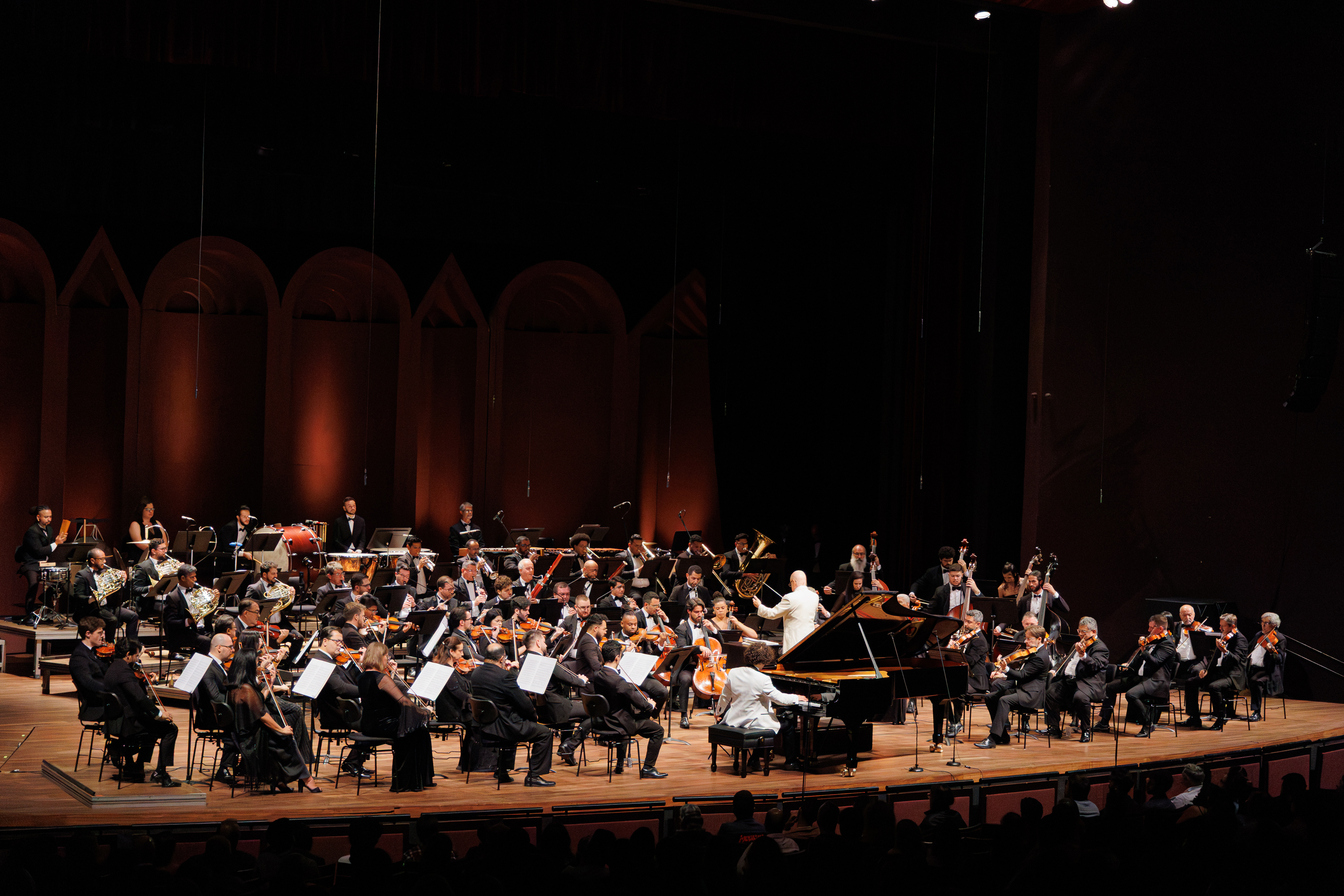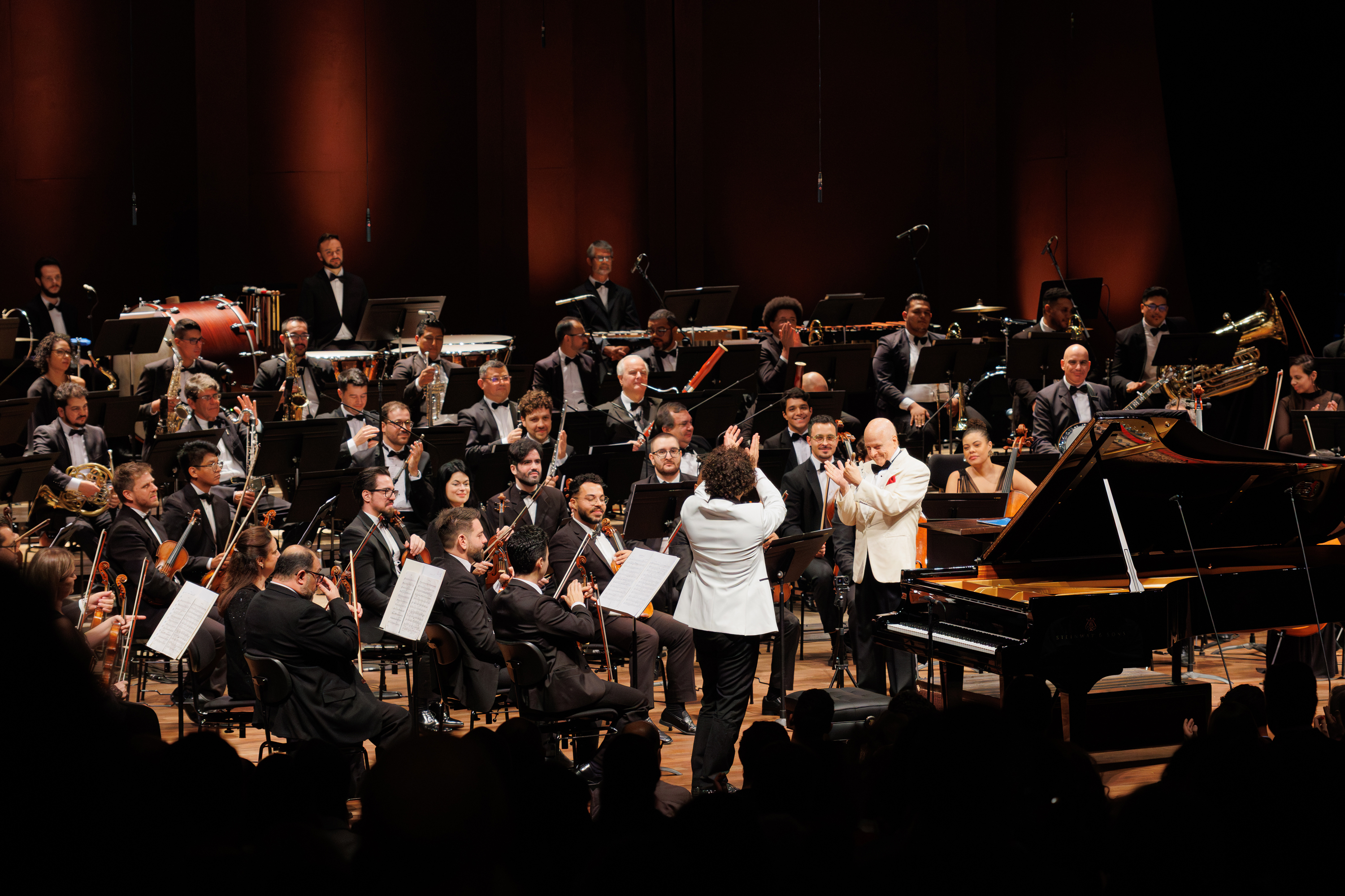 Na segunda parte do concerto, a Orquestra executou junto com o pianista convidado a famosa peça “Rhapsody in Blue”, para piano e orquestra, composta em 1924 , uma obra marcada pela fusão de ritmos sincopados de jazz com uma linguagem melódica de grande fôlego, considerada uma das mais icônicas declarações da identidade musical norte-americana. E a última peça trazida pela Orquestra foi o Concerto em Fá, composta por Gershwin em 1925, uma obra que une o jazz e a música clássica, com ritmos vibrantes e melodias inspiradas no blues.