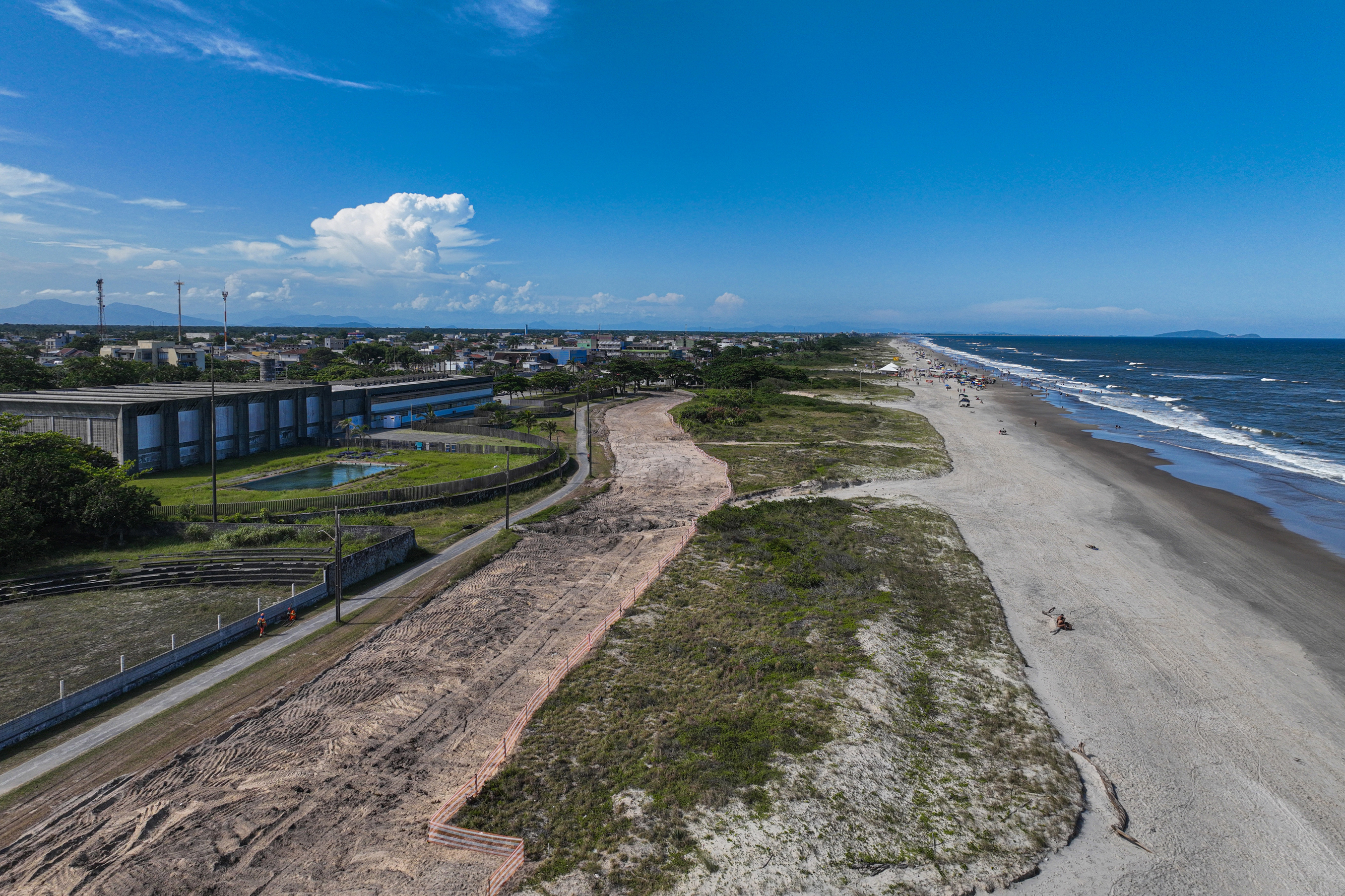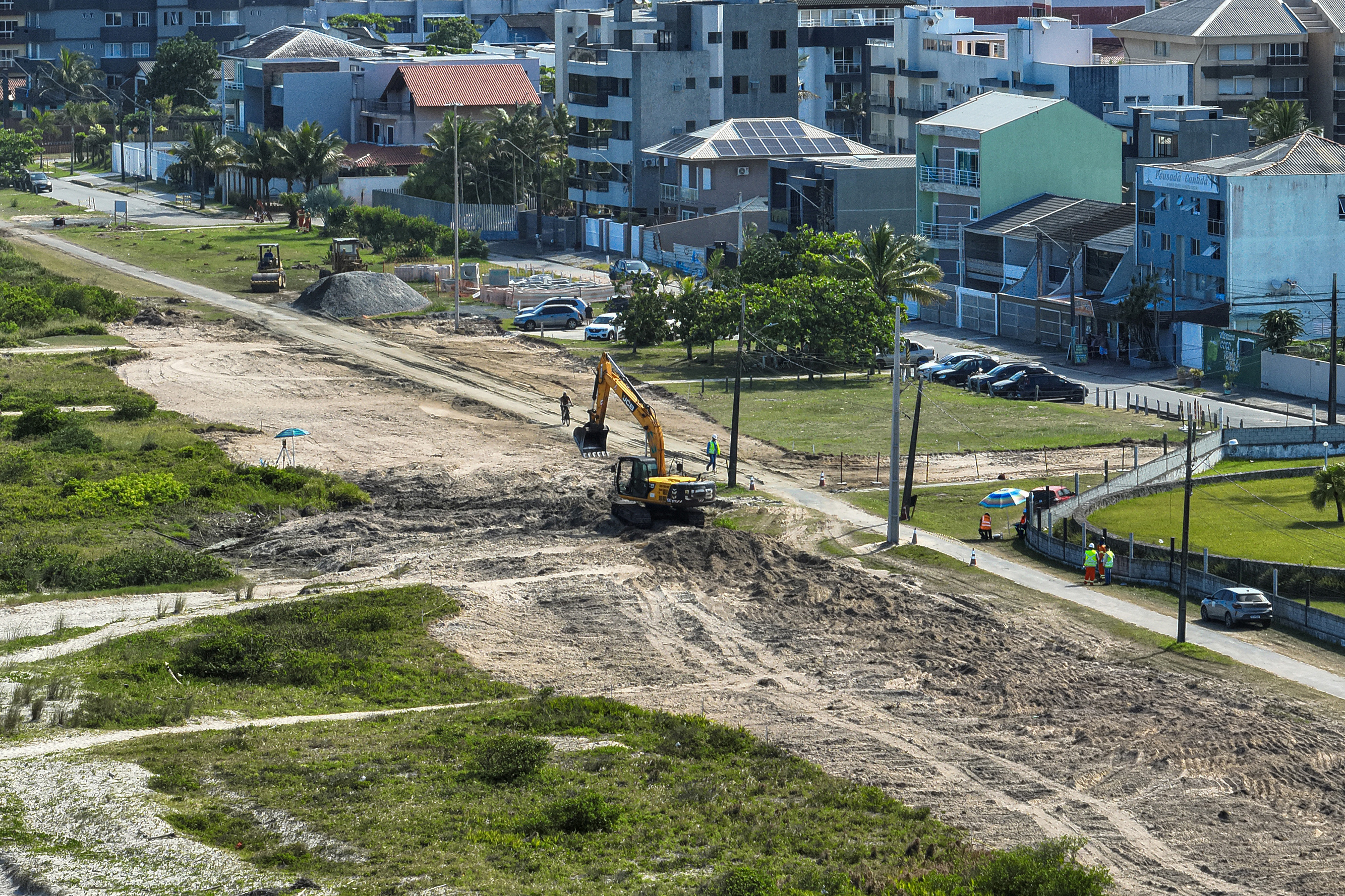 As frentes de trabalho estão concentradas no trecho entre os balneários de Canoas e Monções, na região de Praia de Leste, que corresponde à primeira fase do projeto. A etapa inicial contempla intervenções estruturantes ao longo de 3,66 quilômetros de orla, com foco em mobilidade, urbanização e preservação ambiental.
