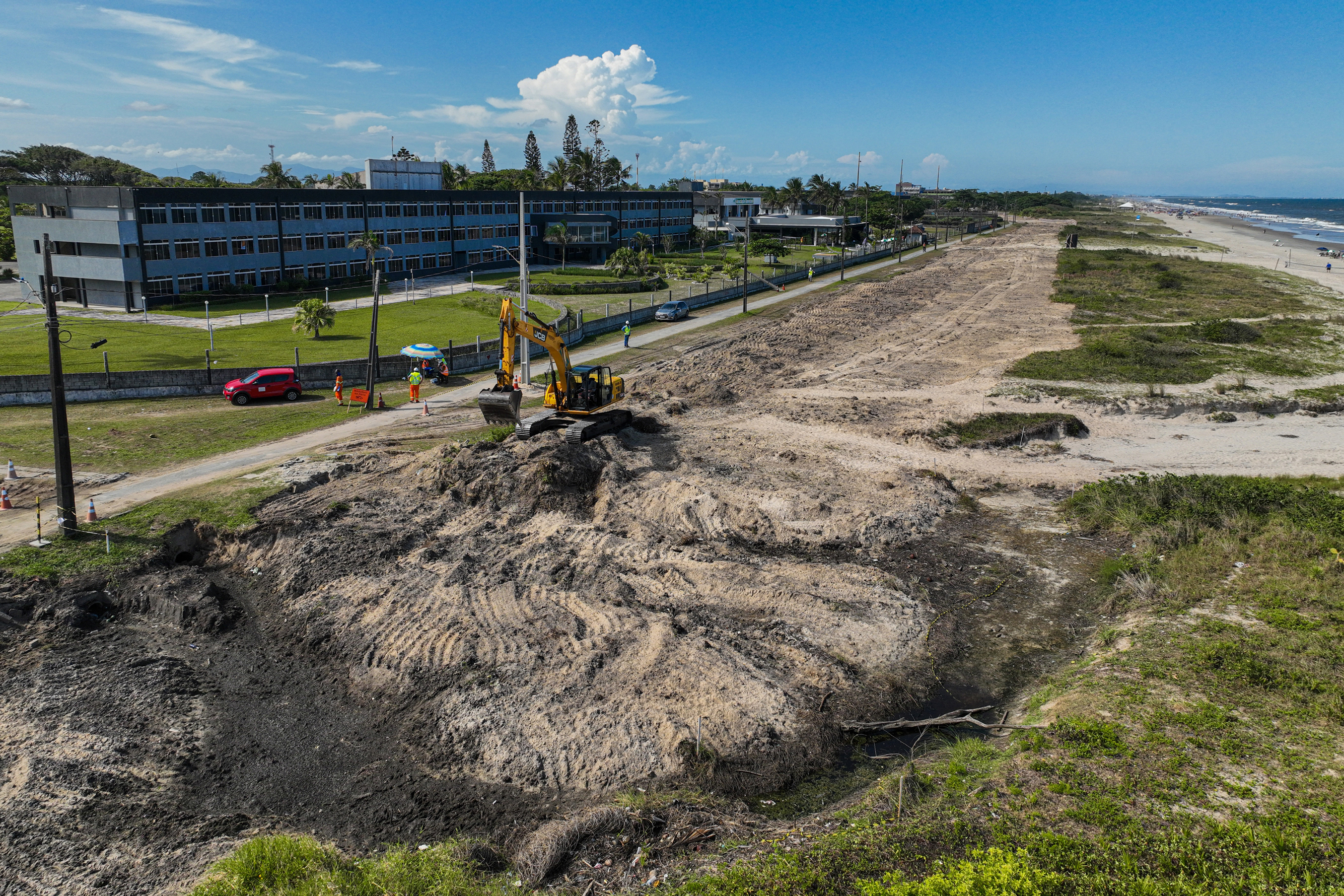 Além da drenagem, os serviços incluem terraplanagem e pavimentação, executados com atenção rigorosa aos critérios ambientais. O projeto é desenvolvido em parceria com a Prefeitura de Pontal do Paraná, com licenciamento municipal e acompanhamento do Instituto Água e Terra (IAT) e do Governo do Estado.