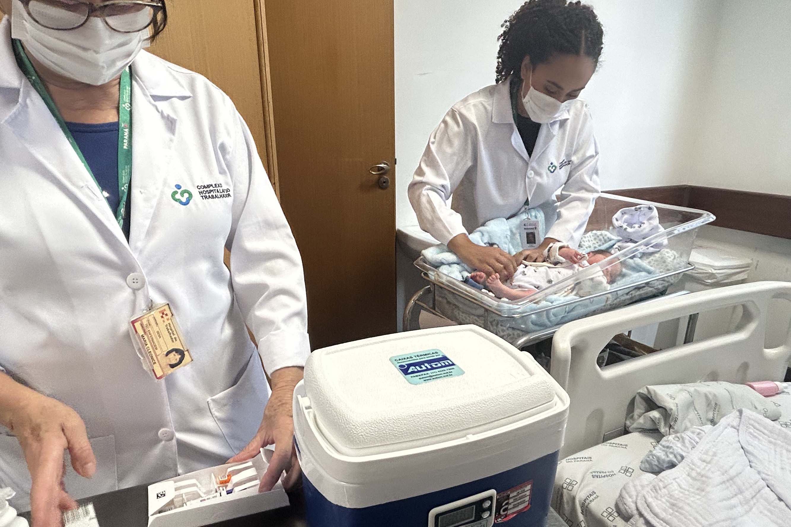 Nesta quarta-feira (04), os gêmeos Arthur e Cauã, de apenas dois dias de vida, receberam no Hospital do Trabalhador, em Curitiba, a dose única do Nirsevimabe. Os meninos estavam dentro dos critérios estabelecidos pelo Ministério da Saúde para receber medicamento.