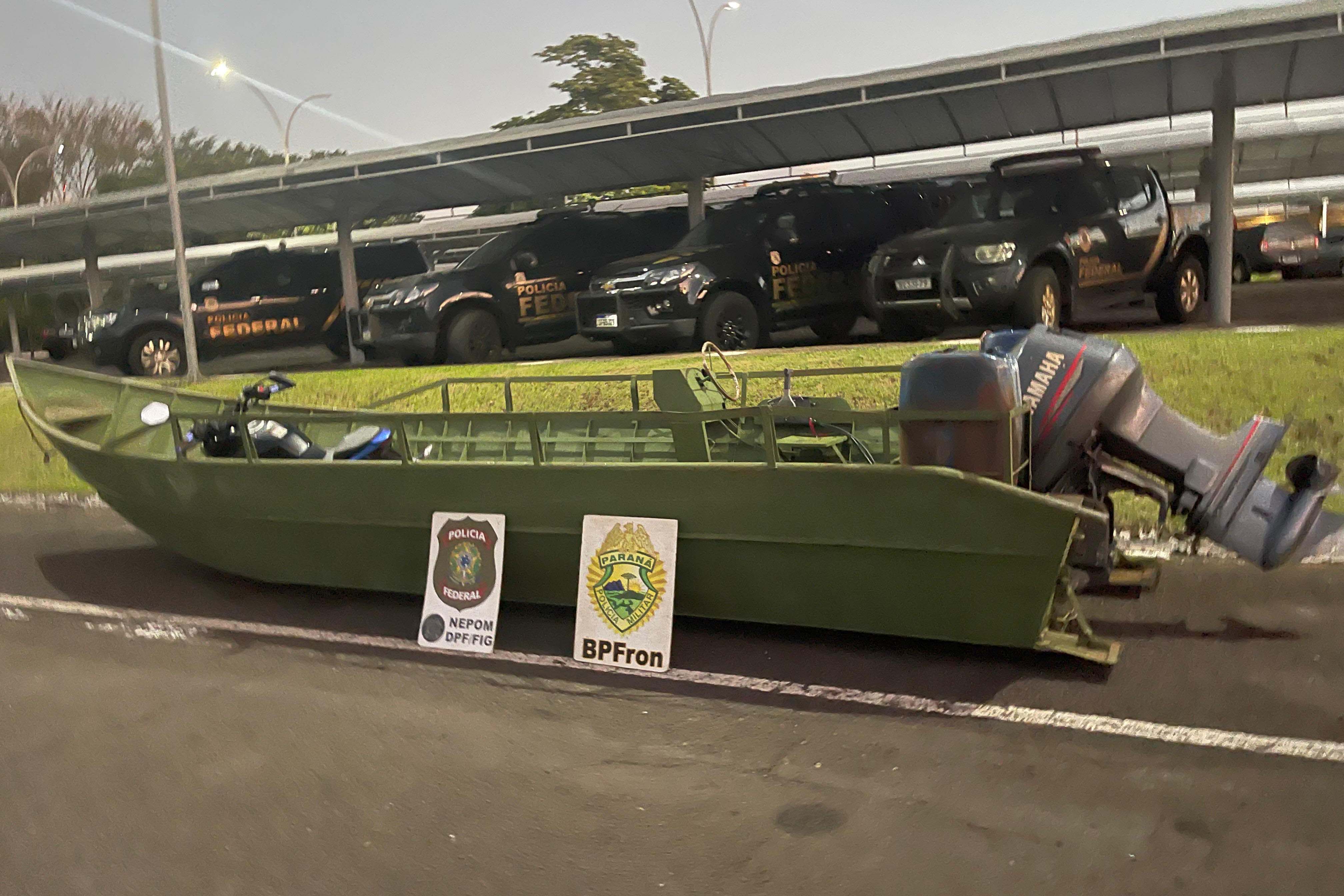 A ocorrência foi registrada durante uma operação realizada pelo Batalhão de Polícia de Fronteira (BPFRON), da Polícia Militar do Paraná (PMPR), em integração com o Núcleo Especial de Polícia Marítima da Polícia Federal (NEPOM/PF). Durante o monitoramento de rotas fluviais e terrestres utilizadas para o tráfico, as equipes localizaram uma embarcação de grande porte, do tipo “latão”, equipada com motor de popa Yamaha de 115 hp, avaliado em cerca de R$ 95 mil.