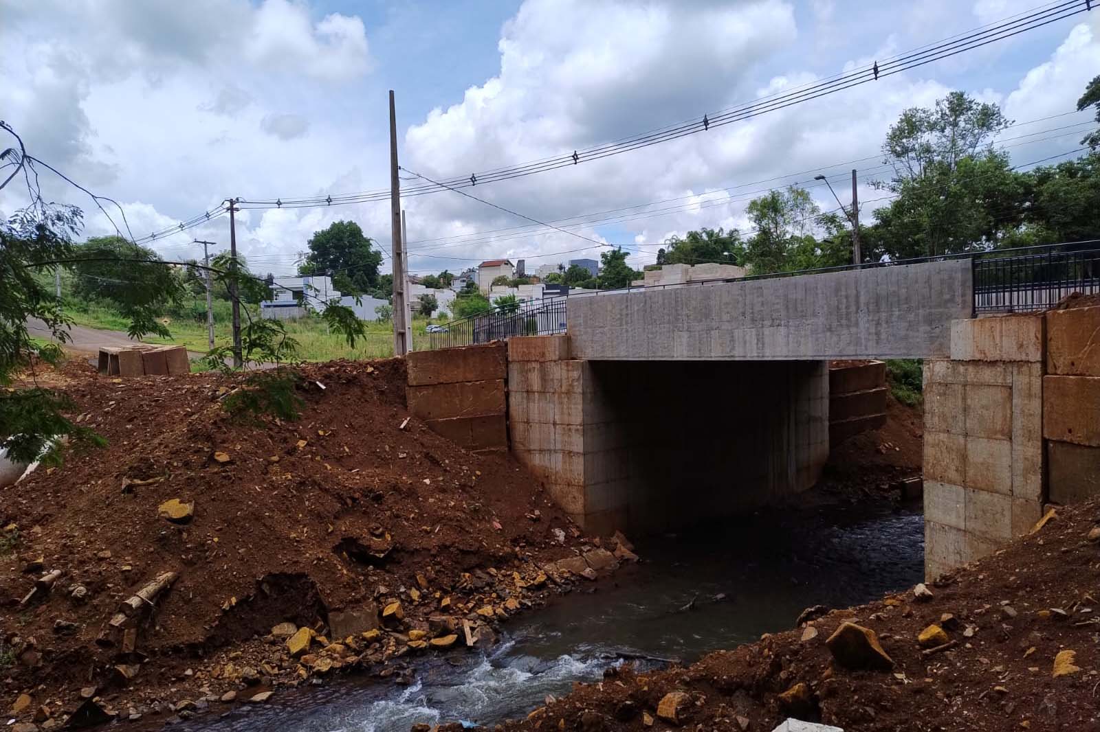 As obras para implantação de quatro novas pontes sobre o Rio Jirau, em Dois Vizinhos, no Sudoeste do Paraná, estão avançando e três delas estão quase concluídas, alcançando 89%. O investimento total é de aproximadamente R$ 7 milhões, disponibilizados pelo Governo do Estado por meio da Secretaria Estadual das Cidades (Secid). As estruturas estão sendo executadas nas Avenidas Dedi Barrichello Montagner e Salgado Filho e nas ruas José de Alencar e Irineu Guse Claudino, com foco na melhoria da drenagem em pontos críticos da cidade.