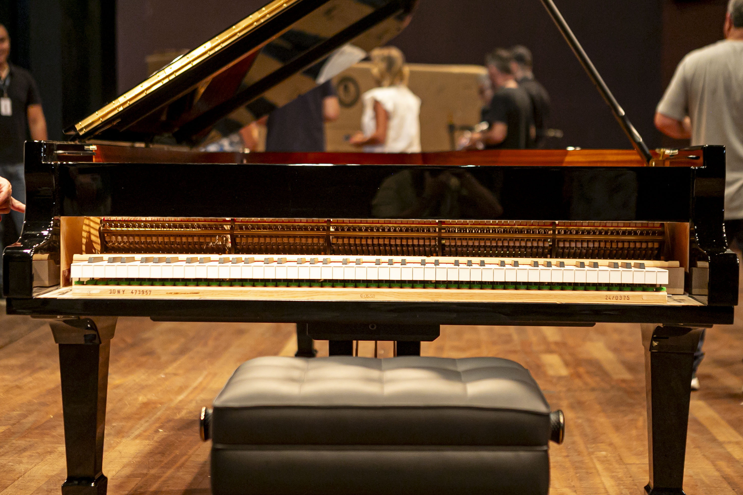 MONTAGEM - Diferentemente de outros instrumentos, um piano desse porte não chega “pronto”. A regulagem final, em várias etapas, faz parte de sua construção e leva em conta a acústica do Teatro Guaíra, o tipo de repertório da OSP e o uso sinfônico do instrumento.