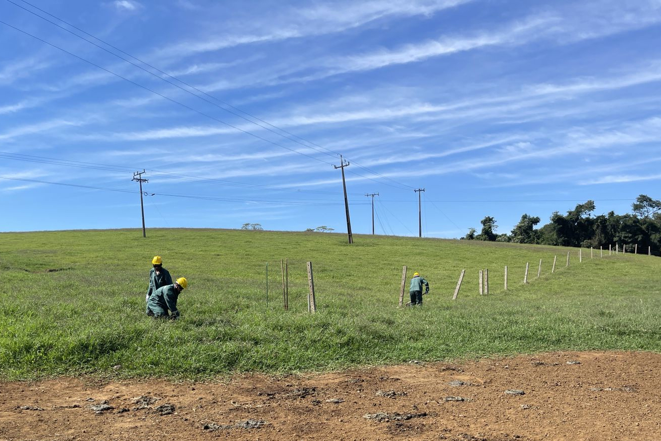 Outra frente de trabalho também está realizando a recomposição e instalação das cercas que delimitam a faixa de domínio da rodovia e os lotes lindeiros.