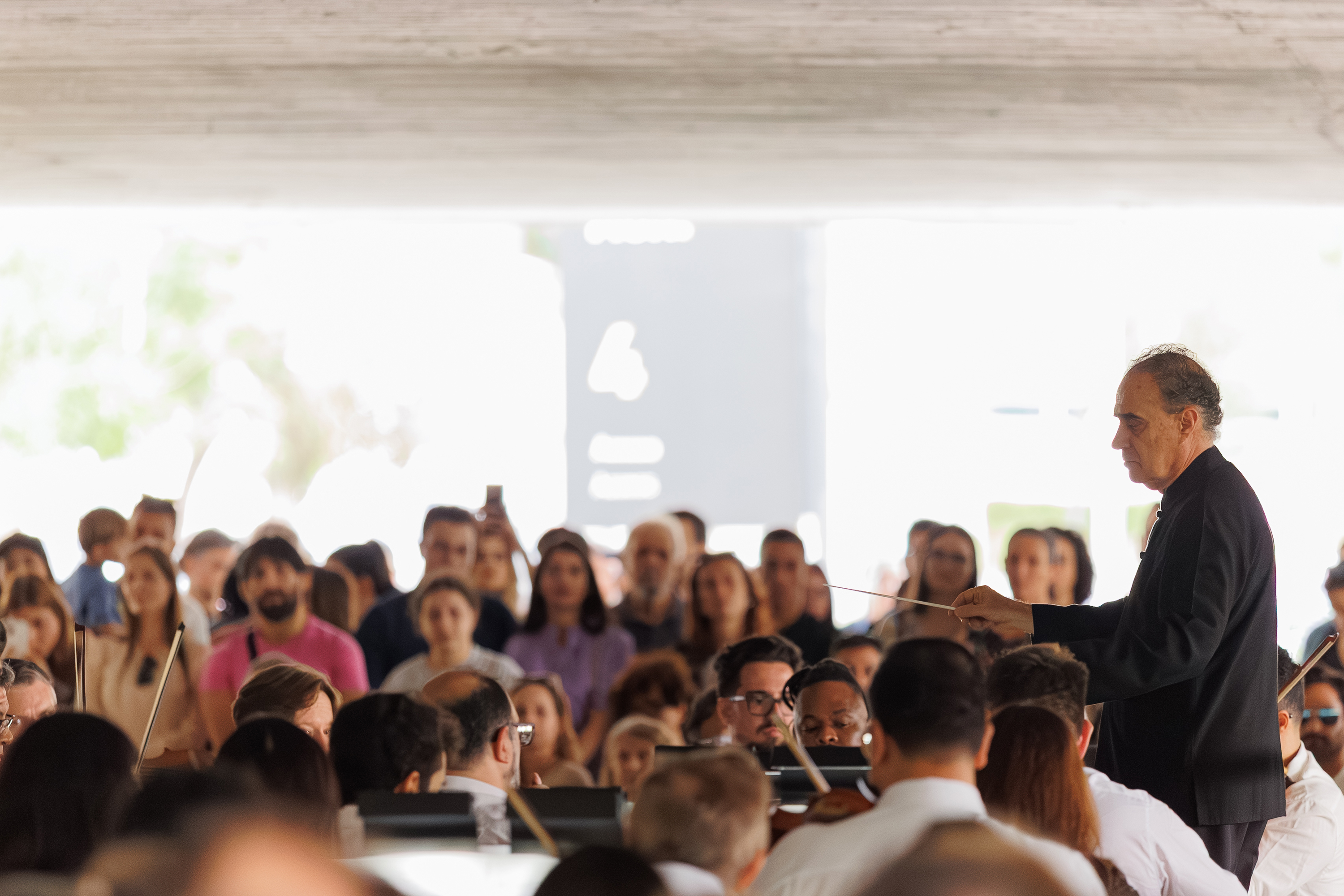 Cerca de mil pessoas se reuniram no vão-livre do Museu Oscar Niemeyer, em Curitiba, para o primeiro concerto do ano da Orquestra Sinfônica do Paraná (OSP). Após o grande sucesso em 2025, a série “Mostly Mozart – OSP no MON” retornou neste sábado (28) mostrando que já é um dos eventos mais aguardados pelo público da OSP — um dos corpos artísticos estáveis do Centro Cultural Teatro Guaíra, mantido pelo Governo do Paraná.