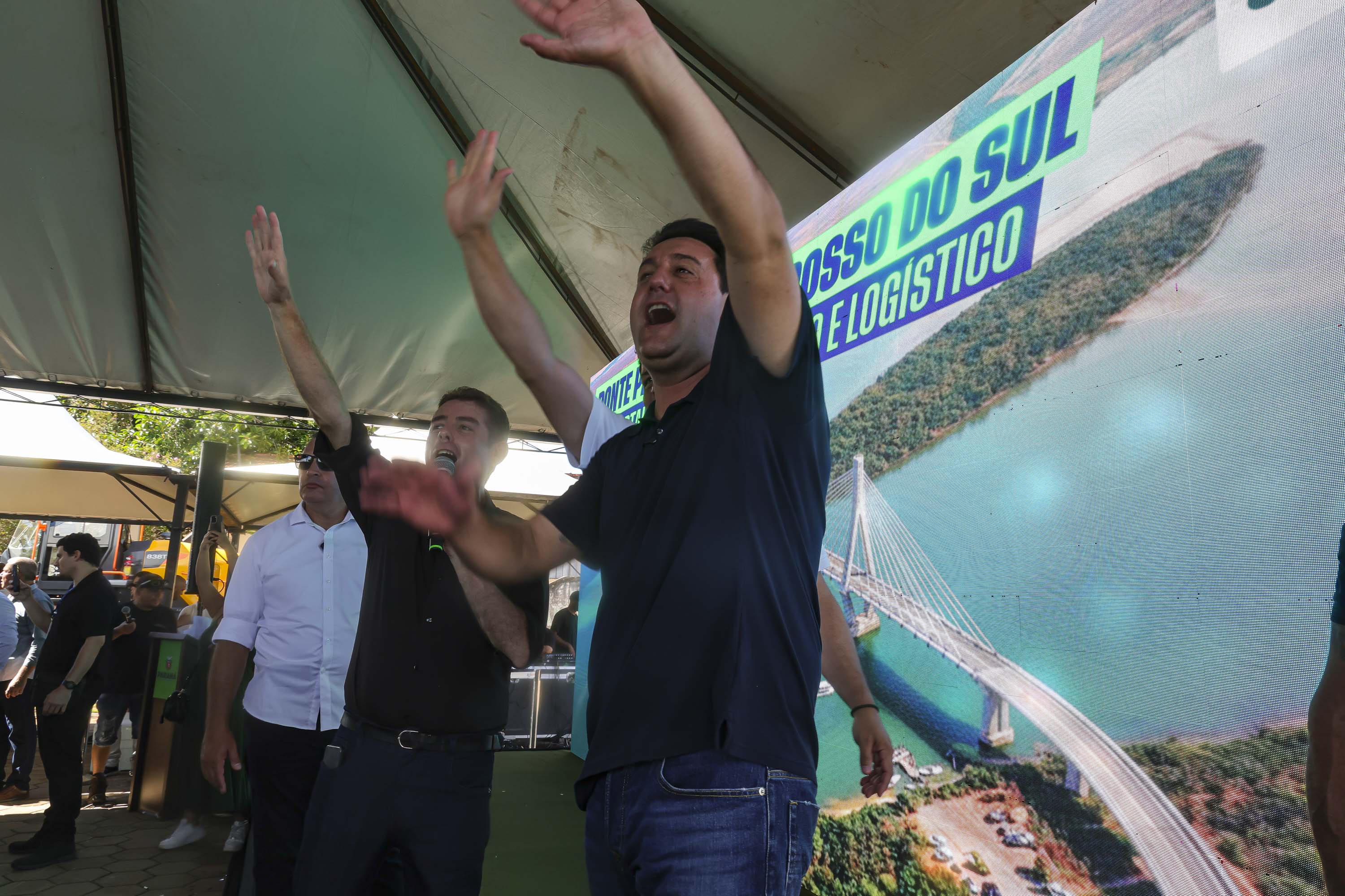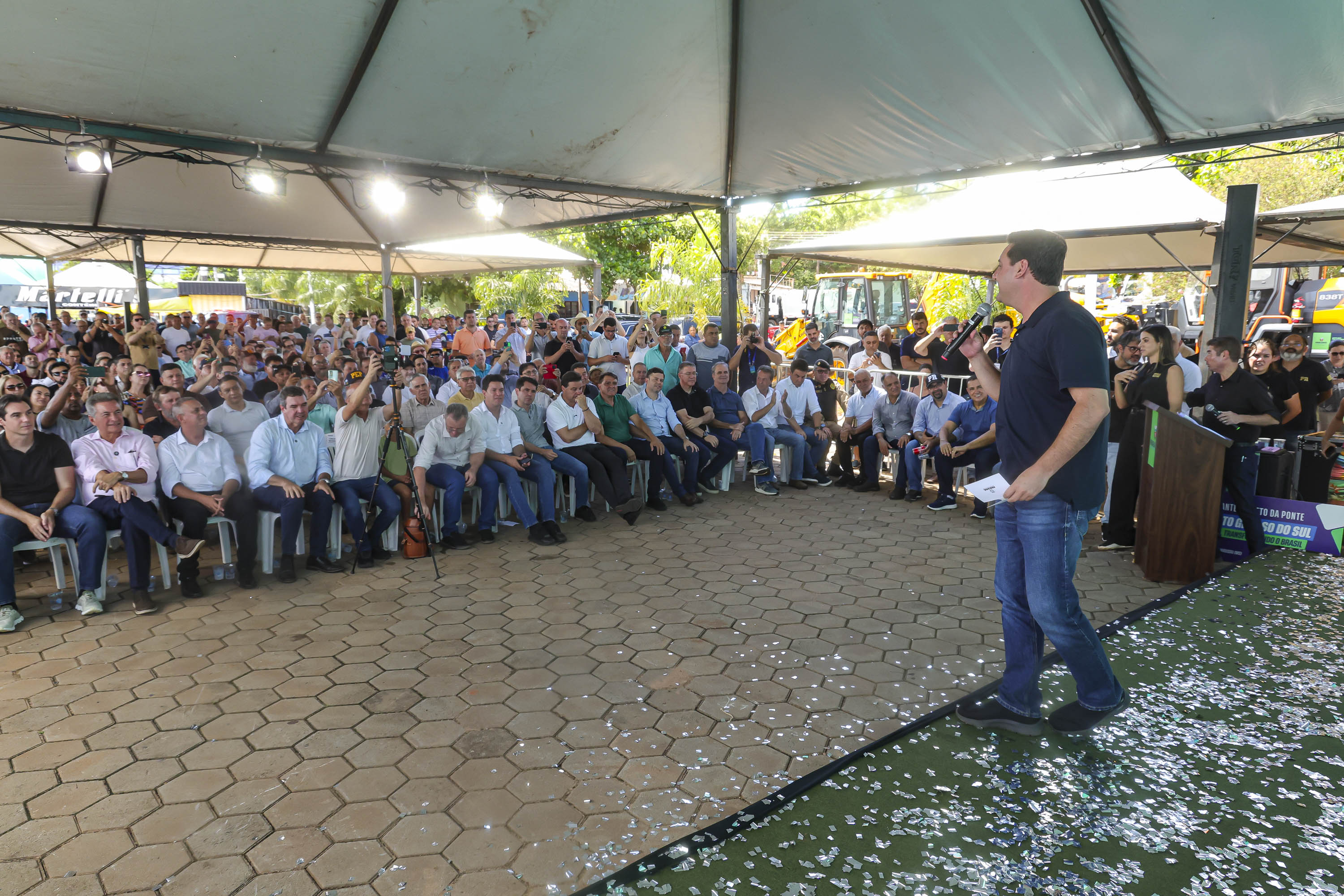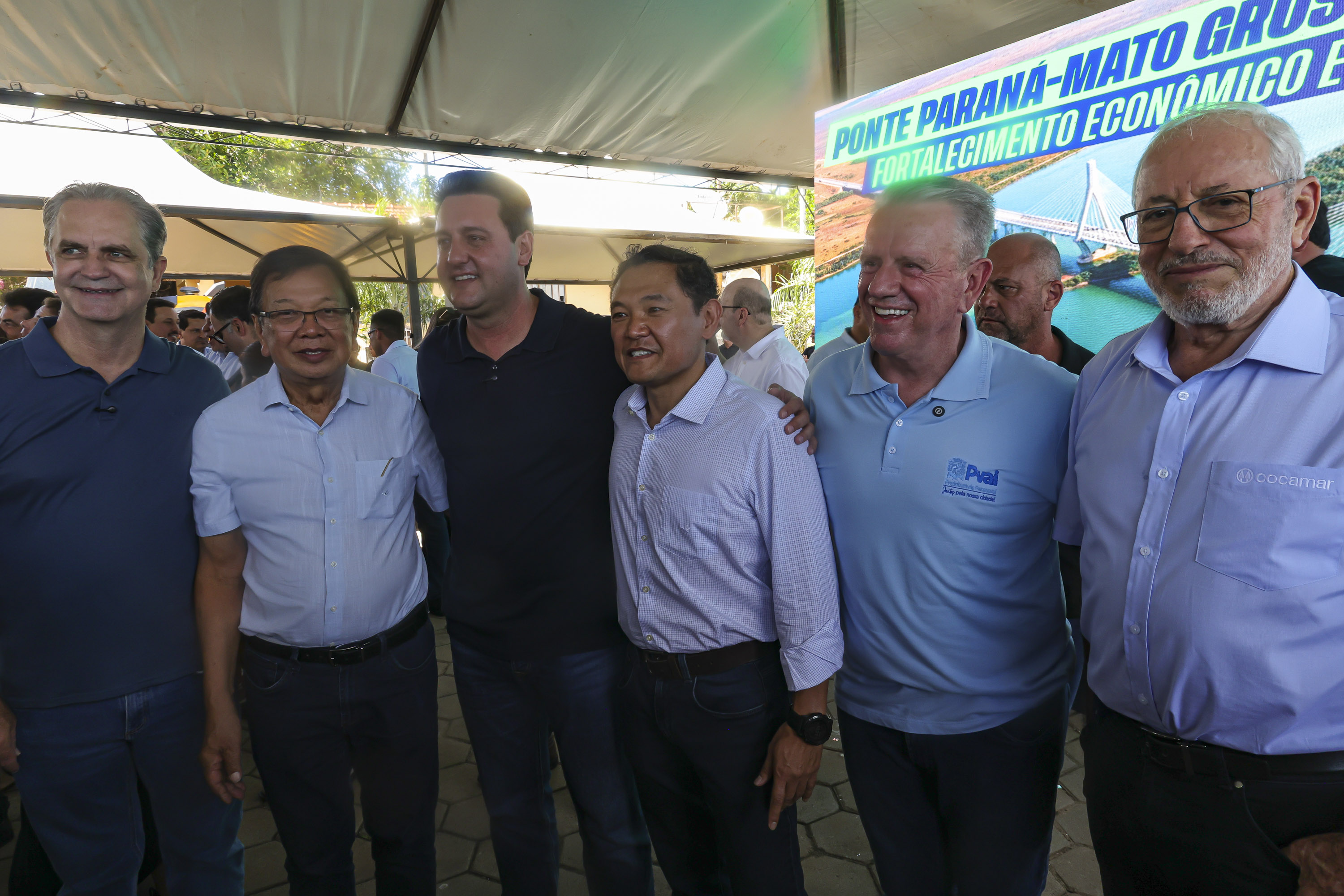 PRESENÇAS — Participaram do evento no Porto São José o subchefe da Casa Civil, Lúcio Tasso; o secretário de Estado da Agricultura e do Abastecimento, Márcio Nunes; o secretário de Estado do Planejamento, Ulisses Maia; o secretário de Estado da Segurança Pública, coronel Hudson Teixeira; o diretor-presidente do DER/PR, Fernando Furiatti; o comando-geral da PMPR, coronel Jefferson Silva; o deputado federal Tião Medeiros; o presidente da Assembleia Legislativa do Paraná (Alep), deputado estadual Alexandre Curi; os deputados estaduais Dr. Leônidas e Soldado Adriano José; o presidente da Câmara Municipal de São Pedro do Paraná, vereador Ailton; o prefeito de Taquarussu, Clóvis do Banco; o deputado estadual do MS, Roberto Hashioka; o ex-governador do MS, Reinaldo Azambuja; vereadores de São Pedro do Paraná e Taquarussu, prefeitos da região e demais autoridades.